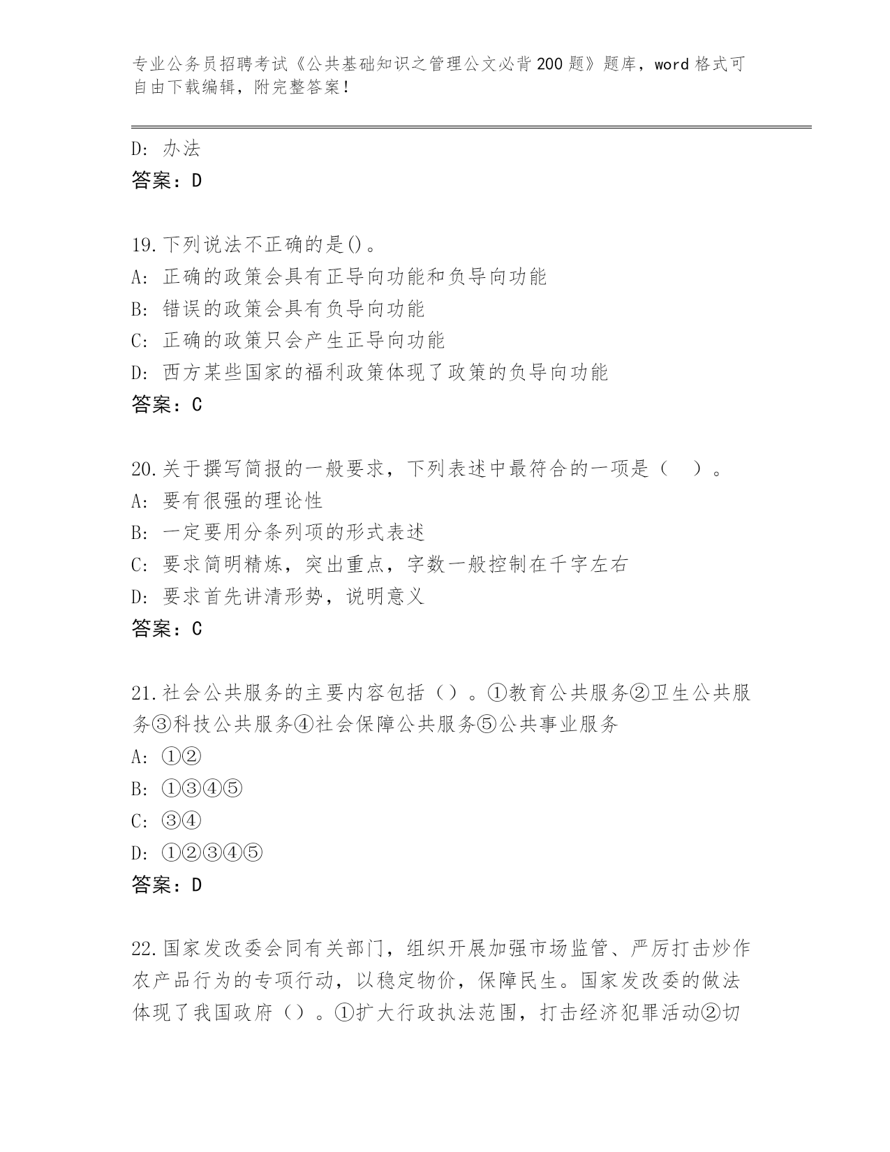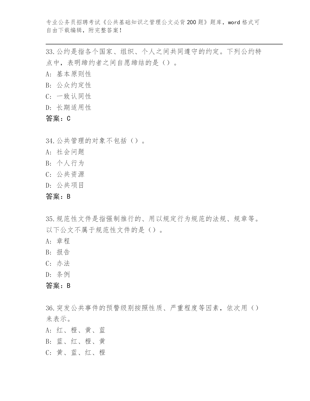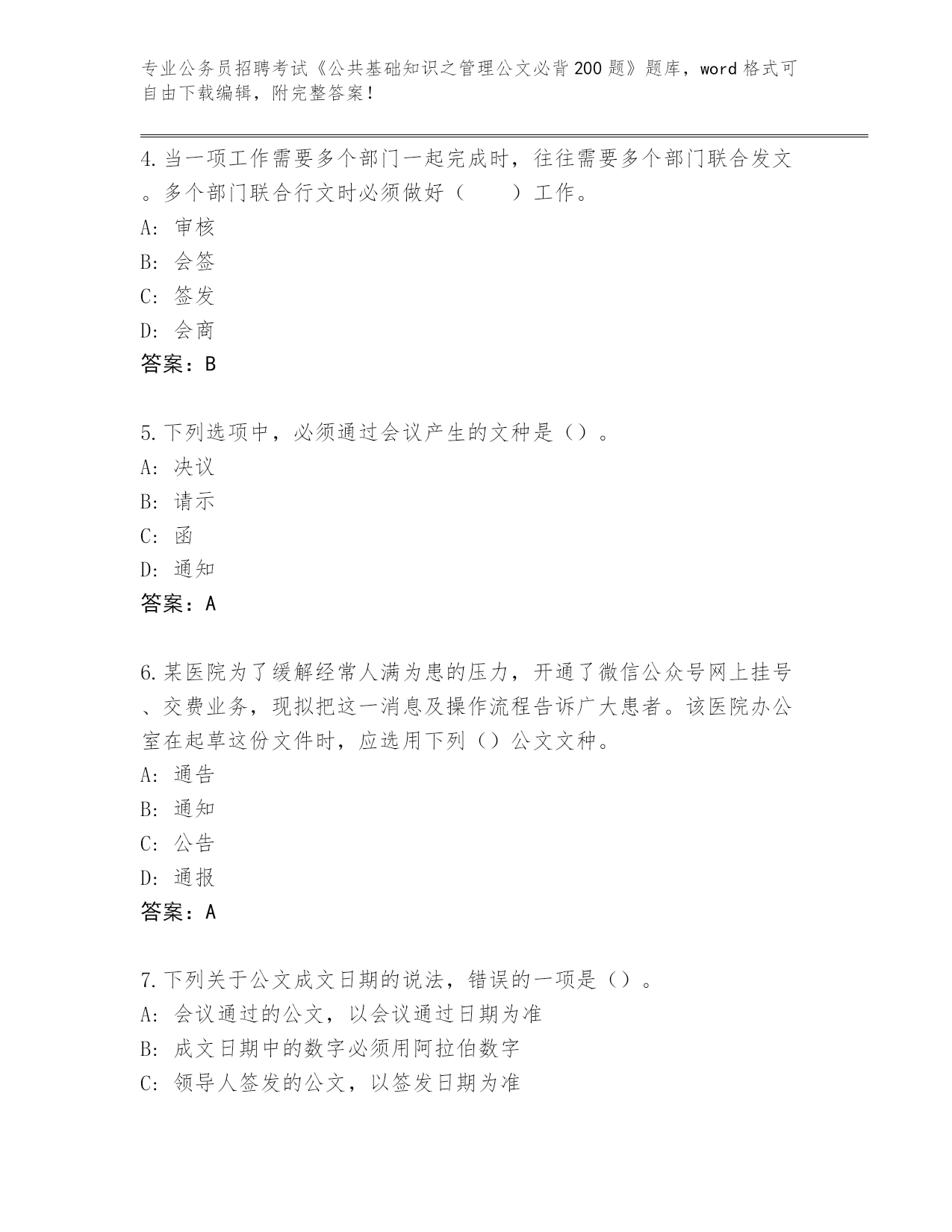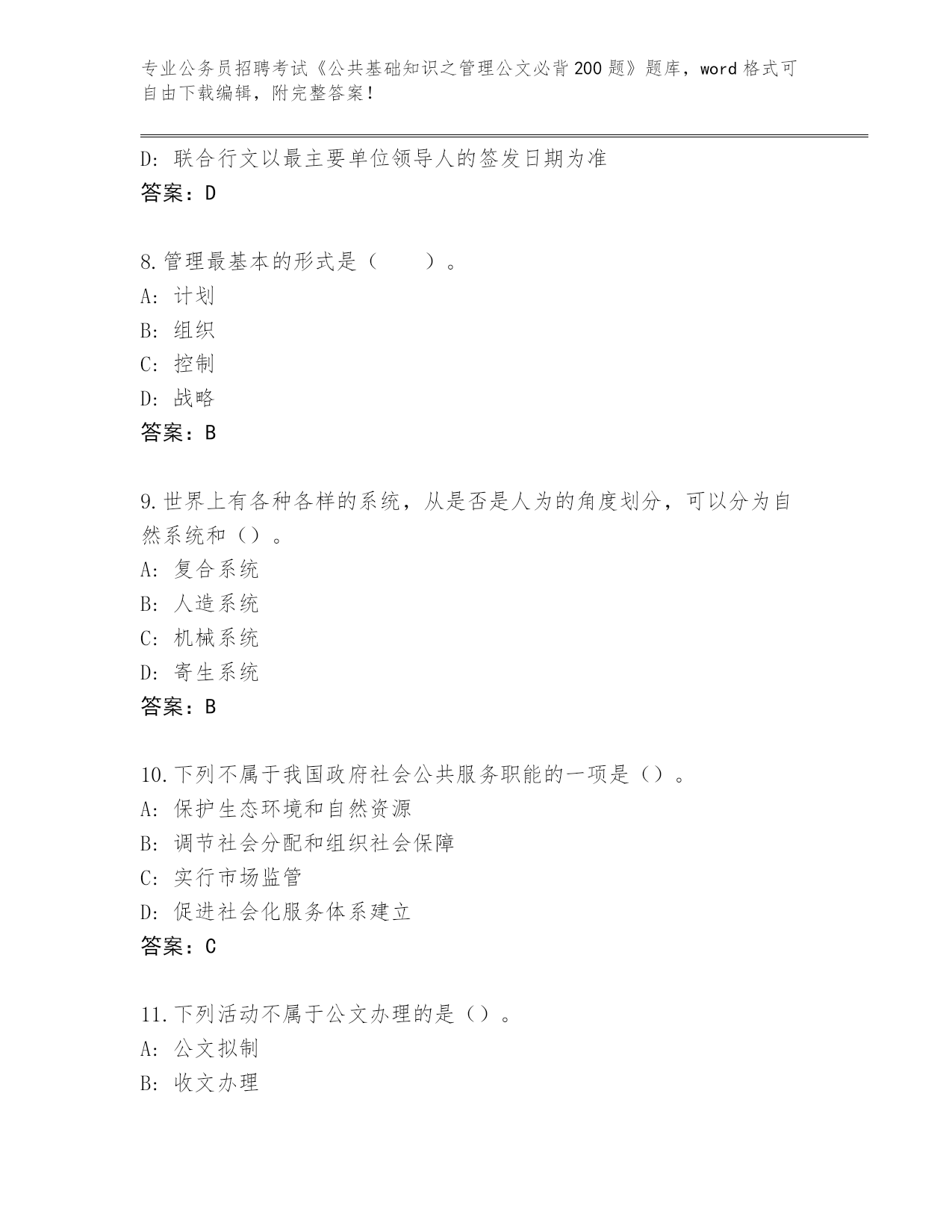 2024年山西省公务员招聘考试《公共基础知识之管理公文必背200题》真题及答案【历年真题】
