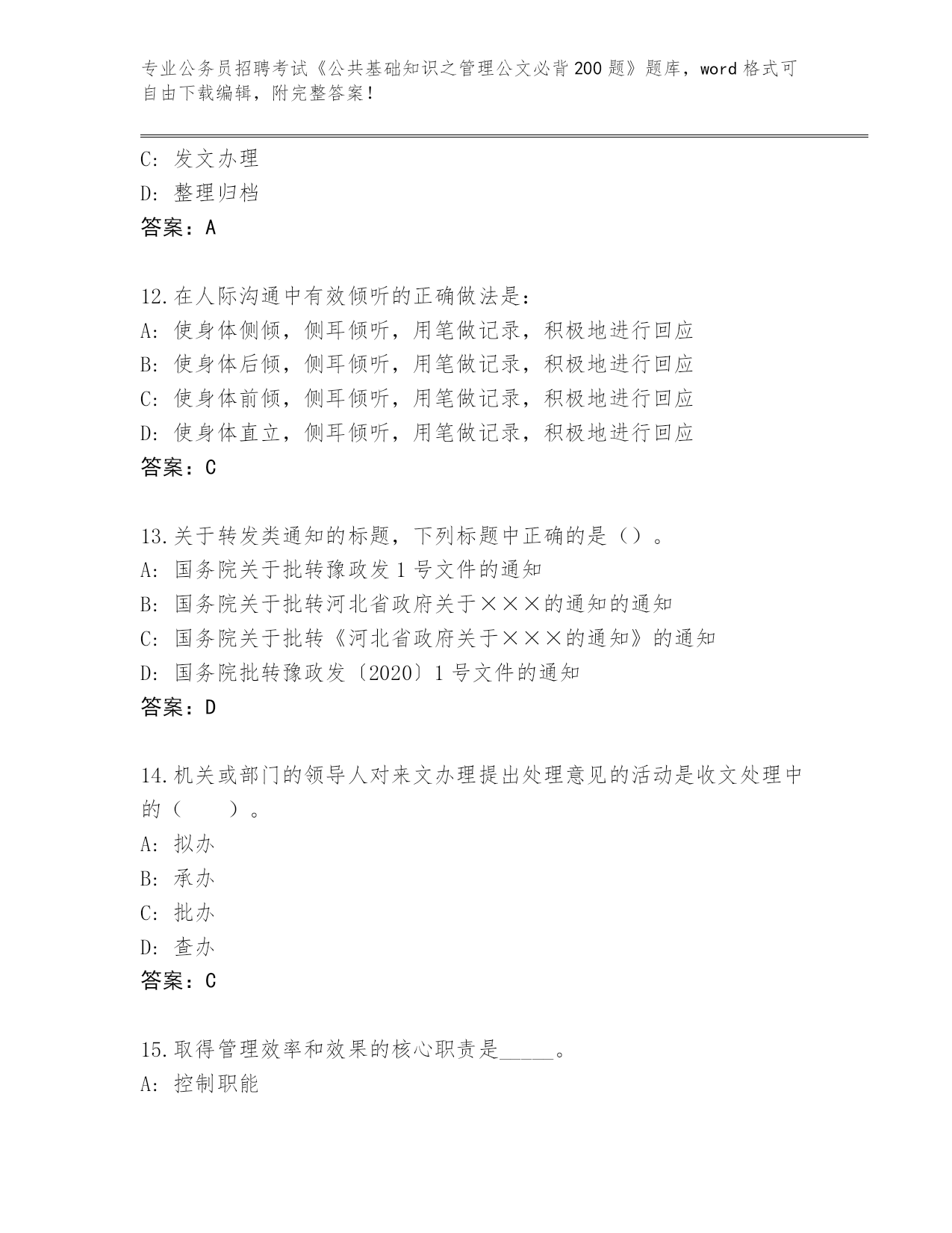 2024年山西省公务员招聘考试《公共基础知识之管理公文必背200题》真题及答案【历年真题】.docx
