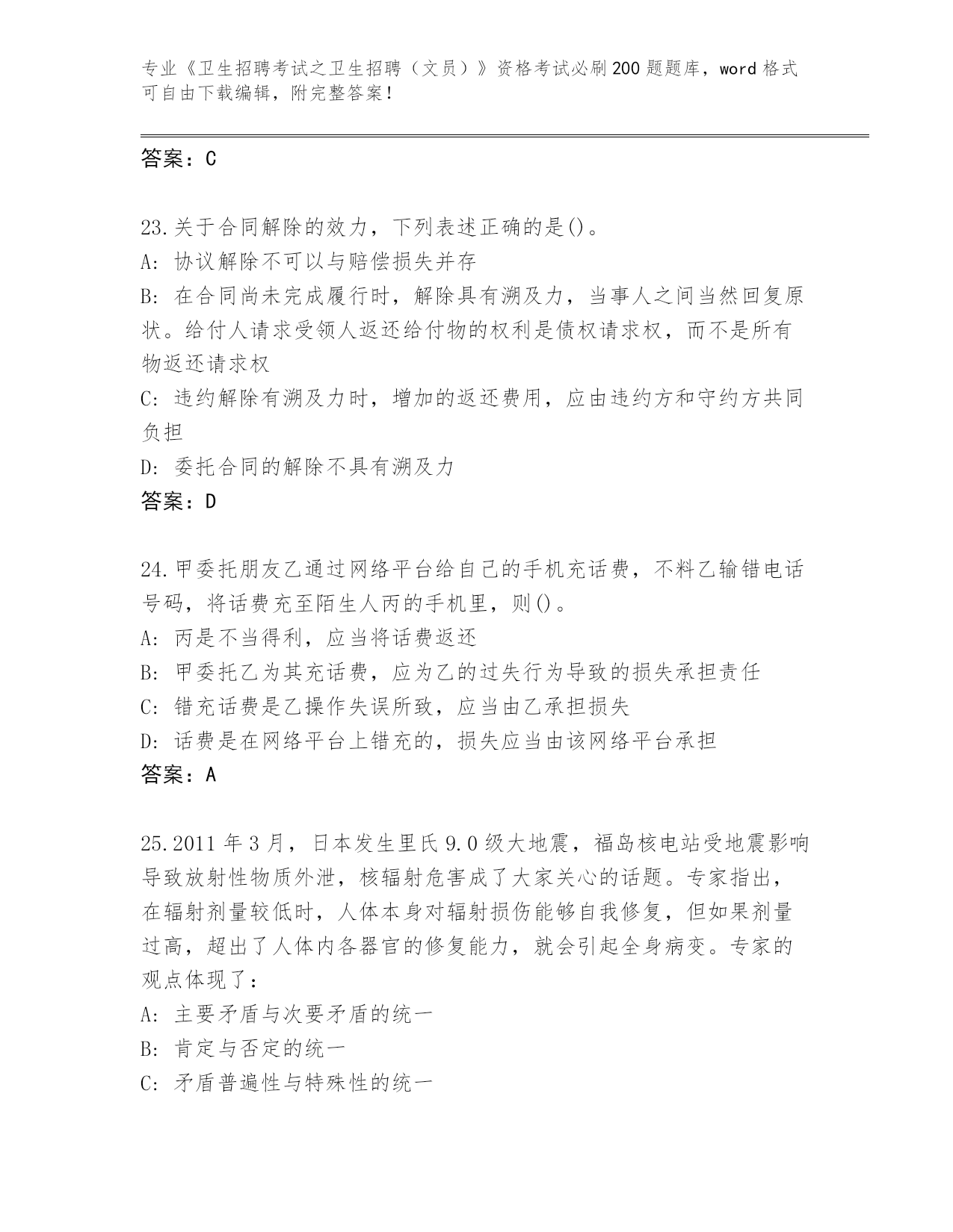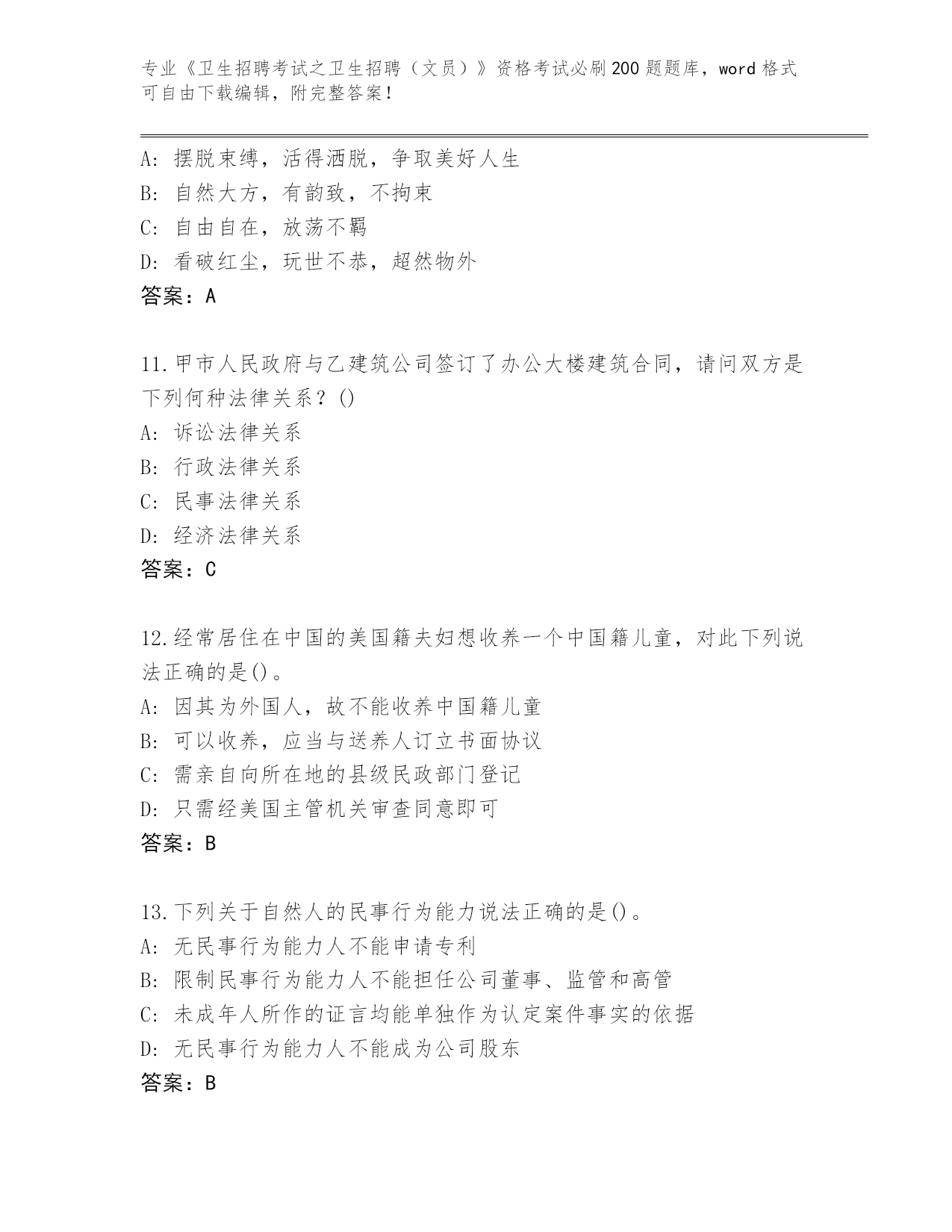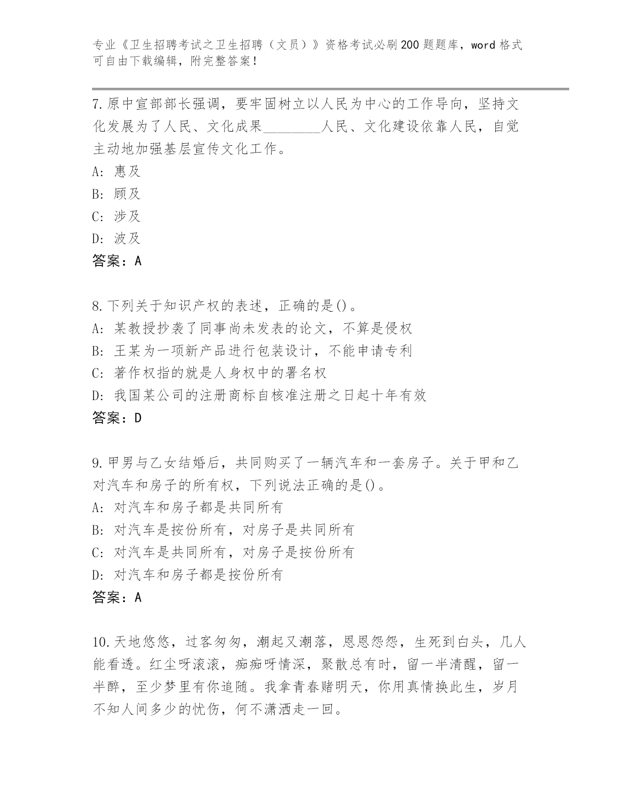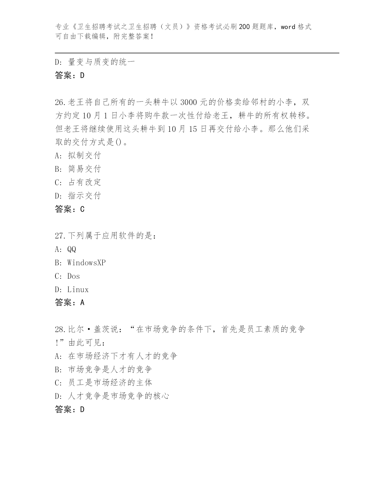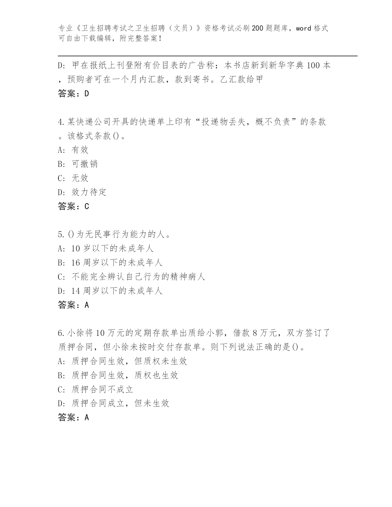2024河南省《卫生招聘考试之卫生招聘(文员)》考试必刷200题(达标题)