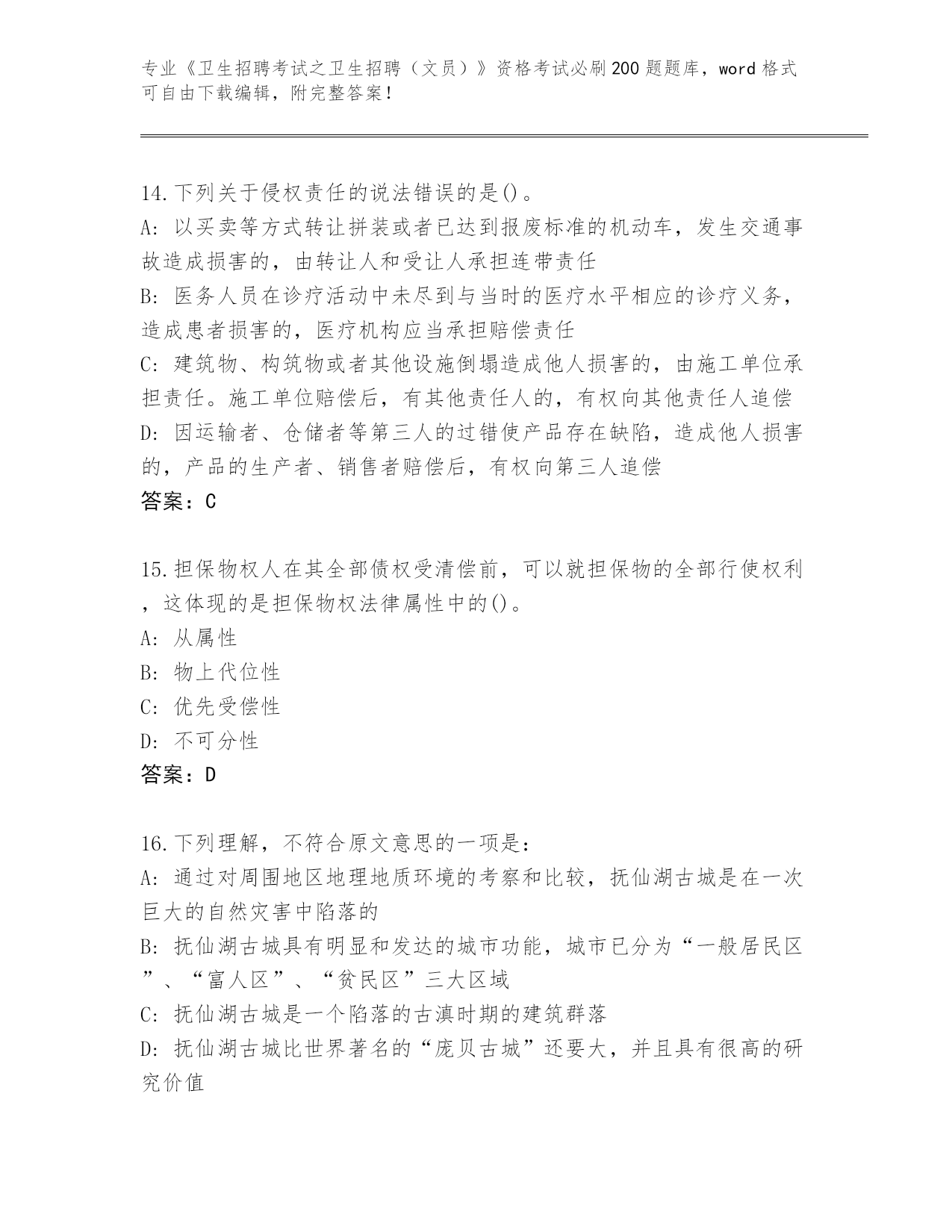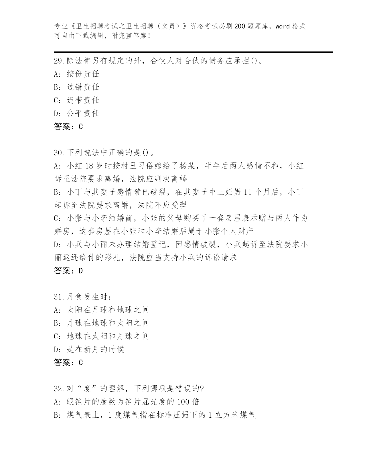 2024年黑龙江省通河县《卫生招聘考试之卫生招聘(文员)》资格考试必刷200题题库答案下载