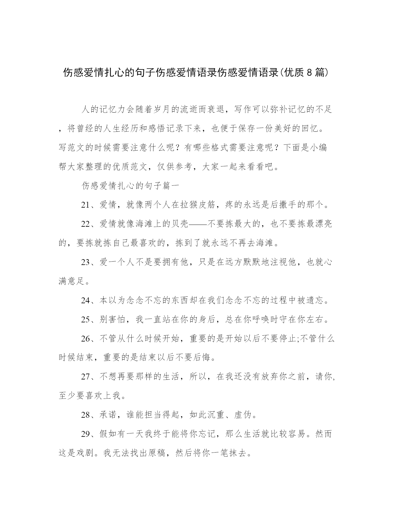 伤感爱情扎心的句子伤感爱情语录伤感爱情语录(优质8篇).docx
