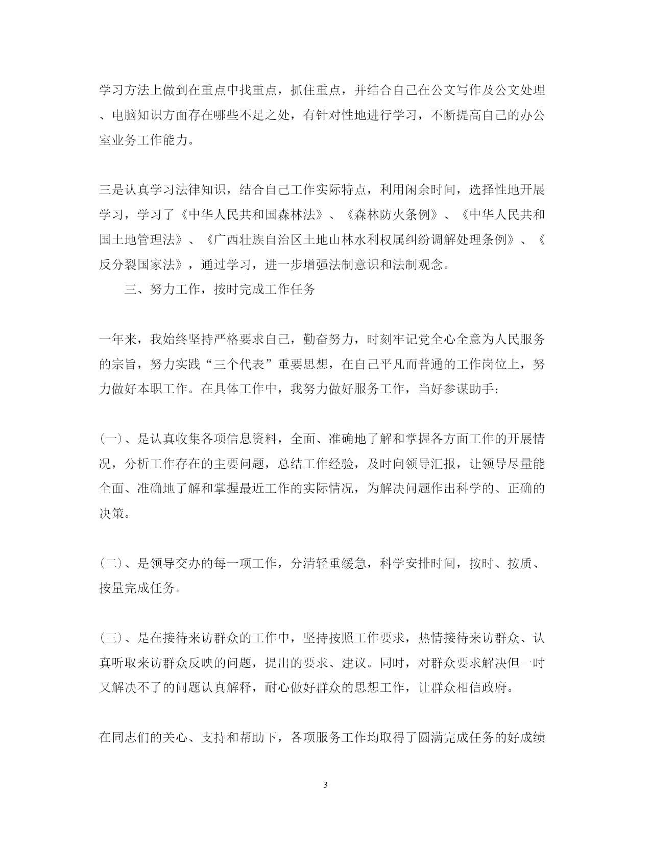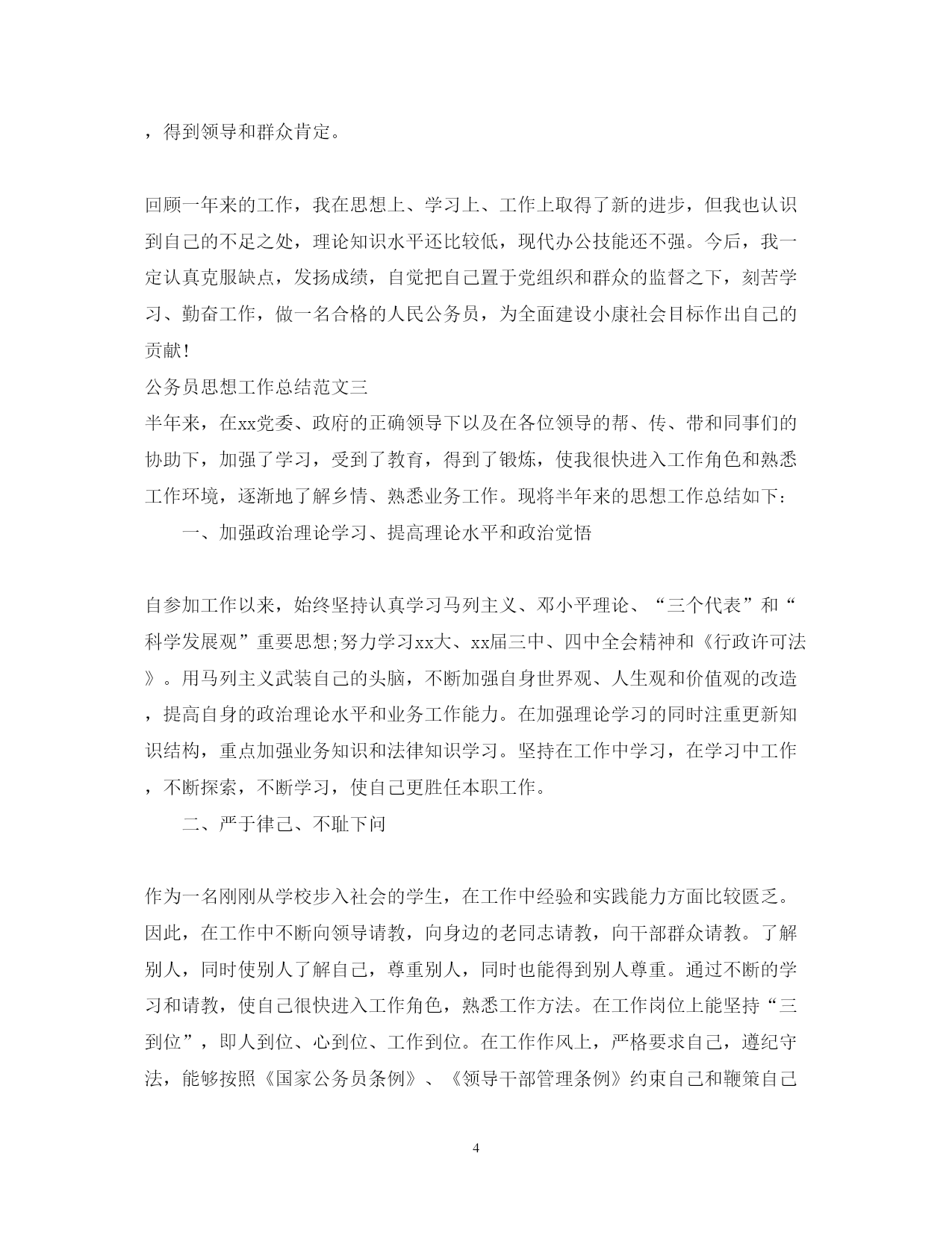 此资料由网络收集而来,如有侵权请告知上传者立即删除。资料共分享,我们负责传递知识。PAGEPAGE5公务员思想工作总结范本公务员,指在政府部门工作的人员,具体解释因国而异。在中国,公务员是指依法履行公职、纳入国家行政编制、由国家财政负担工资福利的工作人员。今天范文网小编给大家整理了公务员思想工作总结,希望对大家有所帮助。公务员思想工作总结范文一过去的一年,在办公室领导的带领和指导下,在同事们的关心和帮助下,较好地完成了各项工作,个人综合素质也得到了一定的提高:加强理论学习。系统的学习了三个代表、xx大报告,提高了自己的政治敏锐性和鉴别能力。注重完善自身的知识结构和健全自身的知识体系,让自己尽早、尽快的熟悉工作情况,少走弯路。通过学习对于提高自己的工作能力有较大的促进作用。坚持努力工作。始终保持一种积极向上的心态,努力开展工作,养成了严谨、细致的工作作风。适应了办公室的工作环境,熟悉了办公室的工作程序,并能够独立的处理部分日常工作事务,较好地完成领导交办的各项工作任务。严格遵守纪律。高标准要求自己,管好自己的言行,管好自己的思想。注意将工作、学习、娱乐、休息有机的结合起来,将八小时以外的时间合理的利用起来,养成了良好的生活习惯。在今后的工作中,我还将进一步的努力,不断提高自己的综合素质,克服畏难心理,不断提高思想素质,争取更加出色的完成好各项工作任务。公务员思想工作总结范文二试用期一年来,我坚持以马克思、列宁主义,毛泽东思想,邓小平理论和“三个代表”重要思想为指导,自觉加强理论学习,认真学习“三个代表”重要思想、党的xx大报告及xx届三中四中全会精神,刻苦钻研业务知识,努力提高理论知识和业务工作水平。遵纪守法,努力工作,认真完成领导交办的各项工作任务,在同志们的关心、支持和帮助下,我思想、学习和工作等方面取得了新的进步。现总结一、严于律已,自觉加强党性锻炼,党性修养和政治思想觉悟进一步提高一年来,我始终坚持运用马克思列宁主义的立场、观点和方法论,运用辩证唯物主义与历史唯物主义去分析和观察事物,明辨是非,坚持真理,坚持正确的世界观、人生观、价值观,用正确的世界观、人生观、价值观指导自己的学习、工作和生活实践,在思想上积极构筑抵御资产阶级民主和自由化、拜金主义、自由主义等一切腐朽思想侵蚀的坚固防线。热爱祖国,热爱中国共产党,热爱社会主义,拥护中国共产党的领导,拥护改革开放,坚信社会主义最终必然战胜资本主义,对社会主义充满必胜的信心。认真贯彻执行党的路线、方针、政策,为加快社会主义建设事业认真做好本职工作。工作积极主动,勤奋努力,不畏艰难,尽职尽责,在平凡的工作岗位上作出力所能及的贡献。二、强化理论和业务学习,不断提高自身综合素质我重视加强理论和业务知识学习,在工作中,坚持一边工作一边学习,不断提高自身综合素质水平。(一)、是认真学习“三个代表”重要思想,深刻领会“三个代表”重要思想的科学内涵,增强自己实践“三个代表”重要思想的自觉性和坚定性;认真学习党的xx大报告及xx届三中、四中全会精神,自觉坚持以党的xx大为指导,为进一步加快完善社会主义市场经济体制,全面建设小康社会作出自己的努力。(二)、是认真学习工作业务知识,重点学习公文写作及公文处理和电脑知识。在学习方法上做到在重点中找重点,抓住重点,并结合自己在公文写作及公文处理、电脑知识方面存在哪些不足之处,有针对性地进行学习,不断提高自己的办公室业务工作能力。三是认真学习法律知识,结合自己工作实际特点,利用闲余时间,选择性地开展学习,学习了《中华人民共和国森林法》、《森林防火条例》、《中华人民共和国土地管理法》、《广西壮族自治区土地山林水利权属纠纷调解处理条例》、《反分裂国家法》,通过学习,进一步增强法制意识和法制观念。三、努力工作,按时完成工作任务一年来,我始终坚持严格要求自己,勤奋努力,时刻牢记党全心全意为人民服务的宗旨,努力实践“三个代表”重要思想,在自己平凡而普通的工作岗位上,努力做好本职工作。在具体工作中,我努力做好服务工作,当好参谋助手:(一)、是认真收集各项信息资料,全面、准确地了解和掌握各方面工作的开展情况,分析工作存在的主要问题,总结工作经验,及时向领导汇报,让领导尽量能全面、准确地了解和掌握最近工作的实际情况,为解决问题作出科学的、正确的决策。(二)、是领导交办的每一项工作,分清轻重缓急,科学安排时间,按时、按质、按量完成任务。(三)、是在接待来访群众的工作中,坚持按照工作要求,热情接待来访群众、认真听取来访群众反映的问题,提出的要求、建议。同时,对群众要求解决但一时又解决不了的问题认真解释,耐心做好群众的思想工作,让群众相信政府。在同志们的关心、支持和帮助下,各项服务工作均取得了圆满完成任务的好成