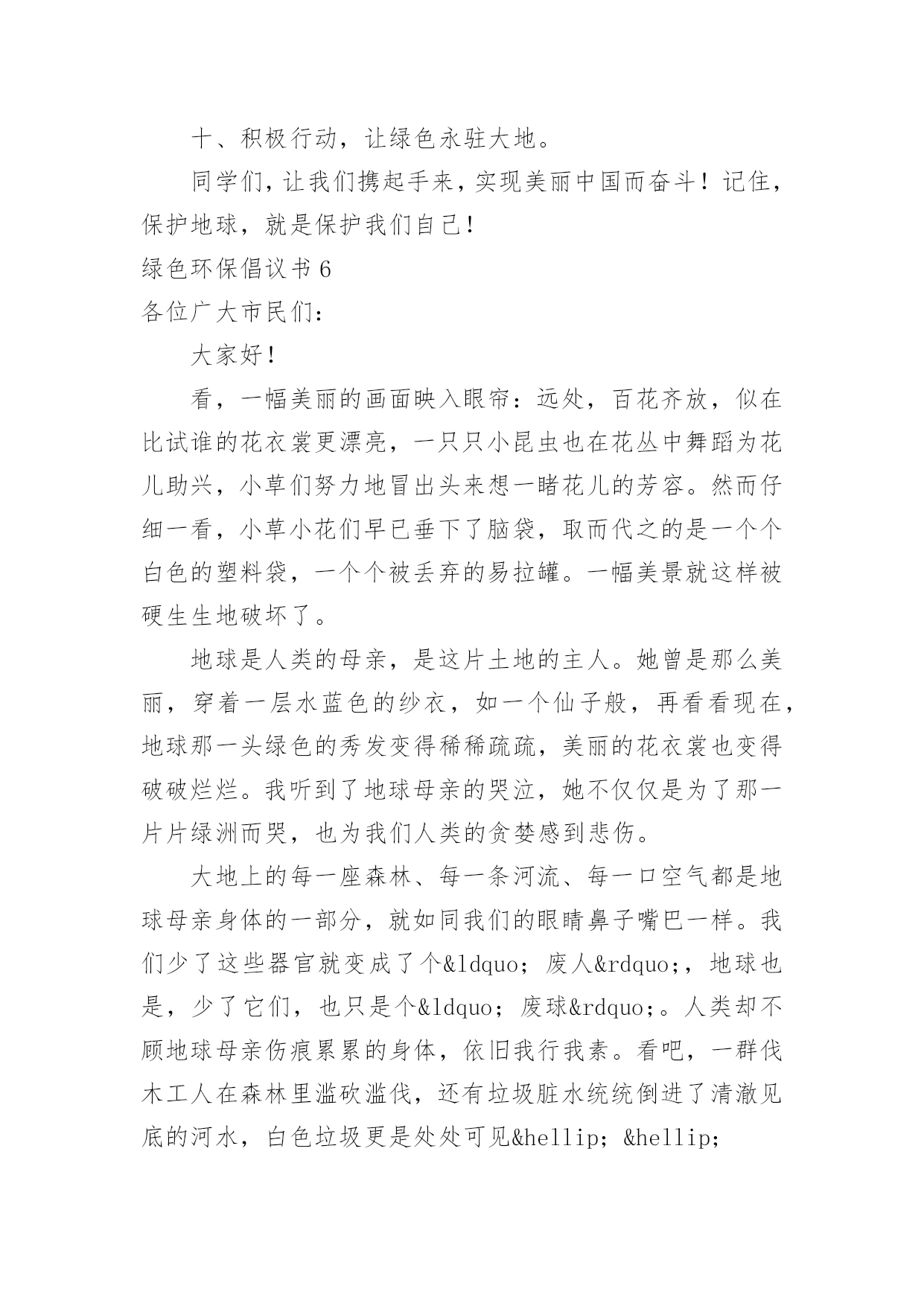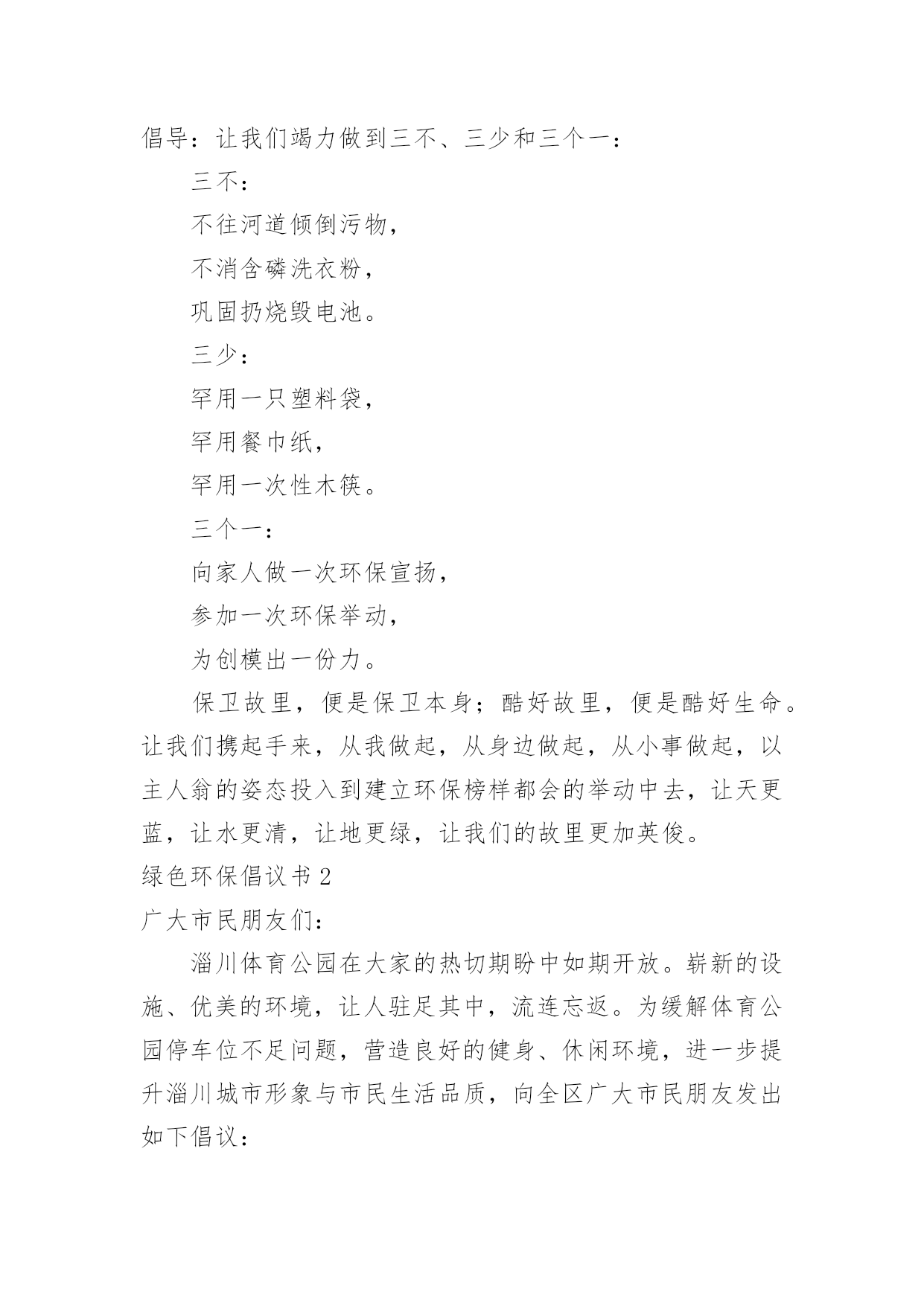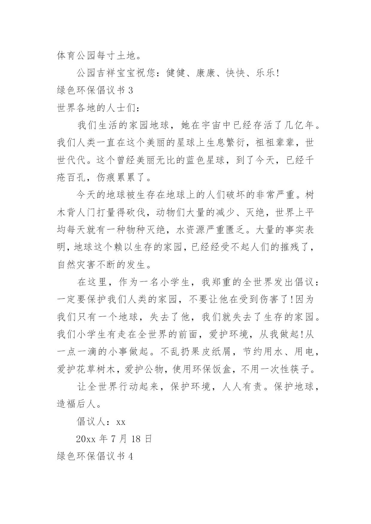 绿色环保倡议书绿色环保倡议书(15篇)在充满活力,日益开放的今天,我们都跟倡议书有着直接或间接的联系,倡议书一般由标题、称呼、正文、结尾、落款五部分组成。相信写倡议书是一个让许多人都头痛的问题,以下是小编精心整理的绿色环保倡议书,欢迎大家借鉴与参考,希望对大家有所帮助。绿色环保倡议书1各位同学:你们好!当你流连于风景秀气的校园中,当你沉醉于桂香袭人的满陇桂雨,当你漫步于芳草到处的花圃,当你徘徊于景象高大的罗星塔中,你为本身是一个福州人而感触骄傲吗?我们糊口生涯在福州,我们糊口生涯在天堂。但是,我们也发觉很多处所还在蒙受着各种混浊,有害气体还在一些厂区漫溢,废水、污物使部分水源污损,白色废料还未完全清除┄┄扫数这一些,直接感化着人类的糊口生涯。为了保卫我们英俊的故里,自动响应市委、市当局的号召,大家脱手,使福州真正成为环保榜样都会,成为世纪绿色故里,福州市开辟区职专校团委环保协会向各位同学发出倡导:让我们竭力做到三不、三少和三个一:三不:不往河道倾倒污物,不消含磷洗衣粉,巩固扔烧毁电池。三少:罕用一只塑料袋,罕用餐巾纸,罕用一次性木筷。三个一:向家人做一次环保宣扬,参加一次环保举动,为创模出一份力。保卫故里,便是保卫本身;酷好故里,便是酷好生命。让我们携起手来,从我做起,从身边做起,从小事做起,以主人翁的姿态投入到建立环保榜样都会的举动中去,让天更蓝,让水更清,让地更绿,让我们的故里更加英俊。绿色环保倡议书2广大市民朋友们:淄川体育公园在大家的热切期盼中如期开放。崭新的设施、优美的环境,让人驻足其中,流连忘返。为缓解体育公园停车位不足问题,营造良好的健身、休闲环境,进一步提升淄川城市形象与市民生活品质,向全区广大市民朋友发出如下倡议:提高认识,传播文明,争做"低碳环保、绿色出行"的宣传者。我们倡议广大市民朋友树立低碳环保理念,主动承担起绿色出行宣传的责任和义务,向身边人宣传"低碳环保、绿色出行"的重要意义,让我们的体育公园少一些负担、多一路畅通。倡树新风,从我做起,争做"低碳环保、绿色出行"的践行者。我们倡议广大市民朋友树立"能走不骑,能骑不坐,能坐不开"的出行理念,积极参与到交通"258"行列中来,即2公里范围内步行、5公里范围内自行车骑行、8公里范围内公交车出行,让我们的体育公园少一缕尘埃、多一片蓝天。积极劝导,示范引领,争做"低碳环保、绿色出行"的倡导者。我们倡议广大市民朋友积极开展绿色出行劝导活动,带动更多的人参与进来,共同维护体育公园秩序,努力营造低碳、清洁、畅通、高效的健身休闲环境,让我们的体育公园少一些污染、多一份健康。一言一行,善小为之,争做"低碳环保、绿色出行"的先行者。我们倡议广大市民朋友积极配合体育公园管理人员的工作,遵守体育公园各项管理规定,从自己做起,从小事做起,不乱扔垃圾、不随意践踏花草、不吸烟、不遛狗,让我们的体育公园少一些纷争,多一些和谐。朋友们,我们生活在同一片蓝天下,呼吸着同样的空气,为了你我的健康,为了体育公园环境更美好,让我们一起行动起来,从我做起,从现在做起,秉承低碳环保理念,选择绿色健康出行,让阳光遍布体育公园每个角落,让笑声响彻体育公园每寸土地。公园吉祥宝宝祝您:健健、康康、快快、乐乐!绿色环保倡议书3世界各地的人士们:我们生活的家园地球,她在宇宙中已经存活了几亿年。我们人类一直在这个美丽的星球上生息繁衍,祖祖辈辈,世世代代。这个曾经美丽无比的蓝色星球,到了今天,已经千疮百孔,伤痕累累了。今天的地球被生存在地球上的人们破坏的非常严重。树木背人门打量得砍伐,动物们大量的减少、灭绝,世界上平均每天就有一种物种灭绝,水资源严重匮乏。大量的事实表明,地球这个赖以生存的家园,已经经受不起人们的摧残了,自然灾害不断的发生。在这里,作为一名小学生,我郑重的全世界发出倡议:一定要保护我们人类的家园,不要让他在受到伤害了!因为我们只有一个地球,失去了他,我们就失去了生存的家园。我们小学生有走在全世界的前面,爱护环境,从我做起!从一点一滴的小事做起。不乱扔果皮纸屑,节约用水、用电,爱护花草树木,爱护公物,使用环保饭盒,不用一次性筷子。让全世界行动起来,保护环境,人人有责。保护地球,造福后人。倡议人:xx20xx年7月18日绿色环保倡议书4地球是我们的家,同时也是我们的母亲。地球无偿的供给我们各种资源,而我们却还为了一点蝇头小利,不顾后果的肆意去破坏她。正如《只有一个地球》那篇文章所说的,我们不能再指望破坏了地球移居到别的星球上去,地球如果灭亡了,那么降临到地球上的命运终究也会降临到人类身上。所以我们亡羊补牢,为时不晚,保护我们的地球,爱护环境,我推荐大家做到如下几点:1.珍惜此刻的每一口空气,把工厂的数量尽可能的减少,工业废气也会随之减少。可喜的是,我们看到政府已将许多重污染的工厂叫停,限期整改或迁