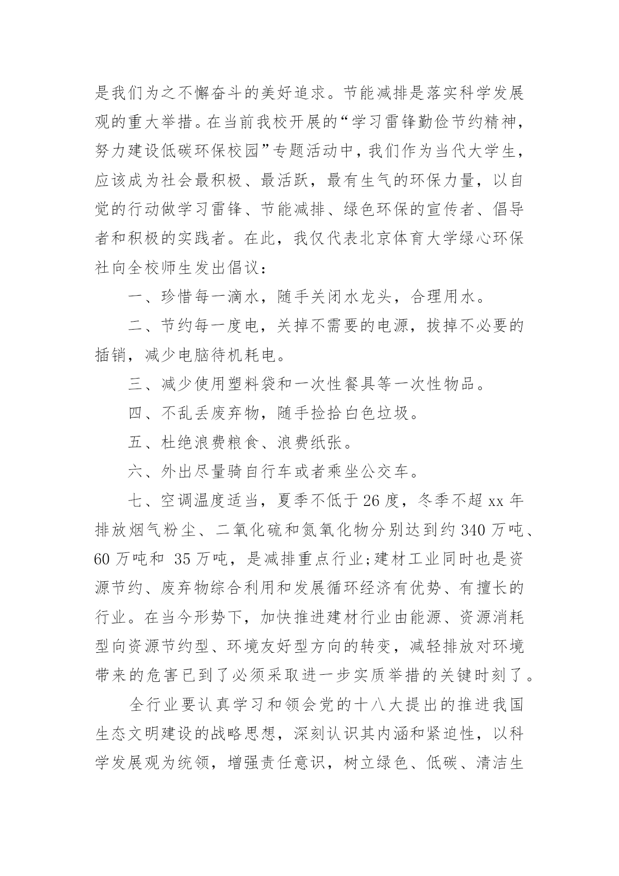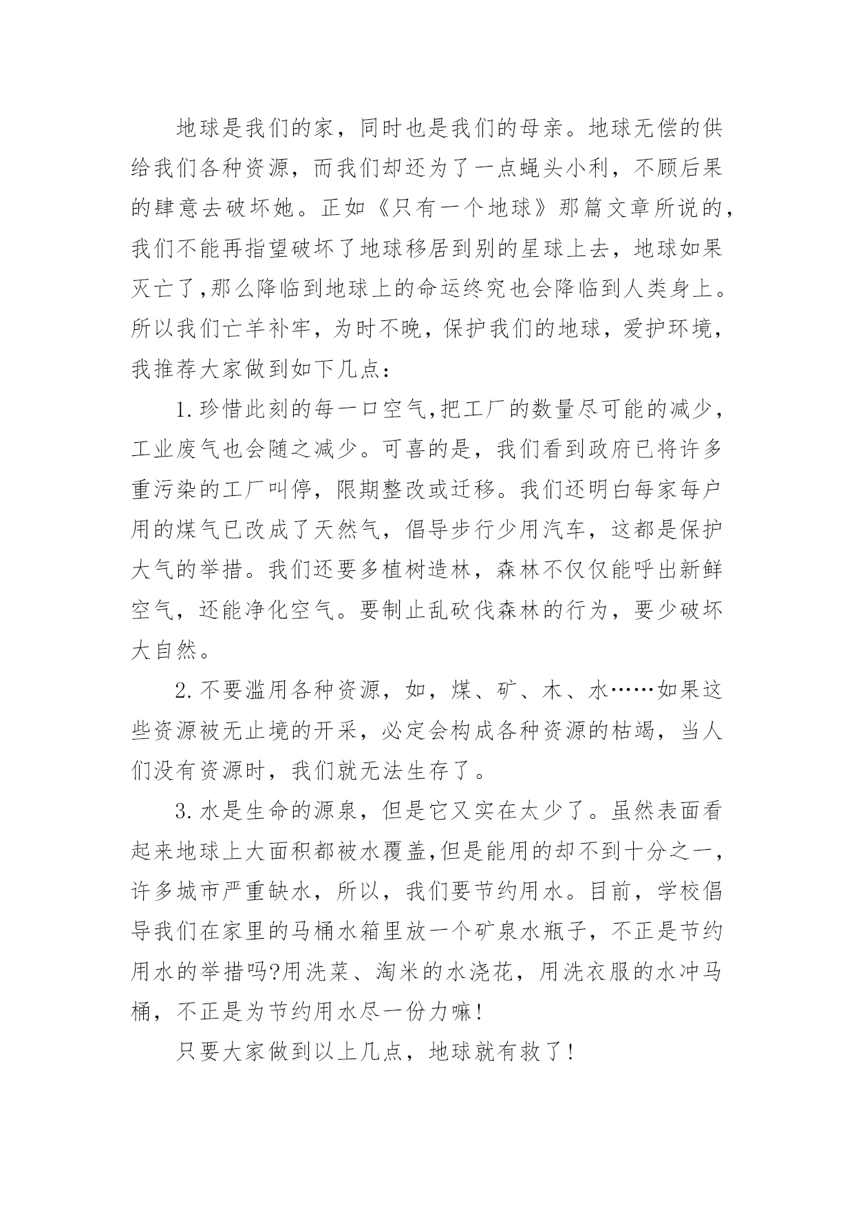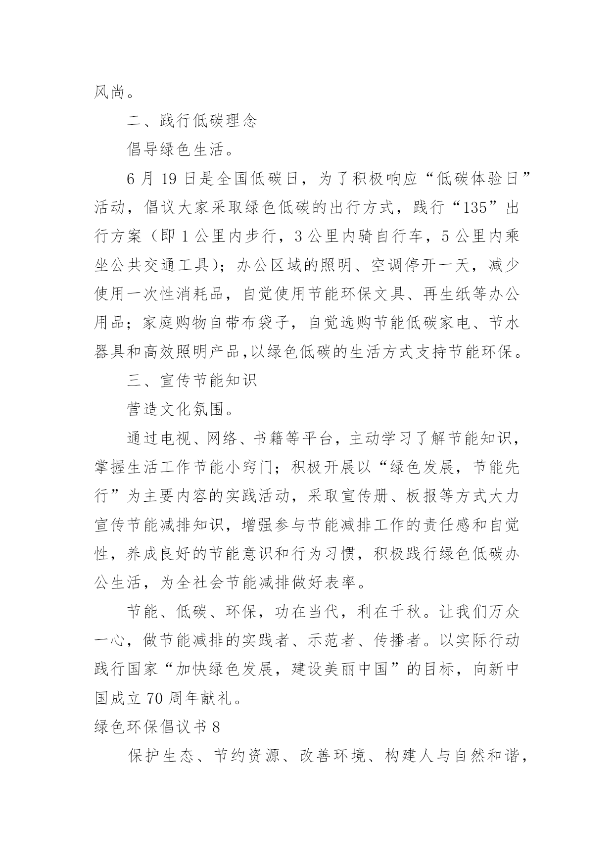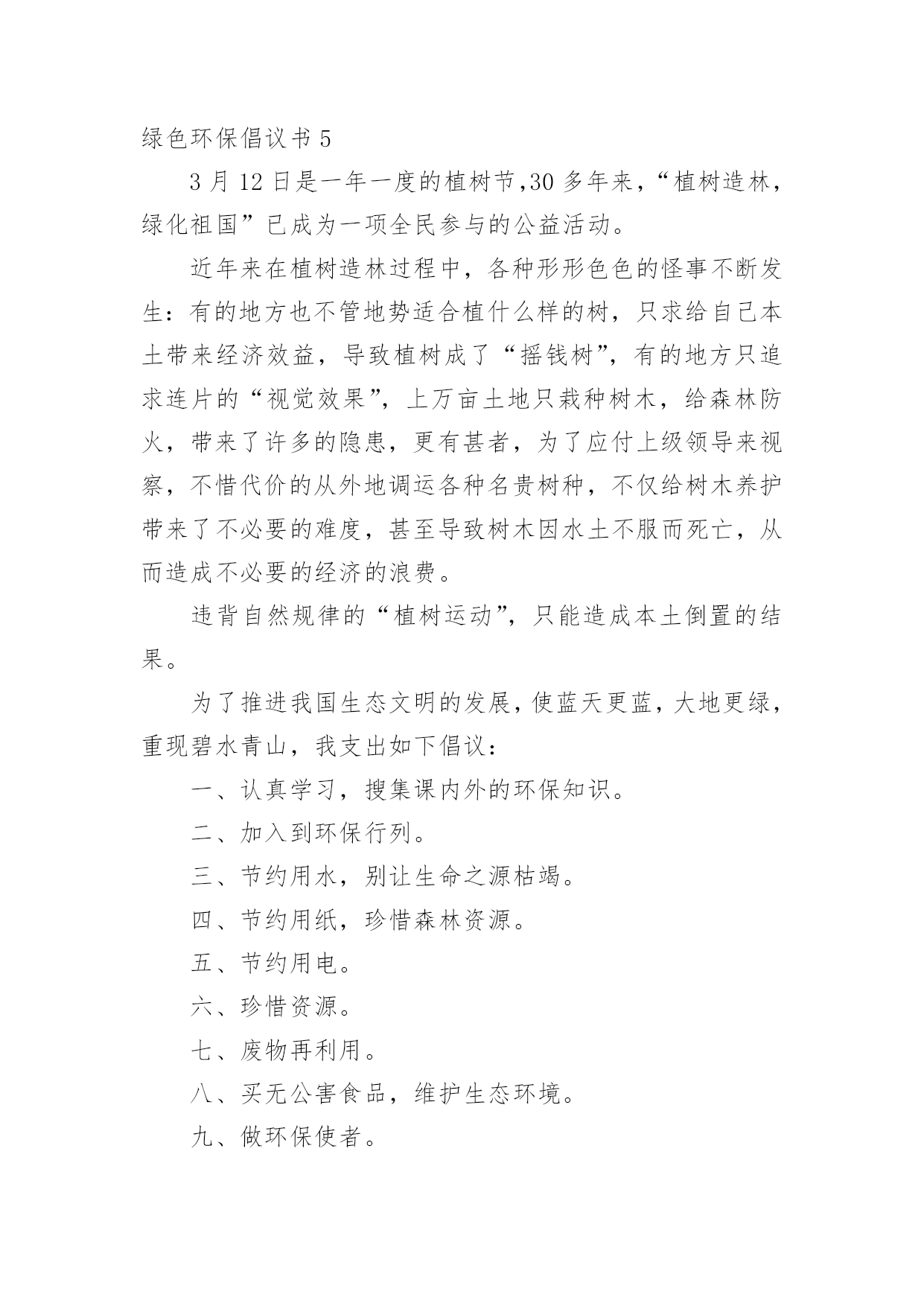 绿色环保倡议书绿色环保倡议书(15篇)在充满活力,日益开放的今天,我们都跟倡议书有着直接或间接的联系,倡议书一般由标题、称呼、正文、结尾、落款五部分组成。相信写倡议书是一个让许多人都头痛的问题,以下是小编精心整理的绿色环保倡议书,欢迎大家借鉴与参考,希望对大家有所帮助。绿色环保倡议书1各位同学:你们好!当你流连于风景秀气的校园中,当你沉醉于桂香袭人的满陇桂雨,当你漫步于芳草到处的花圃,当你徘徊于景象高大的罗星塔中,你为本身是一个福州人而感触骄傲吗?我们糊口生涯在福州,我们糊口生涯在天堂。但是,我们也发觉很多处所还在蒙受着各种混浊,有害气体还在一些厂区漫溢,废水、污物使部分水源污损,白色废料还未完全清除┄┄扫数这一些,直接感化着人类的糊口生涯。为了保卫我们英俊的故里,自动响应市委、市当局的号召,大家脱手,使福州真正成为环保榜样都会,成为世纪绿色故里,福州市开辟区职专校团委环保协会向各位同学发出倡导:让我们竭力做到三不、三少和三个一:三不:不往河道倾倒污物,不消含磷洗衣粉,巩固扔烧毁电池。三少:罕用一只塑料袋,罕用餐巾纸,罕用一次性木筷。三个一:向家人做一次环保宣扬,参加一次环保举动,为创模出一份力。保卫故里,便是保卫本身;酷好故里,便是酷好生命。让我们携起手来,从我做起,从身边做起,从小事做起,以主人翁的姿态投入到建立环保榜样都会的举动中去,让天更蓝,让水更清,让地更绿,让我们的故里更加英俊。绿色环保倡议书2广大市民朋友们:淄川体育公园在大家的热切期盼中如期开放。崭新的设施、优美的环境,让人驻足其中,流连忘返。为缓解体育公园停车位不足问题,营造良好的健身、休闲环境,进一步提升淄川城市形象与市民生活品质,向全区广大市民朋友发出如下倡议:提高认识,传播文明,争做"低碳环保、绿色出行"的宣传者。我们倡议广大市民朋友树立低碳环保理念,主动承担起绿色出行宣传的责任和义务,向身边人宣传"低碳环保、绿色出行"的重要意义,让我们的体育公园少一些负担、多一路畅通。倡树新风,从我做起,争做"低碳环保、绿色出行"的践行者。我们倡议广大市民朋友树立"能走不骑,能骑不坐,能坐不开"的出行理念,积极参与到交通"258"行列中来,即2公里范围内步行、5公里范围内自行车骑行、8公里范围内公交车出行,让我们的体育公园少一缕尘埃、多一片蓝天。积极劝导,示范引领,争做"低碳环保、绿色出行"的倡导者。我们倡议广大市民朋友积极开展绿色出行劝导活动,带动更多的人参与进来,共同维护体育公园秩序,努力营造低碳、清洁、畅通、高效的健身休闲环境,让我们的体育公园少一些污染、多一份健康。一言一行,善小为之,争做"低碳环保、绿色出行"的先行者。我们倡议广大市民朋友积极配合体育公园管理人员的工作,遵守体育公园各项管理规定,从自己做起,从小事做起,不乱扔垃圾、不随意践踏花草、不吸烟、不遛狗,让我们的体育公园少一些纷争,多一些和谐。朋友们,我们生活在同一片蓝天下,呼吸着同样的空气,为了你我的健康,为了体育公园环境更美好,让我们一起行动起来,从我做起,从现在做起,秉承低碳环保理念,选择绿色健康出行,让阳光遍布体育公园每个角落,让笑声响彻体育公园每寸土地。公园吉祥宝宝祝您:健健、康康、快快、乐乐!绿色环保倡议书3世界各地的人士们:我们生活的家园地球,她在宇宙中已经存活了几亿年。我们人类一直在这个美丽的星球上生息繁衍,祖祖辈辈,世世代代。这个曾经美丽无比的蓝色星球,到了今天,已经千疮百孔,伤痕累累了。今天的地球被生存在地球上的人们破坏的非常严重。树木背人门打量得砍伐,动物们大量的减少、灭绝,世界上平均每天就有一种物种灭绝,水资源严重匮乏。大量的事实表明,地球这个赖以生存的家园,已经经受不起人们的摧残了,自然灾害不断的发生。在这里,作为一名小学生,我郑重的全世界发出倡议:一定要保护我们人类的家园,不要让他在受到伤害了!因为我们只有一个地球,失去了他,我们就失去了生存的家园。我们小学生有走在全世界的前面,爱护环境,从我做起!从一点一滴的小事做起。不乱扔果皮纸屑,节约用水、用电,爱护花草树木,爱护公物,使用环保饭盒,不用一次性筷子。让全世界行动起来,保护环境,人人有责。保护地球,造福后人。倡议人:xx20xx年7月18日绿色环保倡议书4地球是我们的家,同时也是我们的母亲。地球无偿的供给我们各种资源,而我们却还为了一点蝇头小利,不顾后果的肆意去破坏她。正如《只有一个地球》那篇文章所说的,我们不能再指望破坏了地球移居到别的星球上去,地球如果灭亡了,那么降临到地球上的命运终究也会降临到人类身上。所以我们亡羊补牢,为时不晚,保护我们的地球,爱护环境,我推荐大家做到如下几点:1.珍惜此刻的每一口空气,把工厂的数量尽可能的减少,工业废气也会随之减少。可喜的是,我们看到政府已将许多重污染的工厂叫停,限期整改或迁