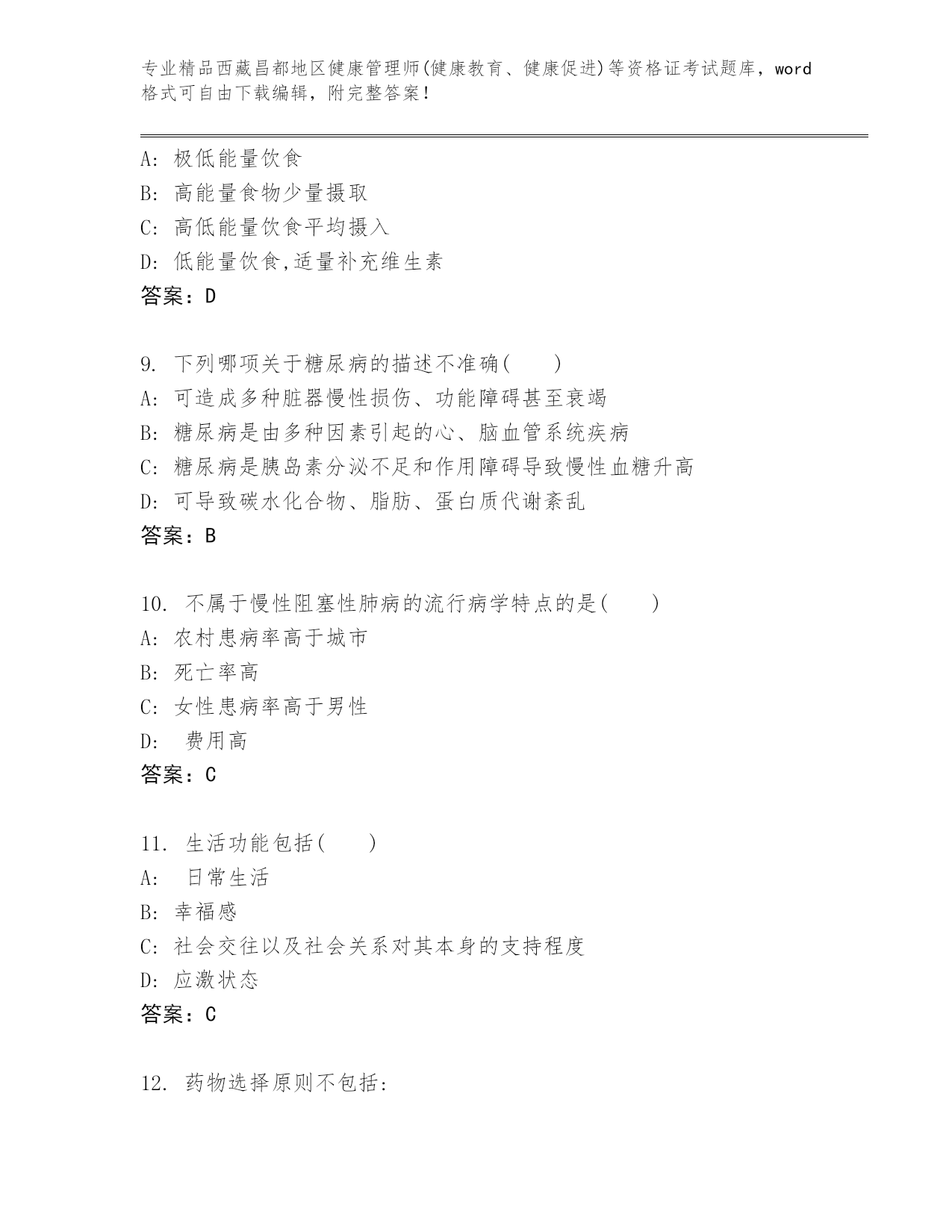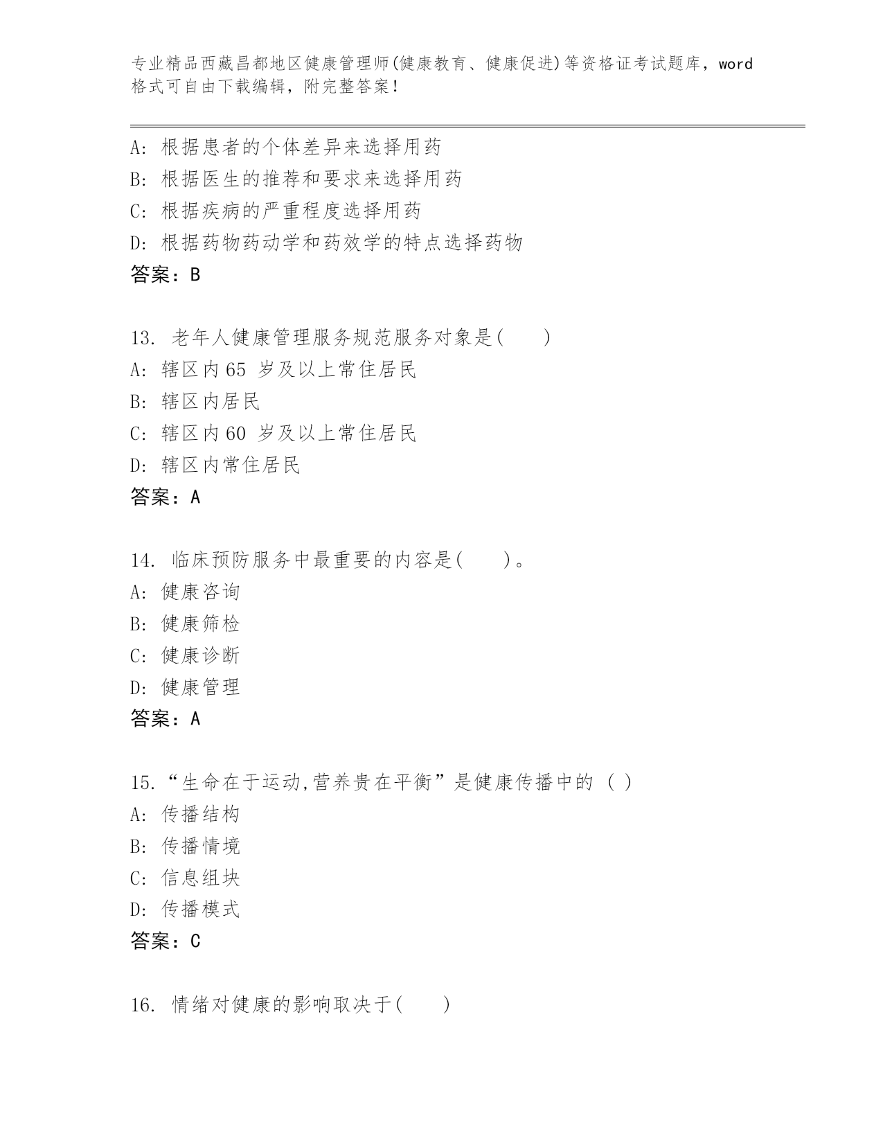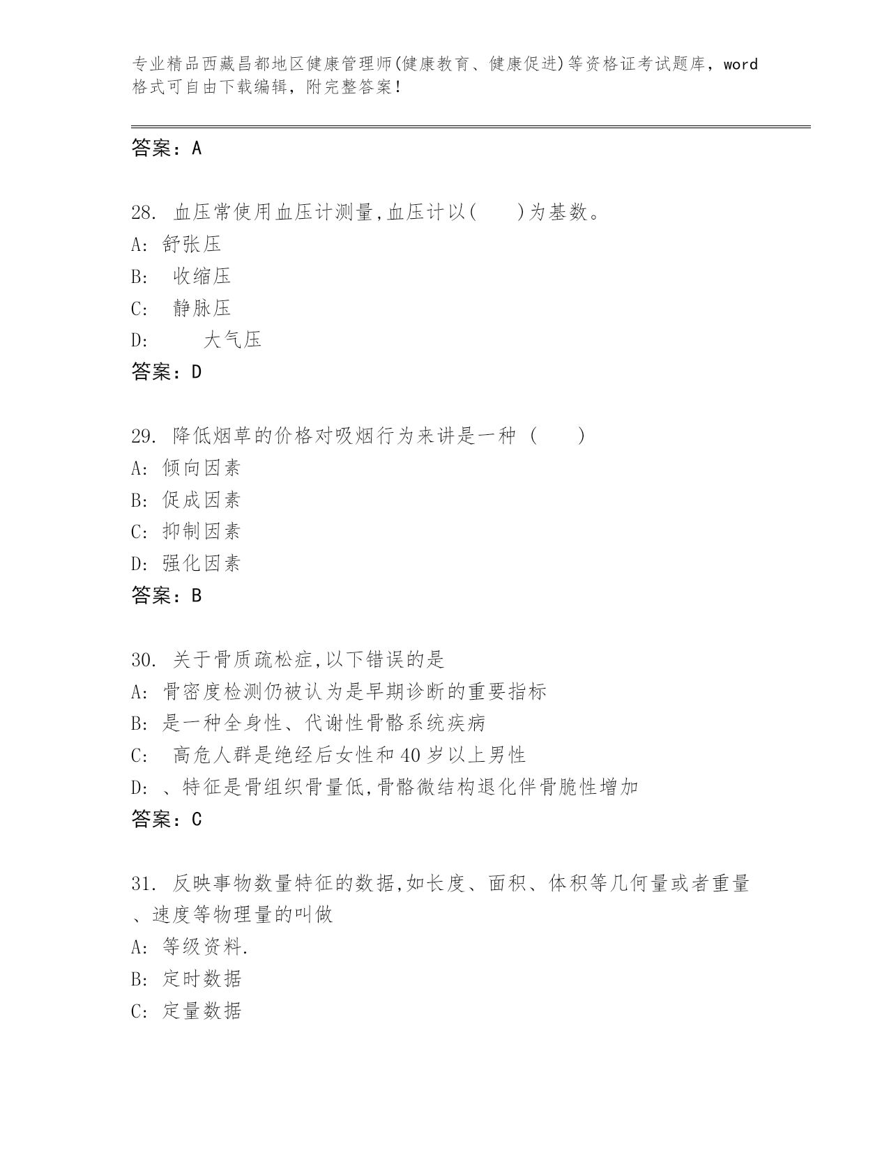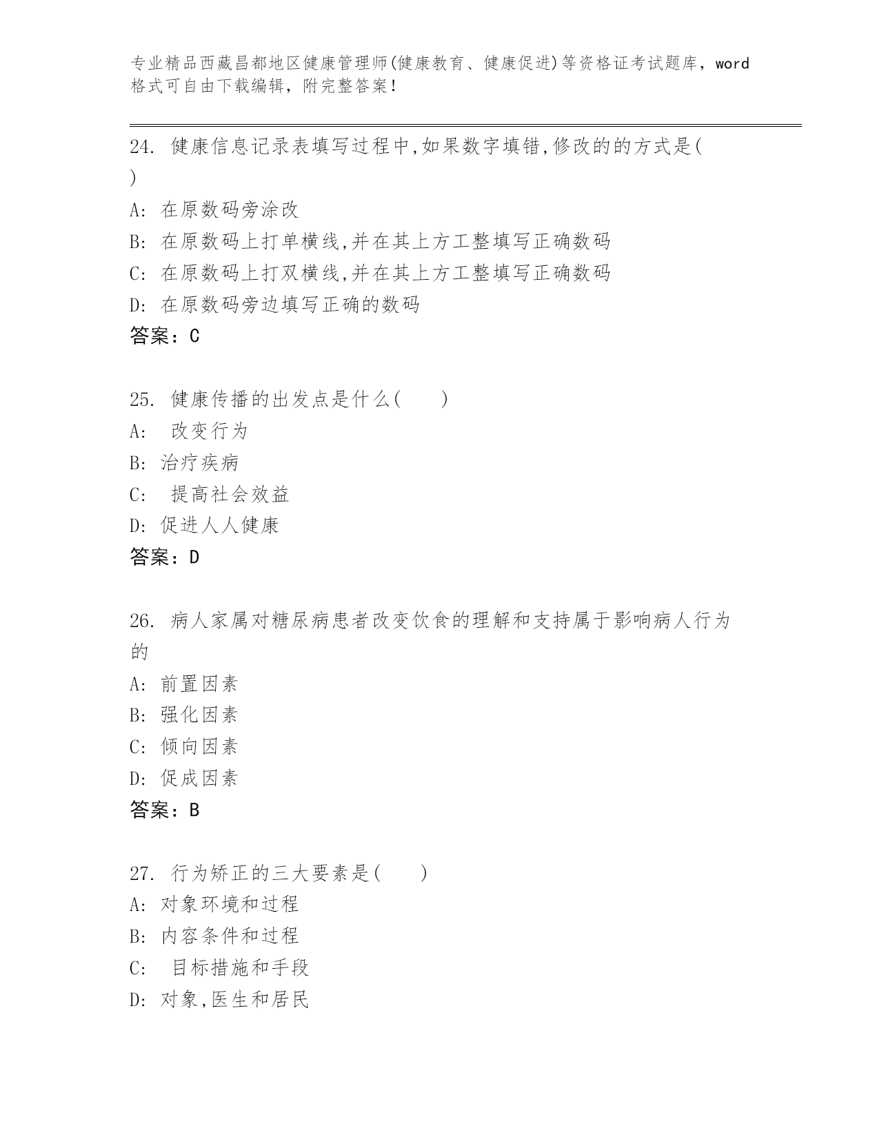 最新西藏昌都地区健康管理师(健康教育、健康促进)等资格证考试题库答案下载