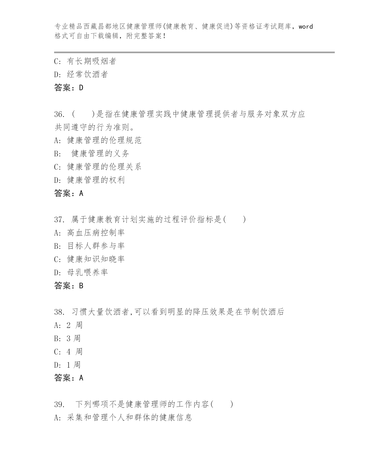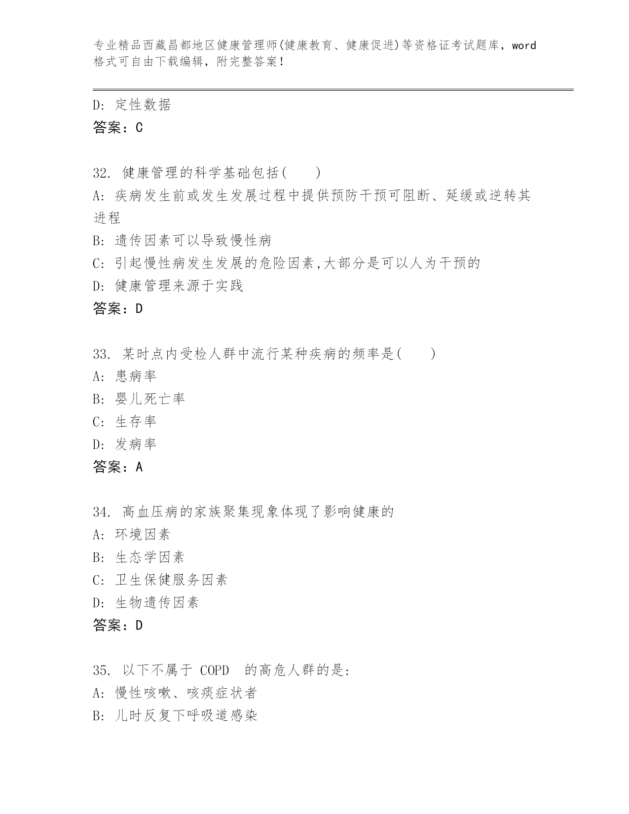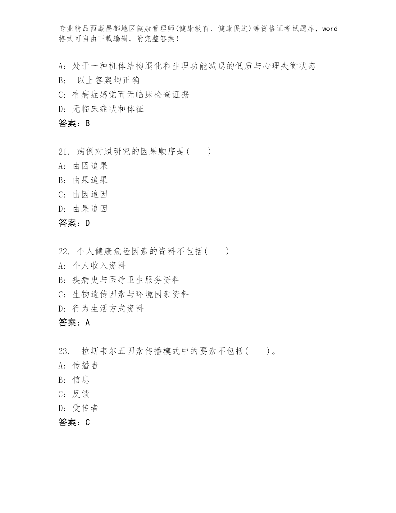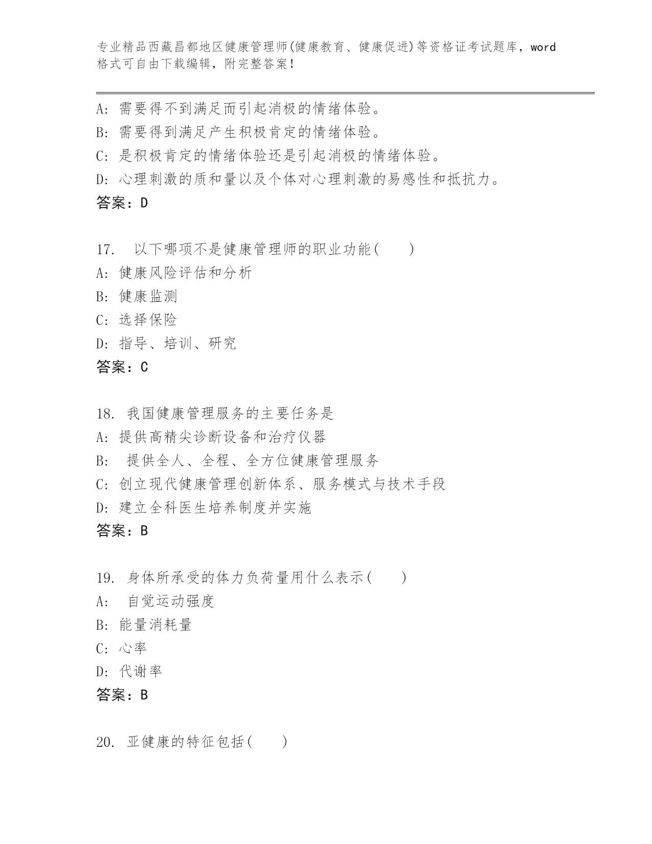 最新西藏昌都地区健康管理师(健康教育、健康促进)等资格证考试题库答案下载.docx