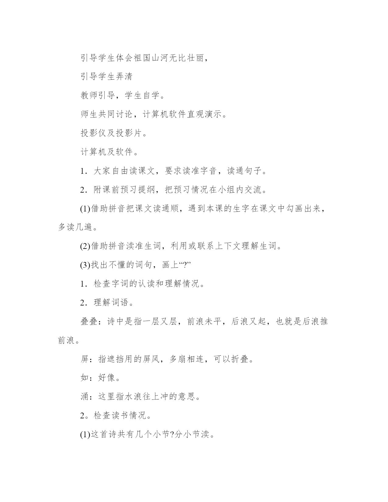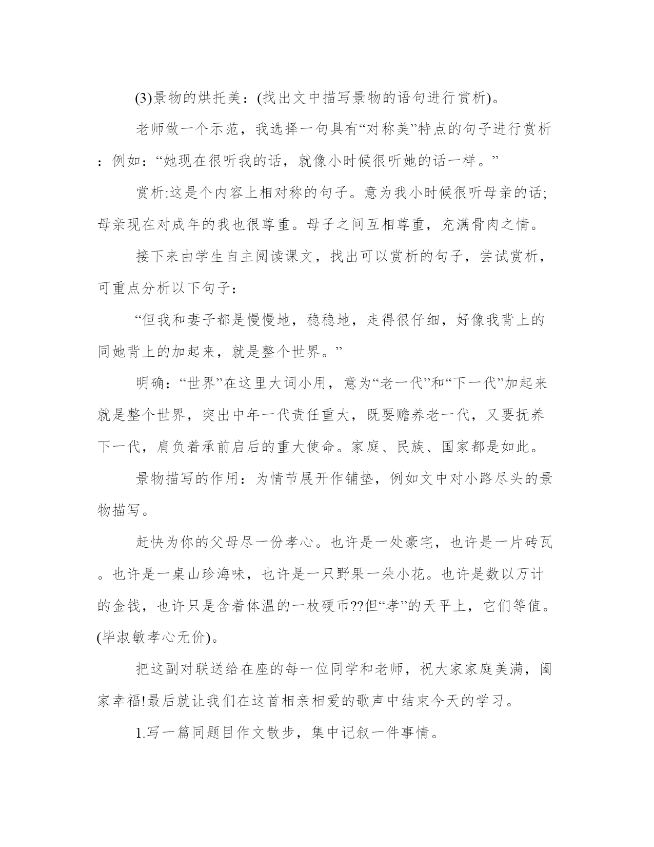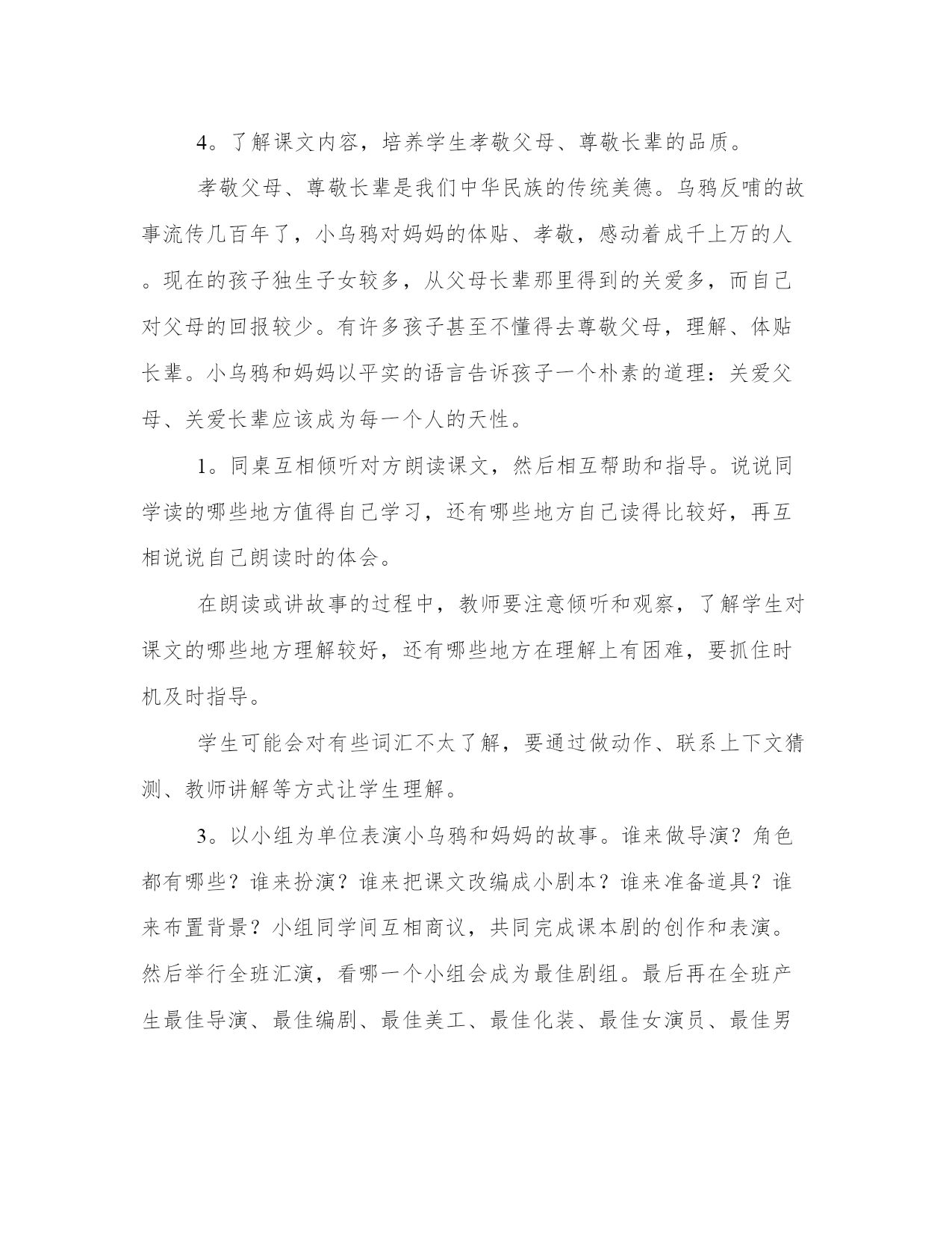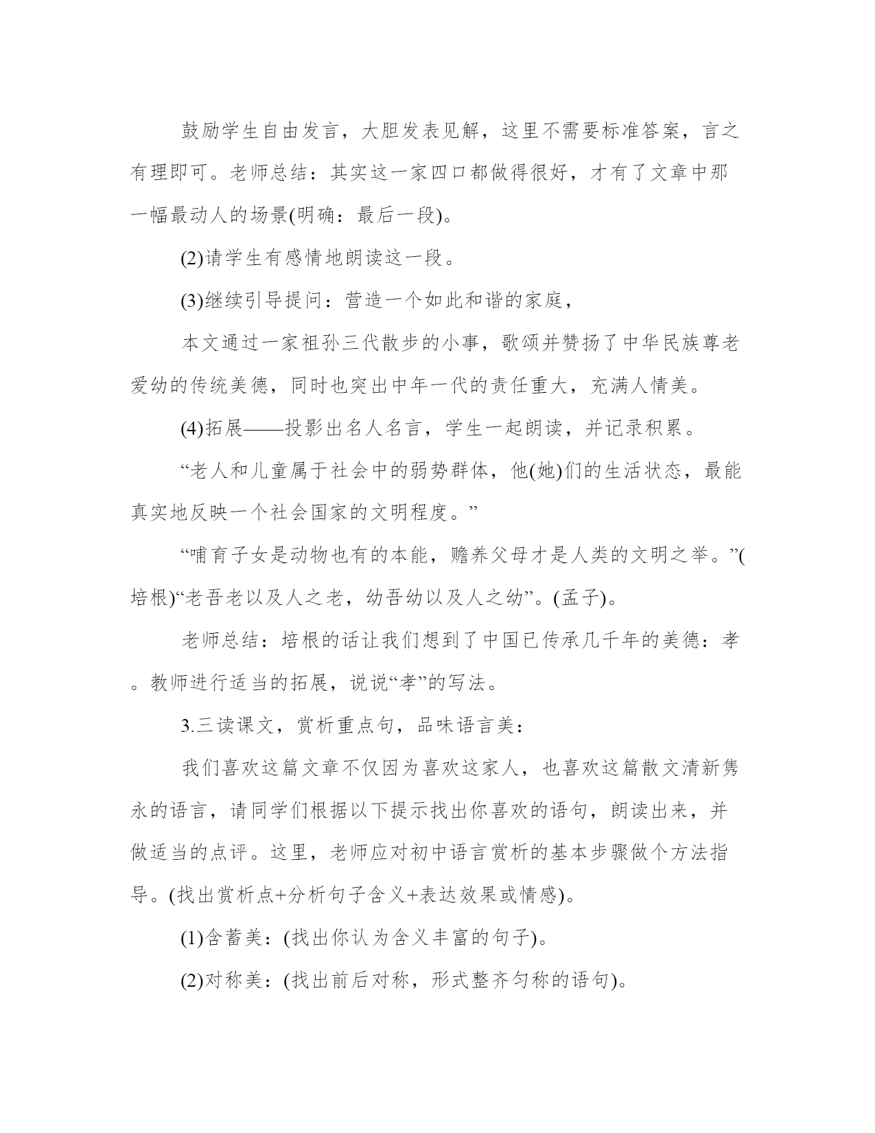 教学设计师的教学方案(汇总19篇)方案的成功与否,取决于执行力和团队合作的效果。一个成功的方案需要明确的目标和可量化的指标。每个方案都应该有一个明确的目标和评估标准。教学设计师的教学方案篇一语文课程标准指出:“学生是学习和发展的主体,语文课程必须根据学生身心发展和语文学习的特点,关注学生的个体差异和不同的学生需求,爱护学生的好奇心,求知欲,充分激发学生的主动意识和进取精神,倡导自主、合作、探究的学习方式。”因此,在教学中,采用以小组合作的形式,合作学习,进行交流反馈。这既体现了教师“导”的作用,也体现了学生的主体地位,并且使学生学会合作,学会探究。二、教学目标1.了解雅鲁藏布大峡谷的特点,感受雅鲁藏布大峡谷的壮丽神奇。2.通过学生自学交流,培养学生自主和合作学习的能力。3.激发学生热爱祖国大好河山的思想感情。4.学习收集资料。(课前查找有关西藏、雅鲁藏布大峡谷的资料)三、教学重难点了解雅鲁藏布大峡谷的特点,学习四、教学过程第一课时一、激发兴趣、导入师:我们的祖国有奔腾的江河,澎湃的大海!有辽阔的草原,茂密的森林!有宁静的山林,繁华的都市,还有令人向往的西藏,提起西藏你想到了什么?谁来说一说。学生交流课前查找的资料。2.学生汇报(会出现蓝天白云、青山碧水等)3.师:(出示图片)这就是美丽的雅鲁藏布大峡谷,今天老师就带着同学们跟随(板书:雅鲁藏布大峡谷)教学设计师的教学方案篇二1.整体感知、理解文章思想内容。2.品味富有表现力的语言。3.体会并学习“尊老爱幼”的传统美德。整体把握课文内容,体会欣赏本文的音韵美、景色美、亲情美。多少个日落,多少个清晨,我们和家人一起散步在公园的小路,散步在乡间的田野,今天就让我们一起走进莫怀戚的散步。通过“三读”课文,逐步理解课文的思想内容,体会文章的思想美和语言美。1.“一读”课文,整体感知内容。(1)教师范读课文,学生听读,要求:用一句话这篇课文写了一件什么事。教师提示:(出示幻灯片)(什么人?在什么时间?什么地点?干什么?)学生回答,明确:一家祖孙三代在初春的田野上散步。(2)学生自由朗读课文,思考:课文围绕“散步”这一中心事件写了哪些具体的事?学生自由回答,边答边板书。(请简要复述文章的主要内容,100字左右。)。师明确:“我”劝母亲散步——全家一起散步——选择大路小路的分歧——“我”决定委屈儿子——母亲却依从了孙子——在不好走的地方,“我”和妻子分别背起母亲和儿子。老体弱,余年不多,伴随她的机会已很少;儿子年纪尚幼,来日方长,伴随他的机会还很多。于是“我”决定委屈儿子,顺从母亲,作出了“走大路”(板书)的决定。这个决定是明智的,体现了中华民族“尊老”(板书)的美德。同时母亲的选择是——走小路。这又体现了我国另一种传统美德,是——爱幼。)。(尊老与爱幼最好由学生总结出。)。2.二读课文,把握文章主旨,体会亲情美。(1)引导学生思考:讨论并回答在整个散步过程中,谁做得最好?并简单说说理由。鼓励学生自由发言,大胆发表见解,这里不需要标准答案,言之有理即可。老师总结:其实这一家四口都做得很好,才有了文章中那一幅最动人的场景(明确:最后一段)。(2)请学生有感情地朗读这一段。(3)继续引导提问:营造一个如此和谐的家庭,本文通过一家祖孙三代散步的小事,歌颂并赞扬了中华民族尊老爱幼的传统美德,同时也突出中年一代的责任重大,充满人情美。(4)拓展——投影出名人名言,学生一起朗读,并记录积累。“老人和儿童属于社会中的弱势群体,他(她)们的生活状态,最能真实地反映一个社会国家的文明程度。”“哺育子女是动物也有的本能,赡养父母才是人类的文明之举。”(培根)“老吾老以及人之老,幼吾幼以及人之幼”。(孟子)。老师总结:培根的话让我们想到了中国已传承几千年的美德:孝。教师进行适当的拓展,说说“孝”的写法。3.三读课文,赏析重点句,品味语言美:我们喜欢这篇文章不仅因为喜欢这家人,也喜欢这篇散文清新隽永的语言,请同学们根据以下提示找出你喜欢的语句,朗读出来,并做适当的点评。这里,老师应对初中语言赏析的基本步骤做个方法指导。(找出赏析点+分析句子含义+表达效果或情感)。(1)含蓄美:(找出你认为含义丰富的句子)。(2)对称美:(找出前后对称,形式整齐匀称的语句)。(3)景物的烘托美:(找出文中描写景物的语句进行赏析)。老师做一个示范,我选择一句具有“对称美”特点的句子进行赏析:例如:“她现在很听我的话,就像小时候很听她的话一样。”赏析:这是个内容上相对称的句子。意为我小时候很听母亲的话;母亲现在对成年的我也很尊重。母子之间互相尊重,充满骨肉之情。接下来由学生自主阅读课文,找出可以赏析的句子,尝试赏析,可重点分析以下句子: