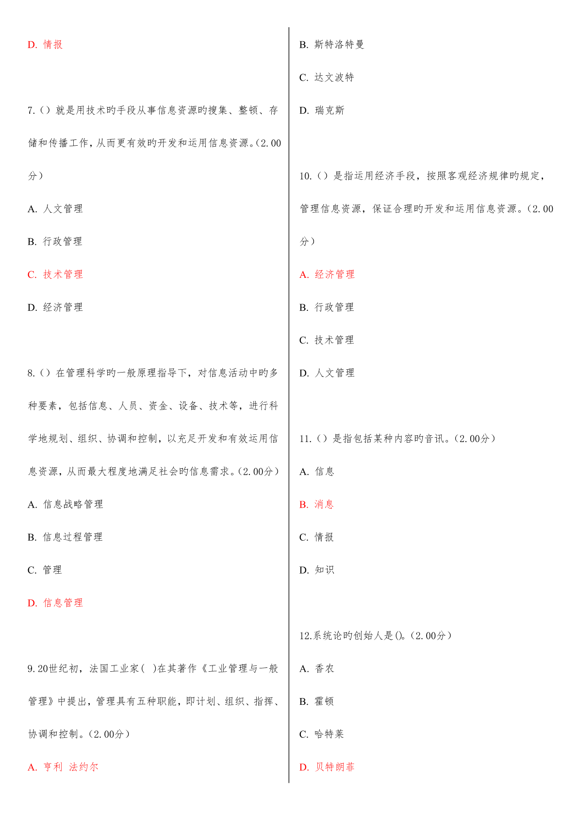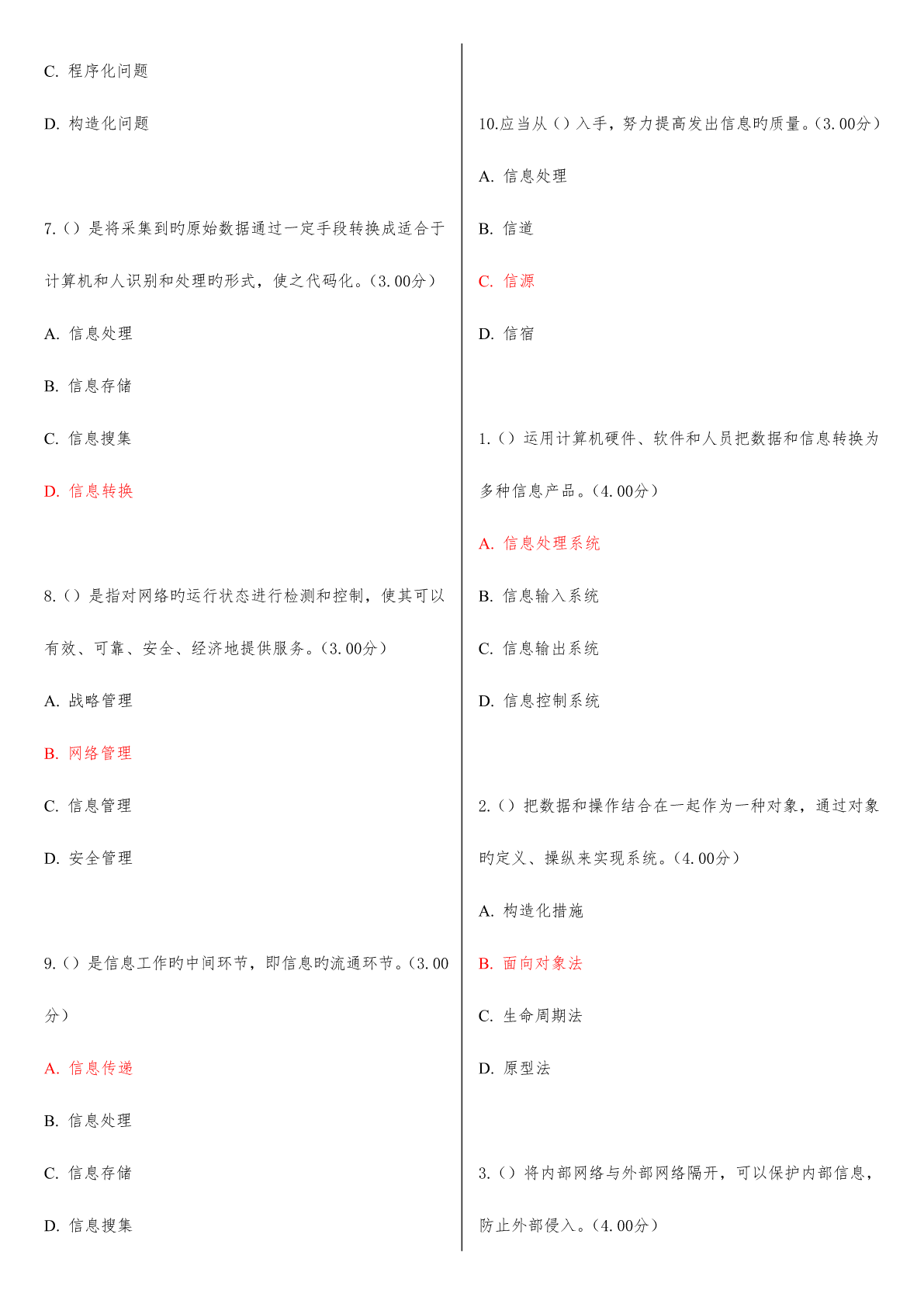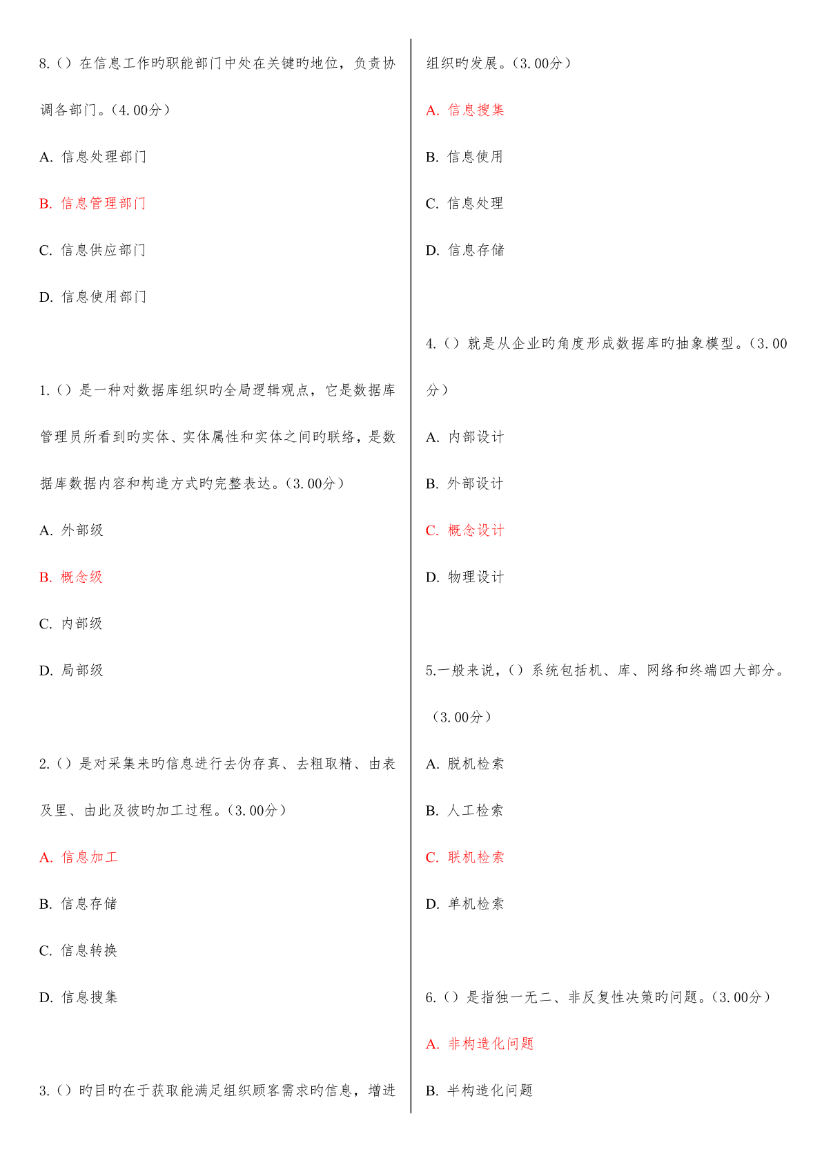 2023年河南电大信息管理概论教学考一体化网考形考作业试题及答案.pdf