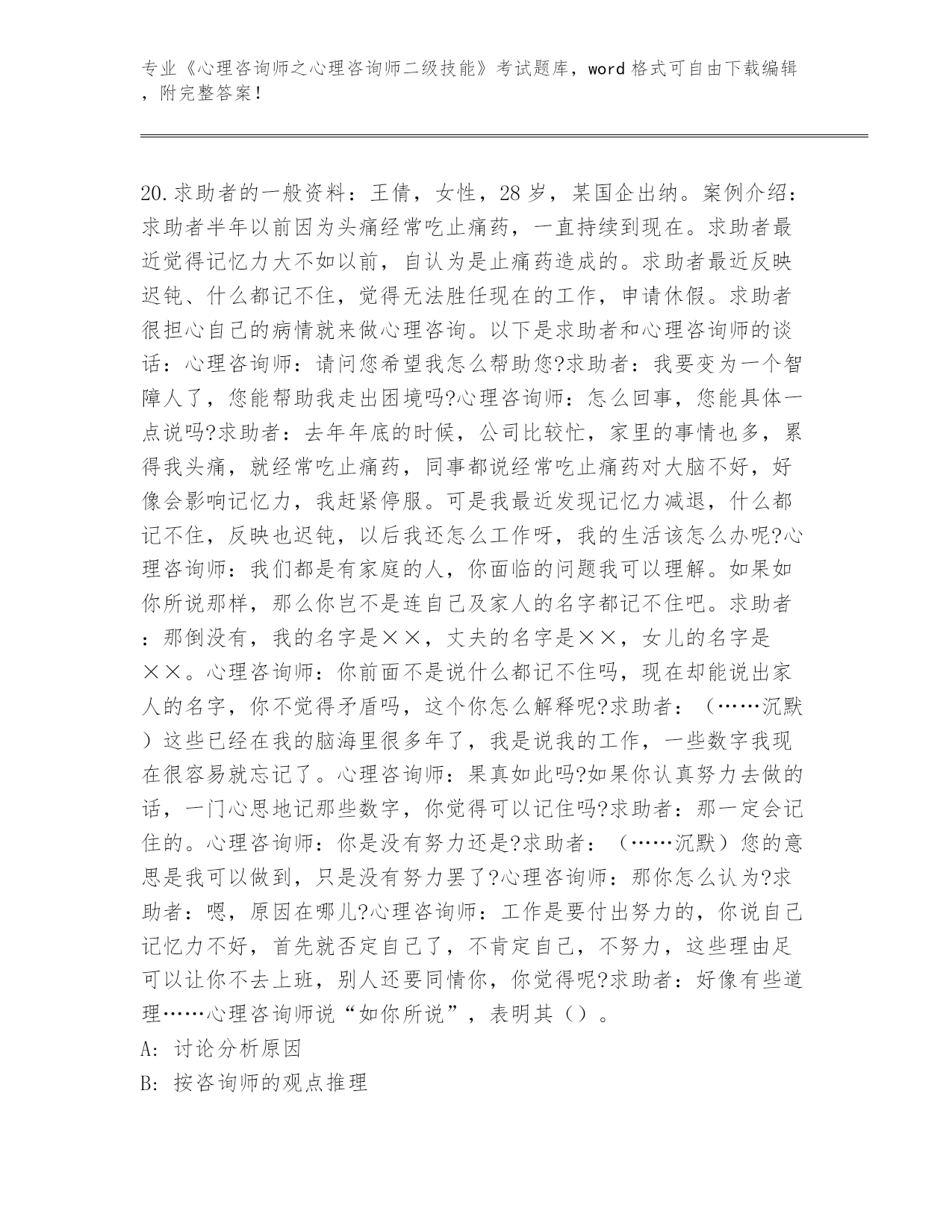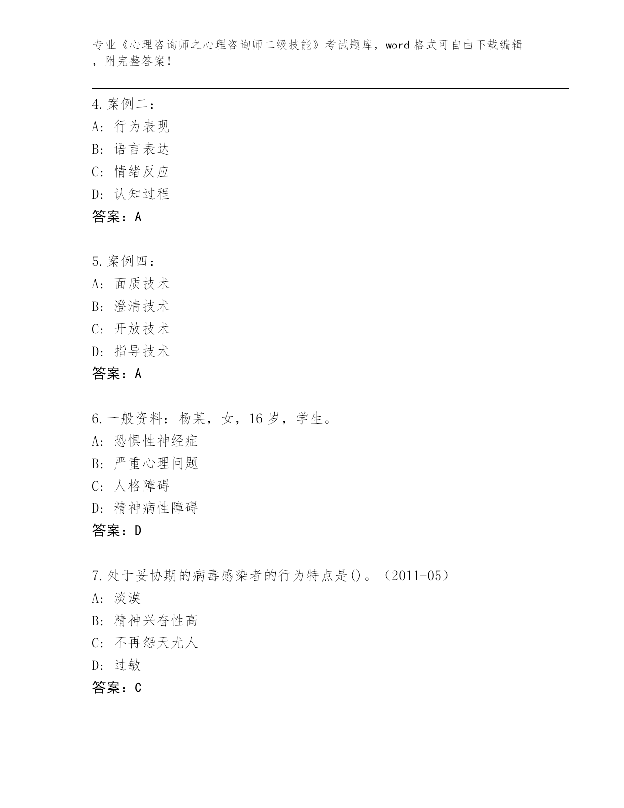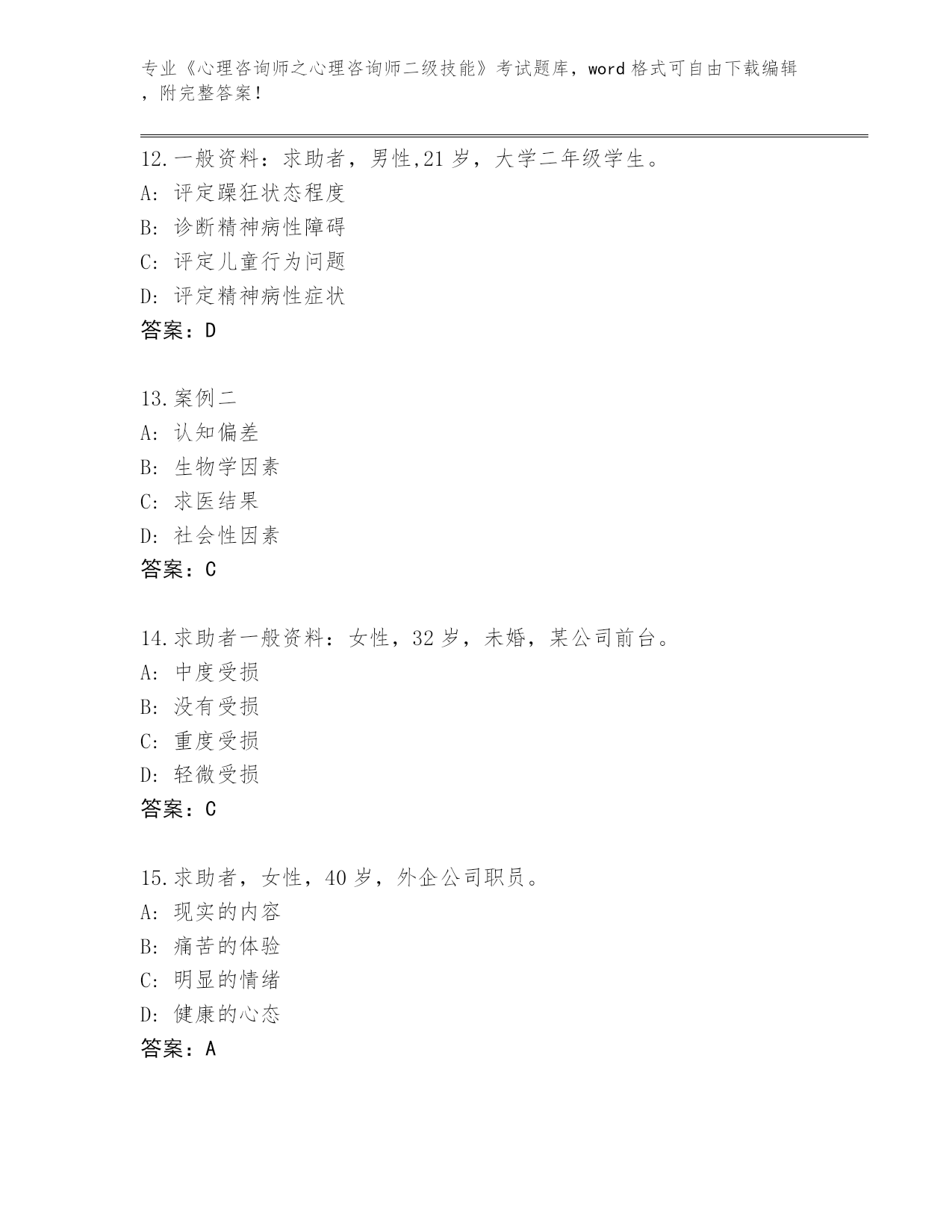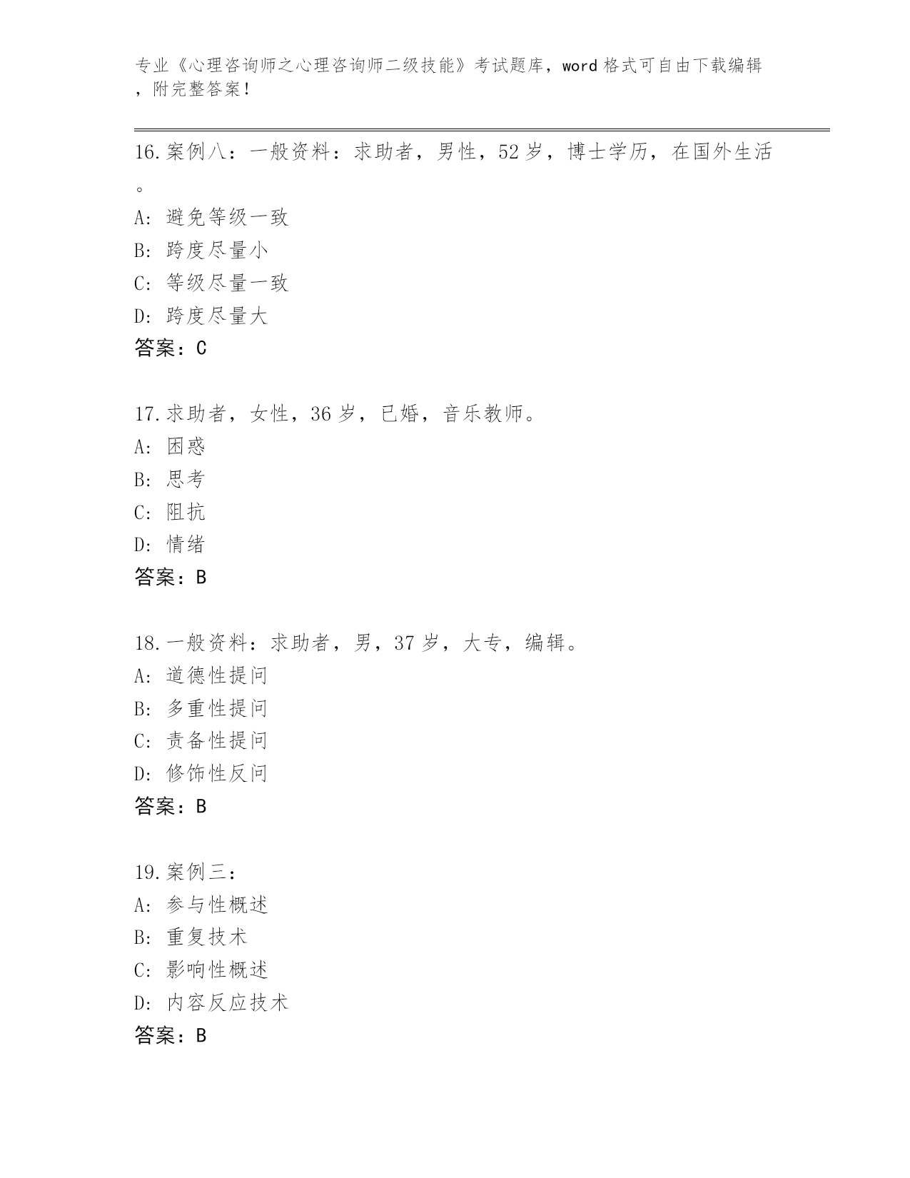 整理江苏省《心理咨询师之心理咨询师二级技能》资格考试内部题库答案下载