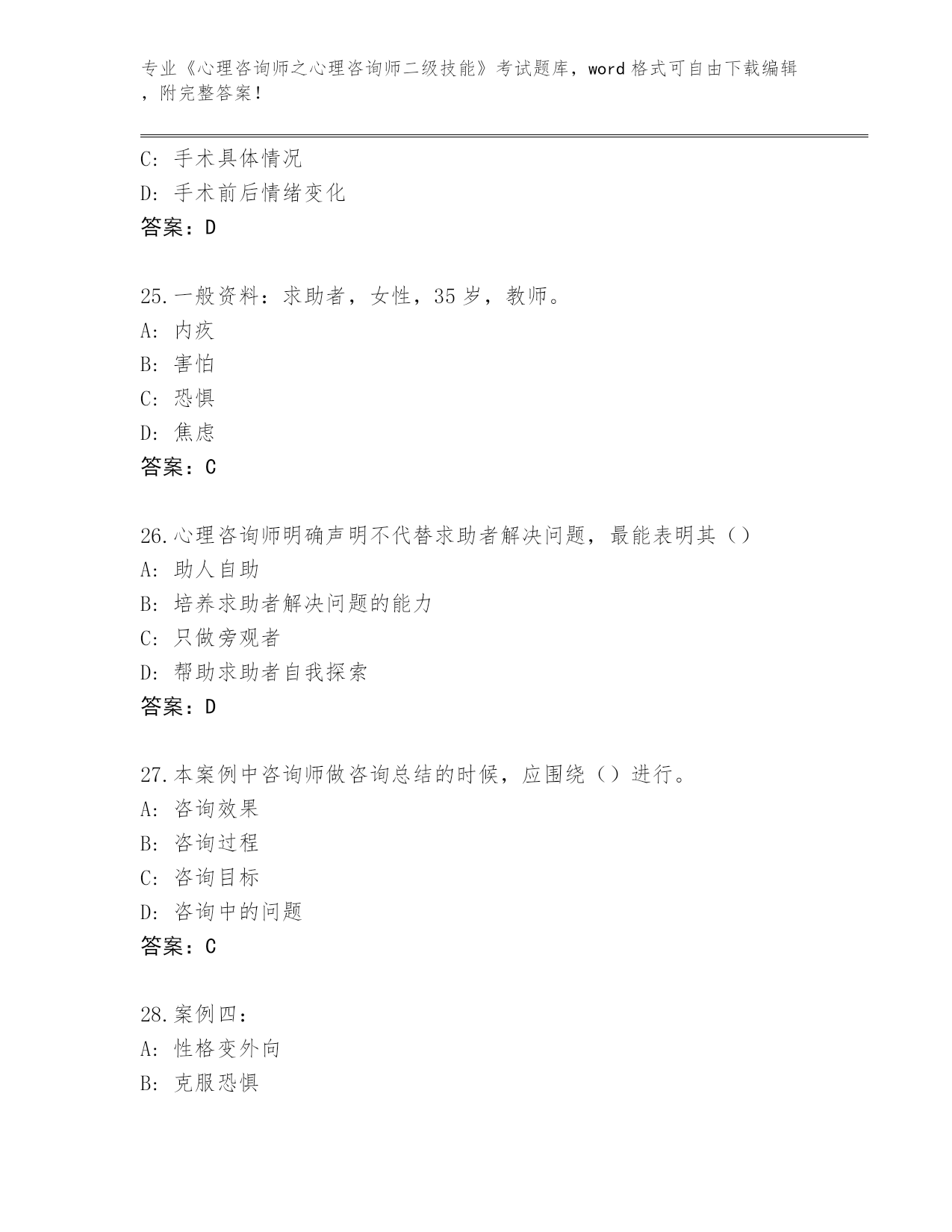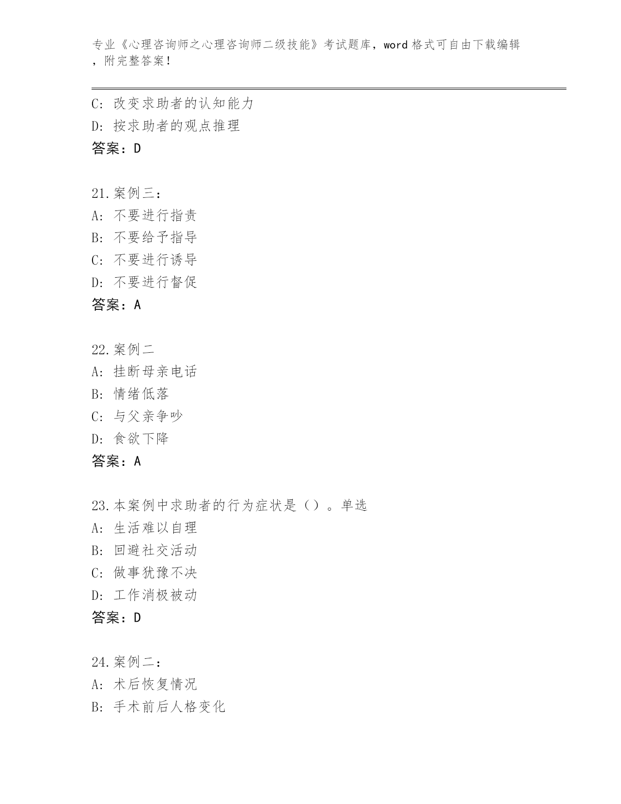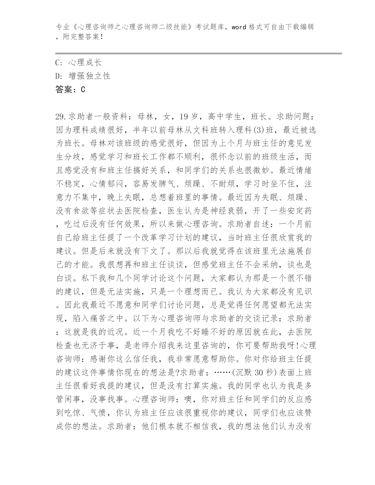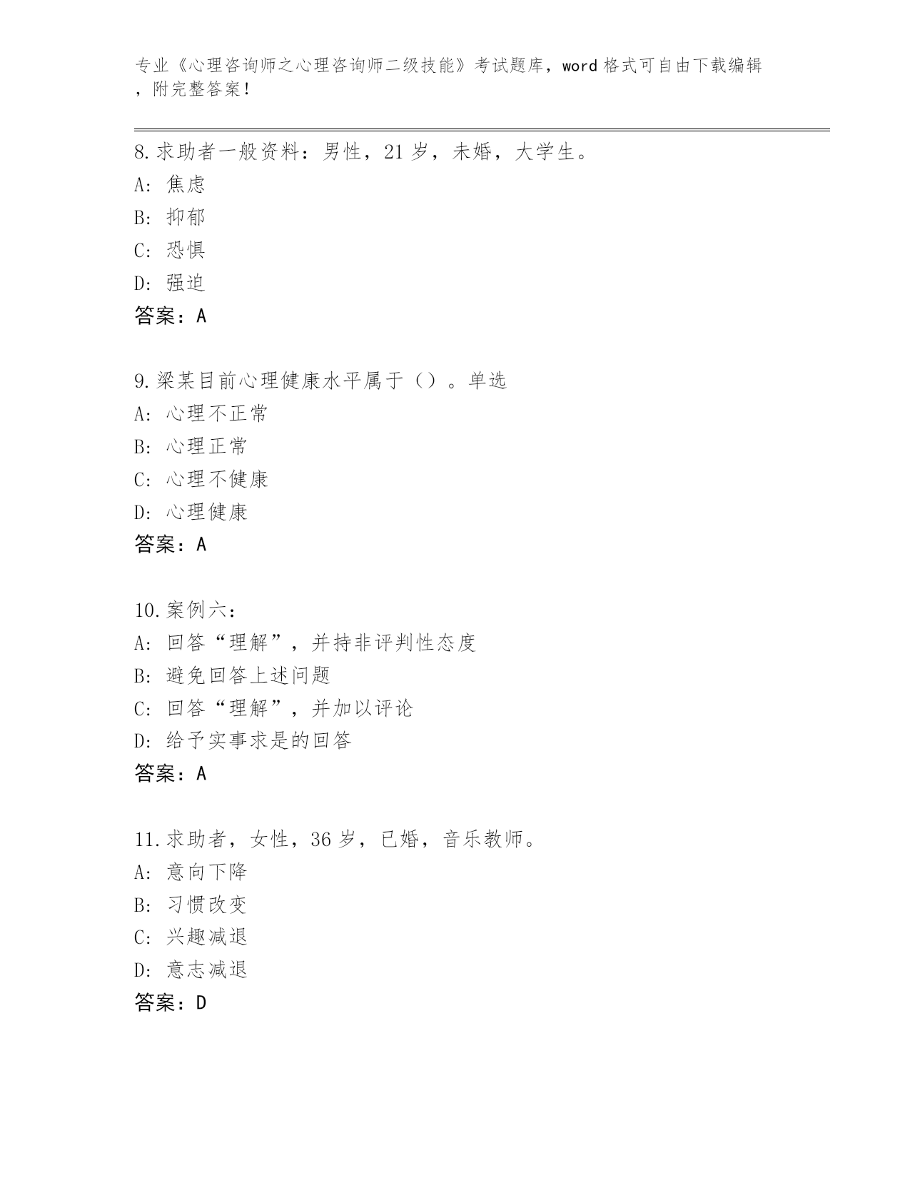整理江苏省《心理咨询师之心理咨询师二级技能》资格考试内部题库答案下载