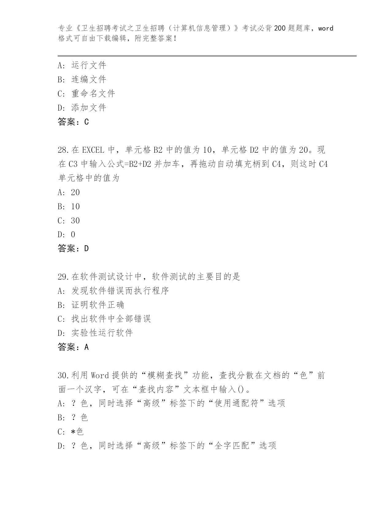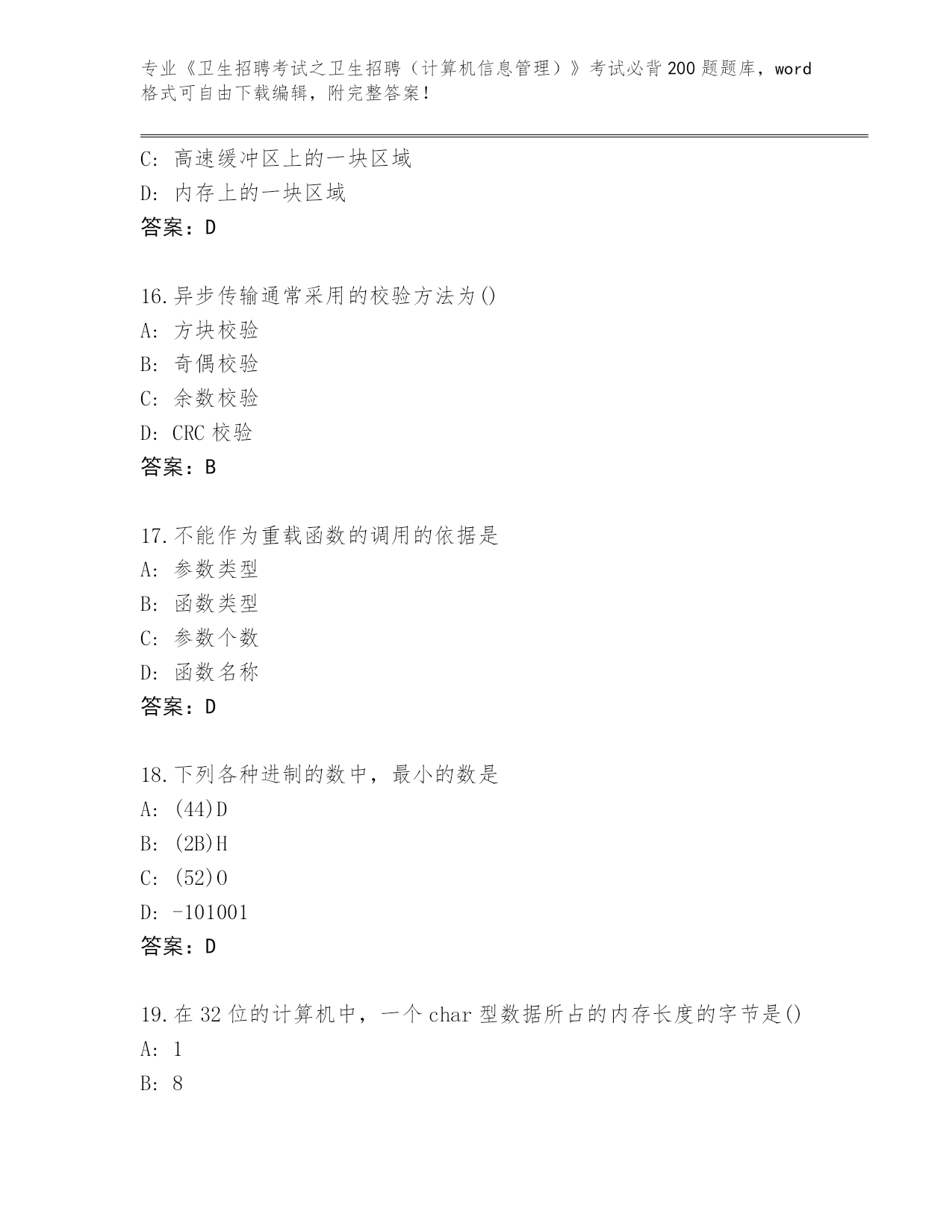 湖南省《卫生招聘考试之卫生招聘(计算机信息管理)》考试必背200题大全【原创题】
