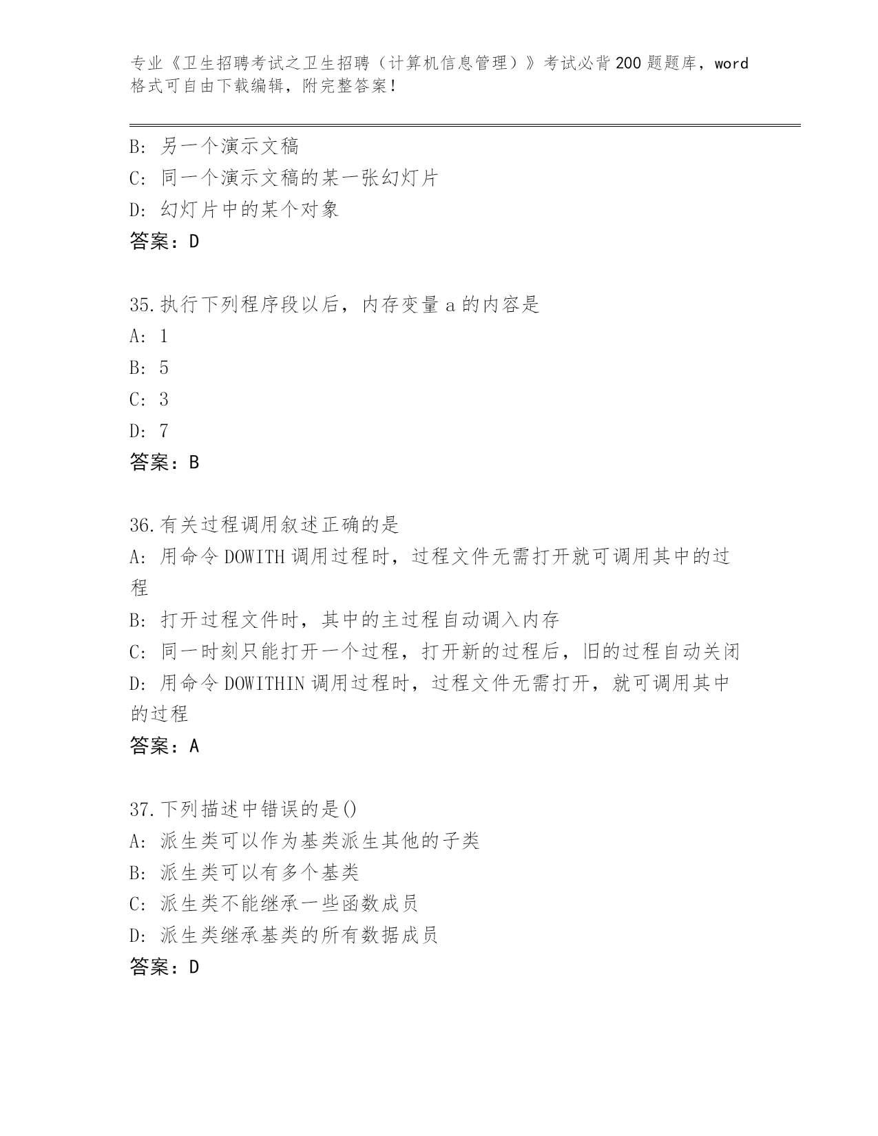 湖南省武冈市完整版《卫生招聘考试之卫生招聘(计算机信息管理)》考试必背200题题库含答案【模拟题】