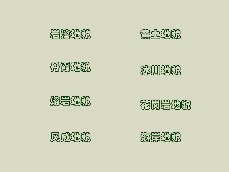 中国地貌旅游资源熔岩地貌岩溶地貌丹霞地貌龙虎山武夷山大王峰武夷山天游峰广东丹霞山——茶壶峰丹霞山——长老峰丹霞山——姐妹峰火山熔岩地貌吉林伊通古火山大同古火山菲律宾——马荣火山菲律宾——马荣火山乞力马扎罗山俯瞰乞力马扎罗山牡丹江地下森林风成地貌新月形沙丘波状沙丘鳞状沙丘黄土地貌冰川地貌冈仁波齐冈仁波齐梅里雪山南迦巴瓦峰乔戈里峰花岗岩地貌海岸地貌北戴河普陀山千步沙广西北海银滩广西涠洲岛海南三亚三亚天涯亚龙湾