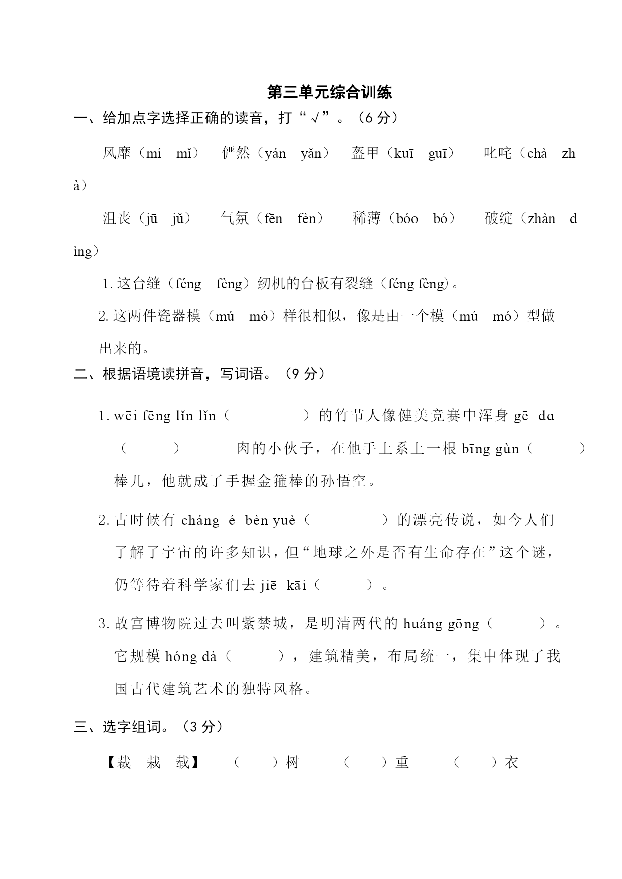第三单元综合训练(附参考答案)-最新经典通用教辅资料