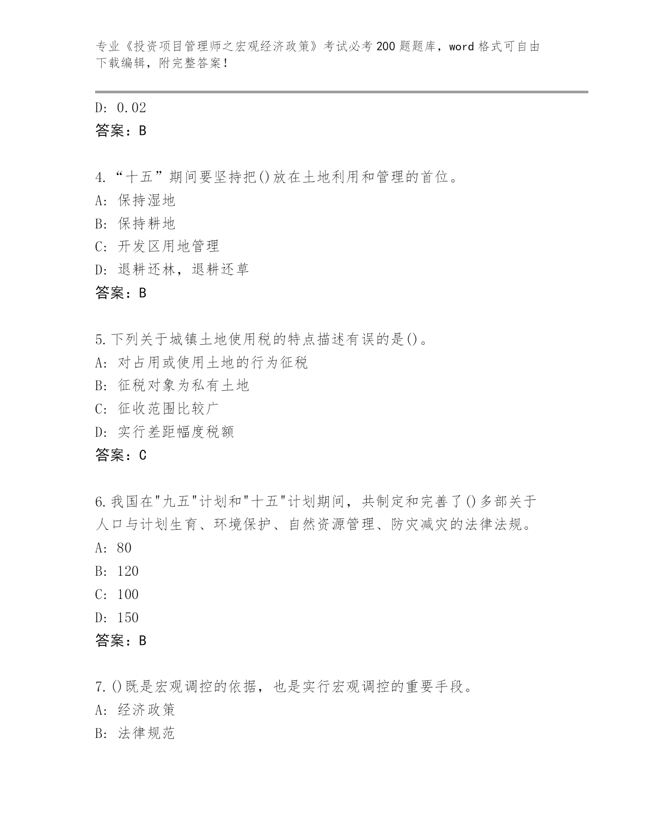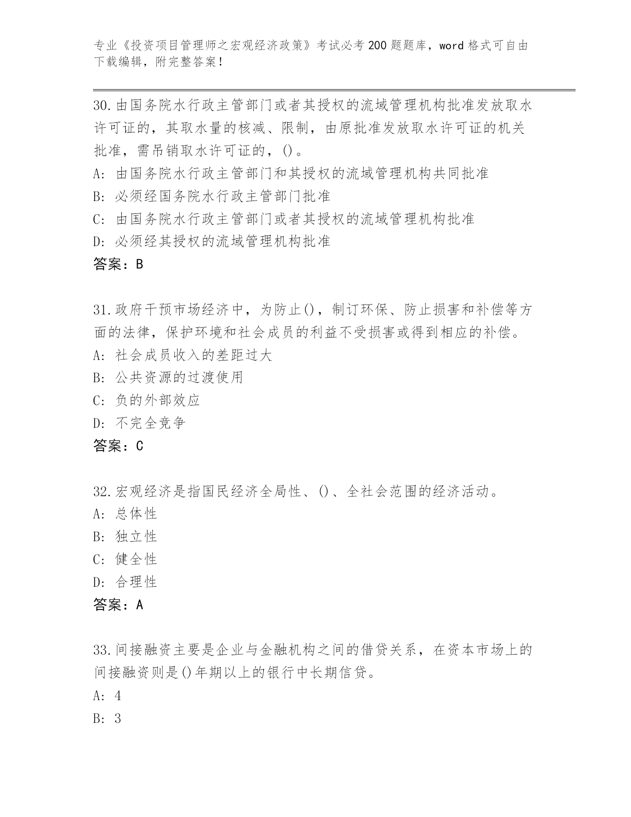 山西省郊区2024年《投资项目管理师之宏观经济政策》考试必考200题通关秘籍题库及答案【最新】
