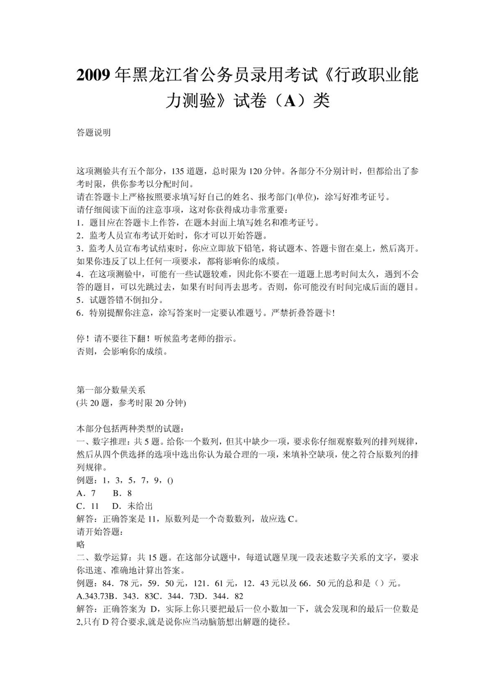 2009年黑龙江省公务员录用考试行测真题(A)类.pdf