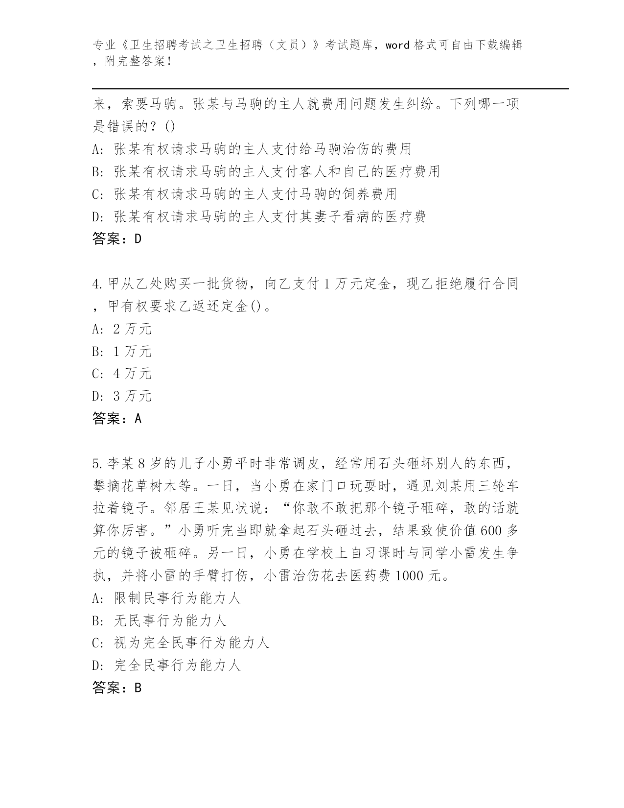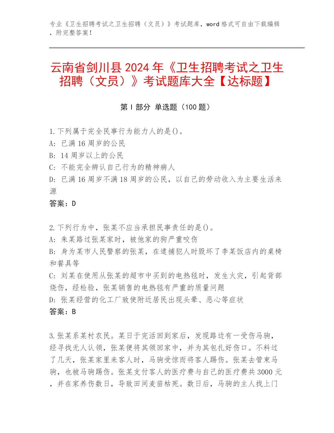 2024年云南省剑川县《卫生招聘考试之卫生招聘(文员)》考试完整题库及答案(网校专用)