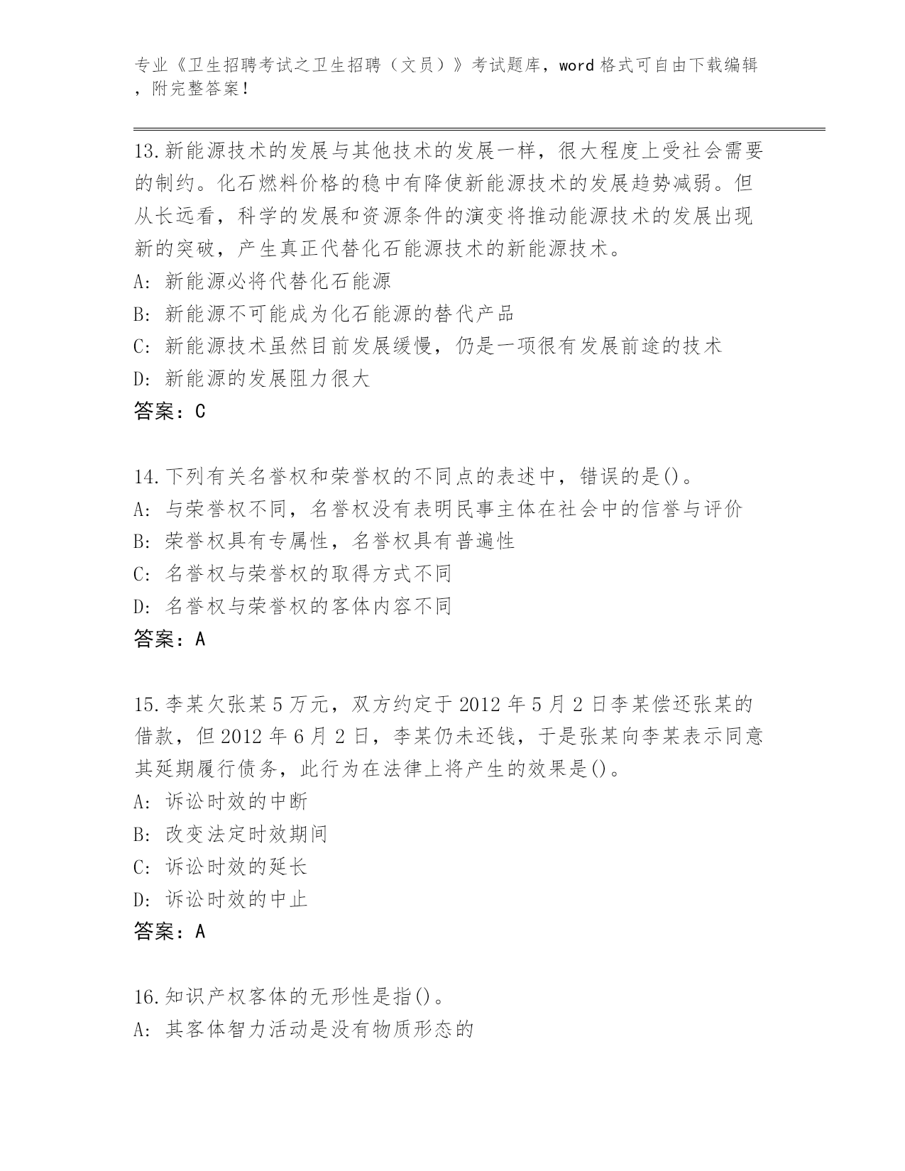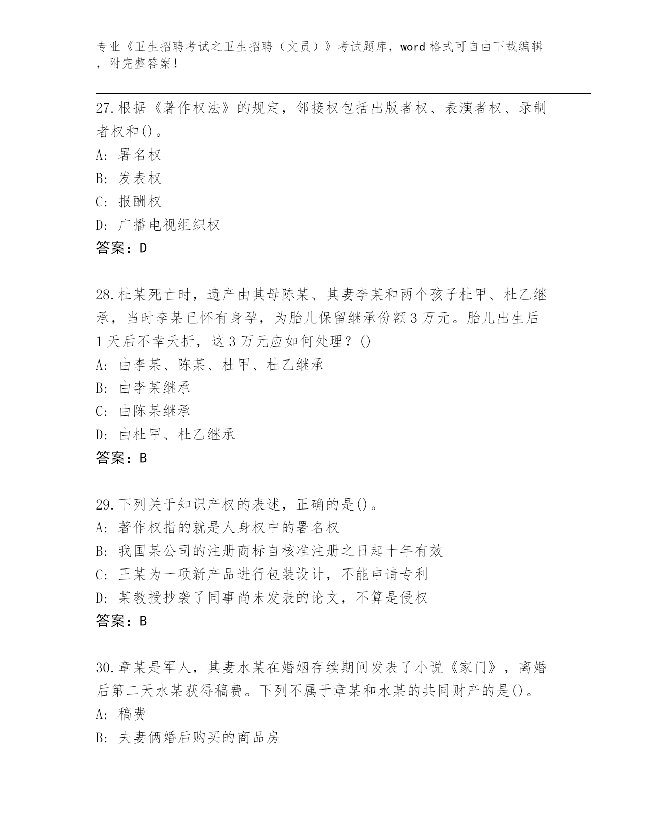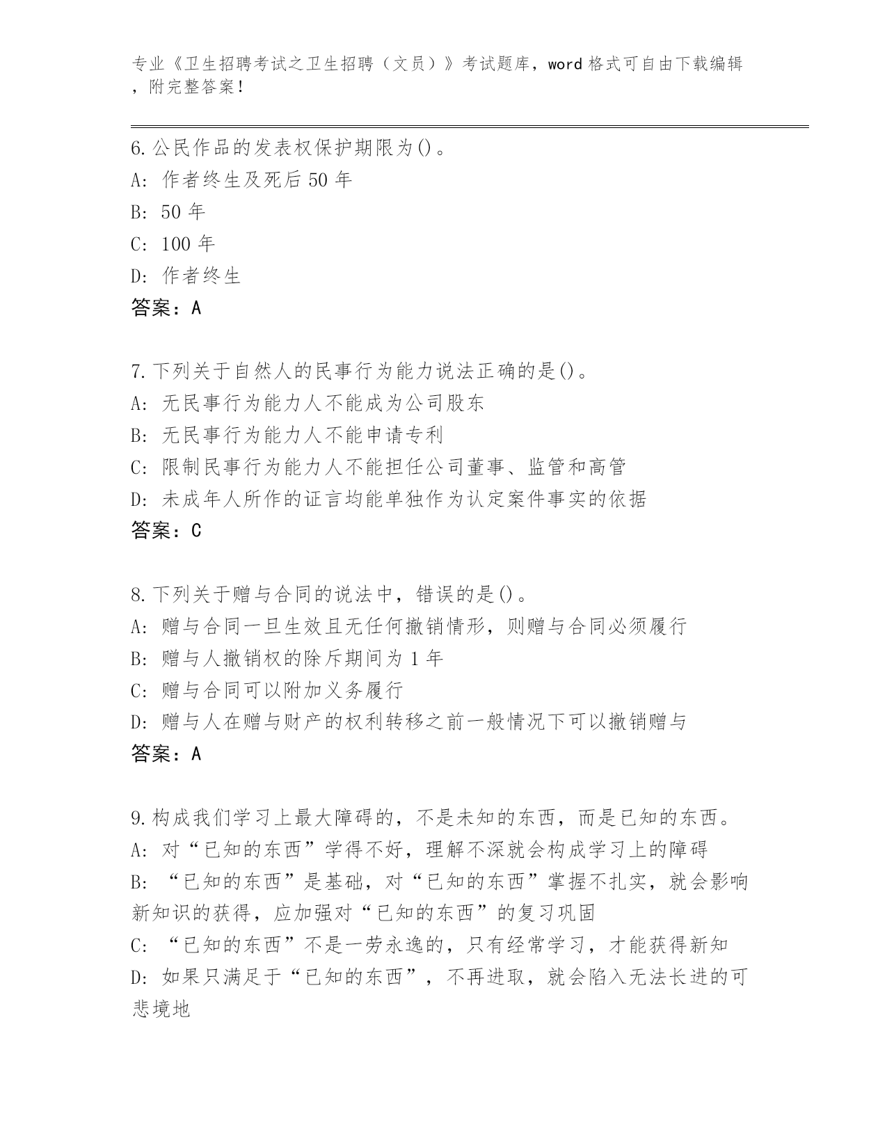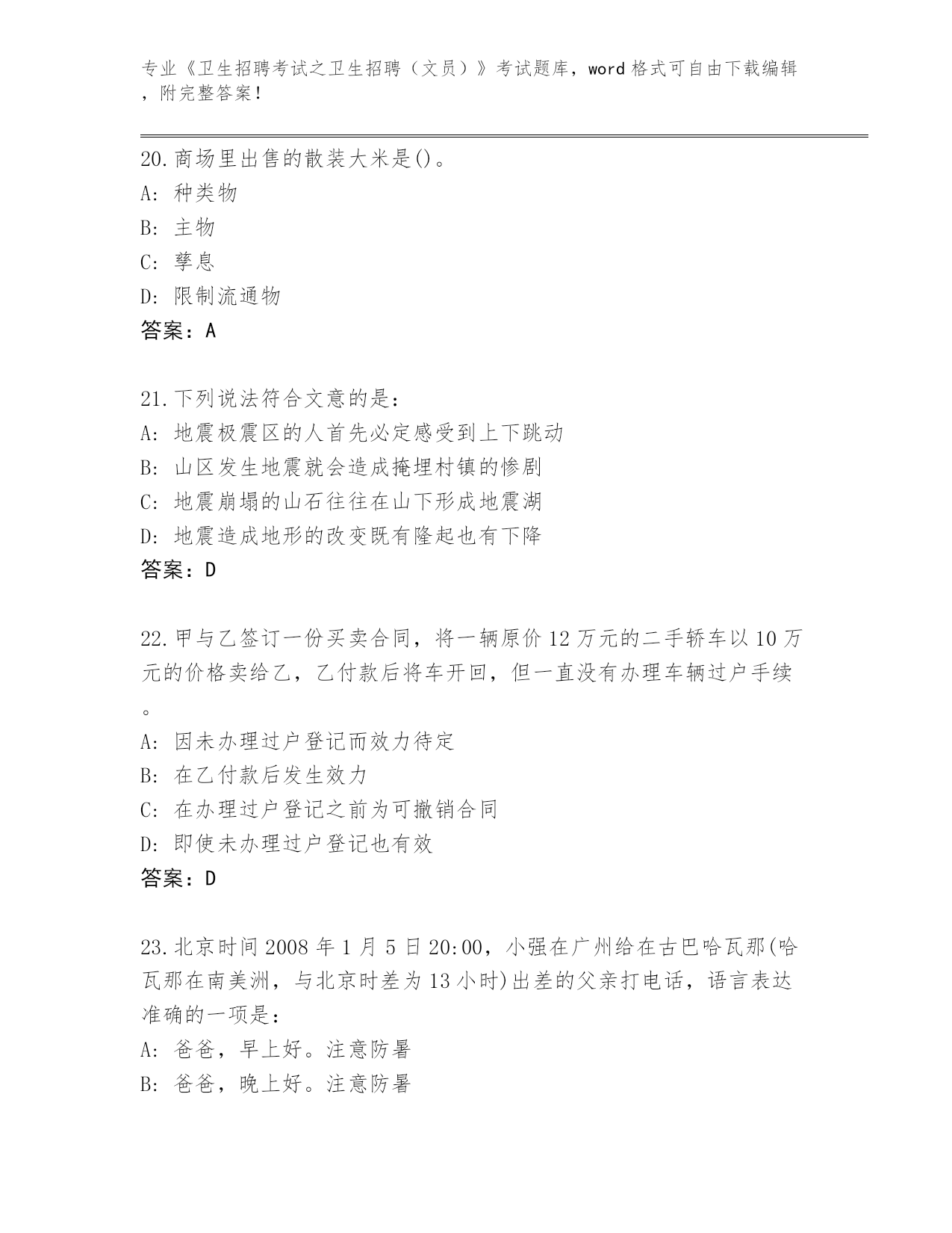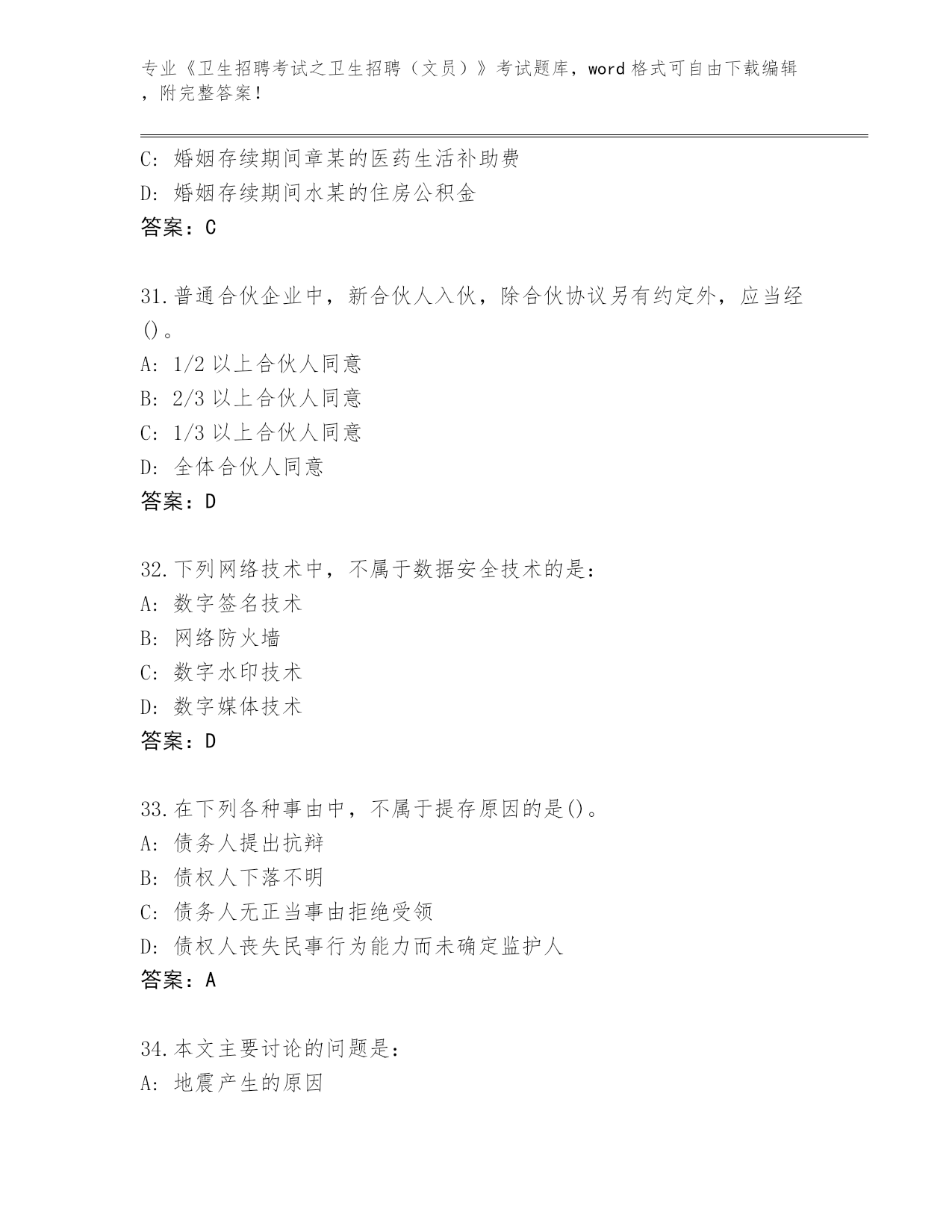 内部使用云南省剑川县《卫生招聘考试之卫生招聘(文员)》考试必刷200题题库有答案