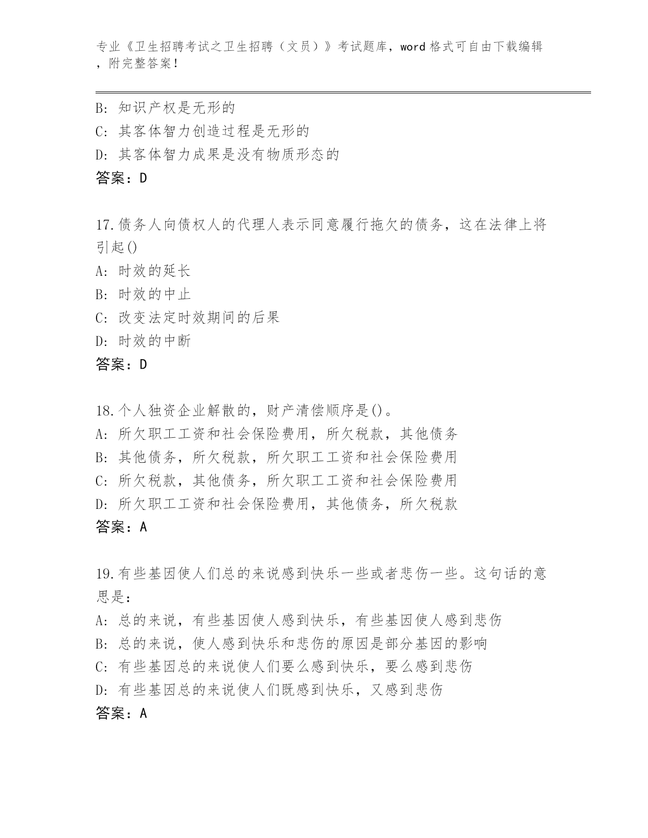 云南省剑川县整理《卫生招聘考试之卫生招聘(文员)》考试必考200题题库及答案(最新)