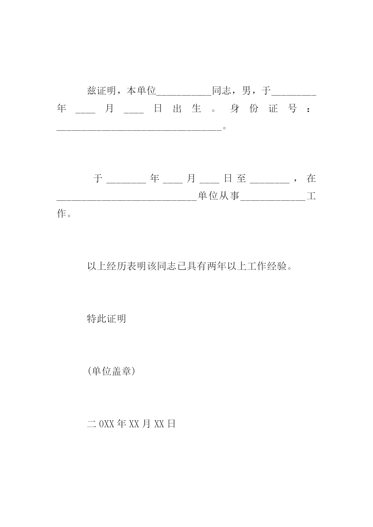 公务员工作证明模板公务员工作证明模板兹有我单位__________(同志)____________(身份证号)在__________________部门,从事_______________工作已有_____年特此证明!单位名称:(加盖单位公章)日期:公务员工作证明XX市委组织部:×××同志,身份证号:×××,系我单位在职人员,其人事档案现在×××保管。经研究,同意其报考XXXX。特此证明。(盖章)年月日公务员工作证明范本xxx人力资源和社会保障局:兹证明,本单位___________同志,男,于_________年____月____日出生。身份证号:_________________________________。于________年____月____日至________,在____________________________单位从事_____________工作。以上经历表明该同志已具有两年以上工作经验。特此证明(单位盖章)二0XX年XX月XX日
