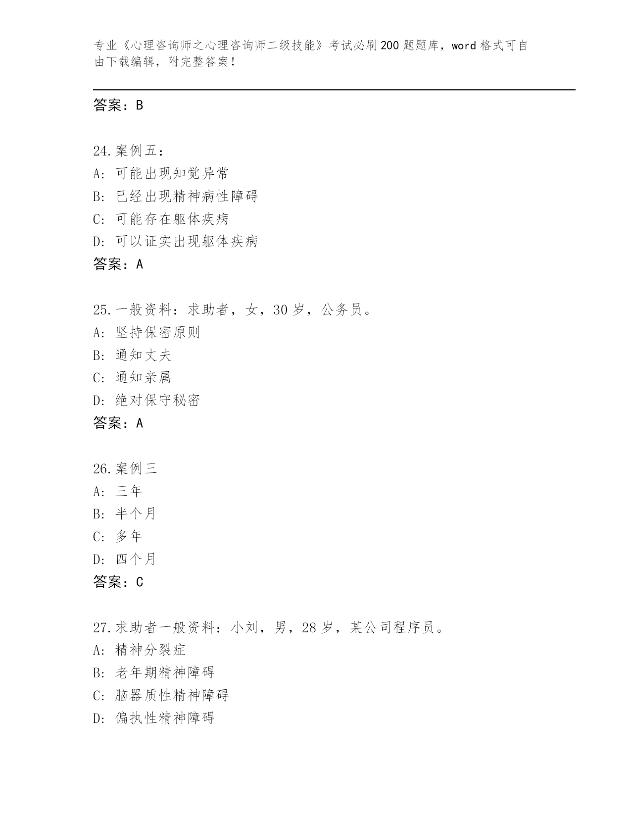 2024年湖南省《心理咨询师之心理咨询师二级技能》考试必刷200题完整题库(黄金题型)