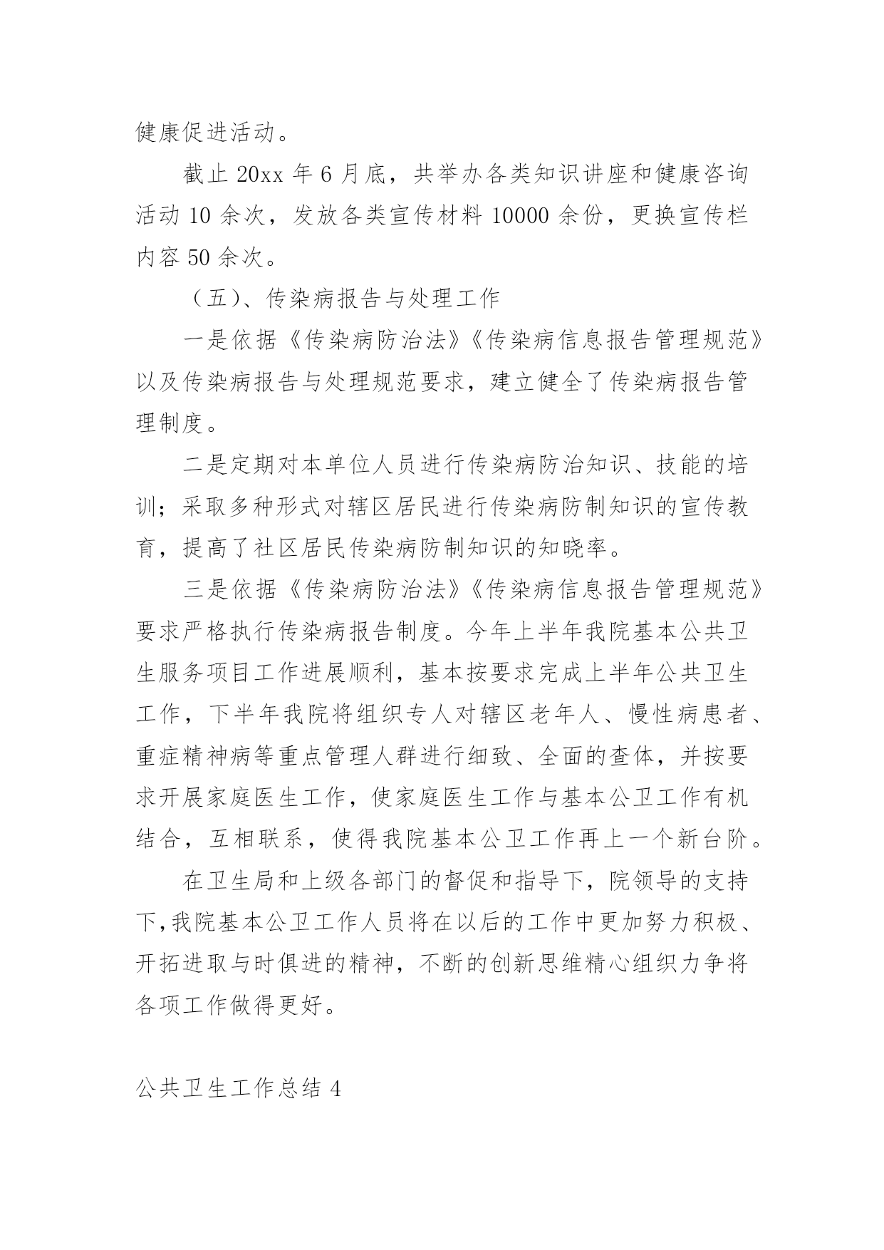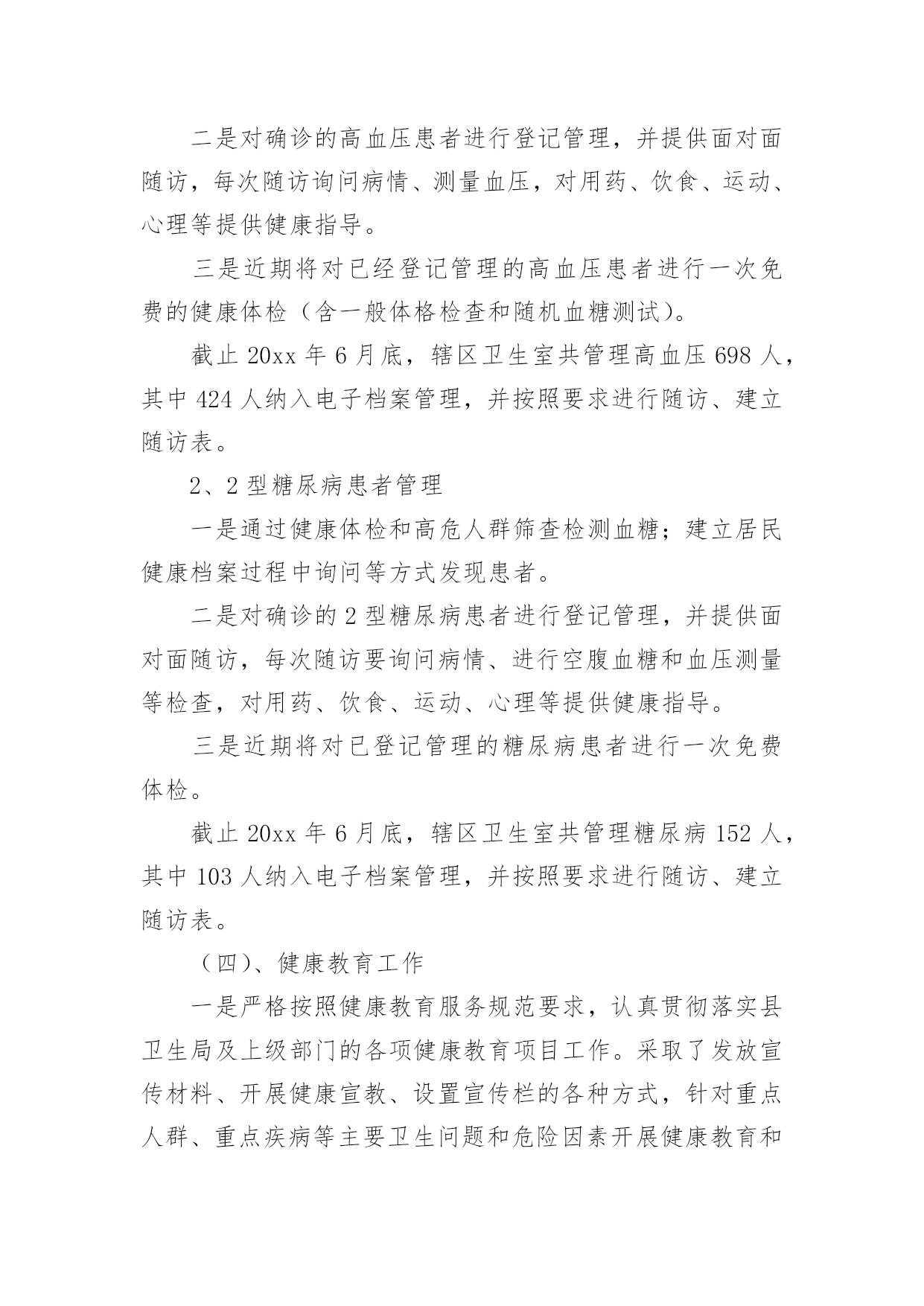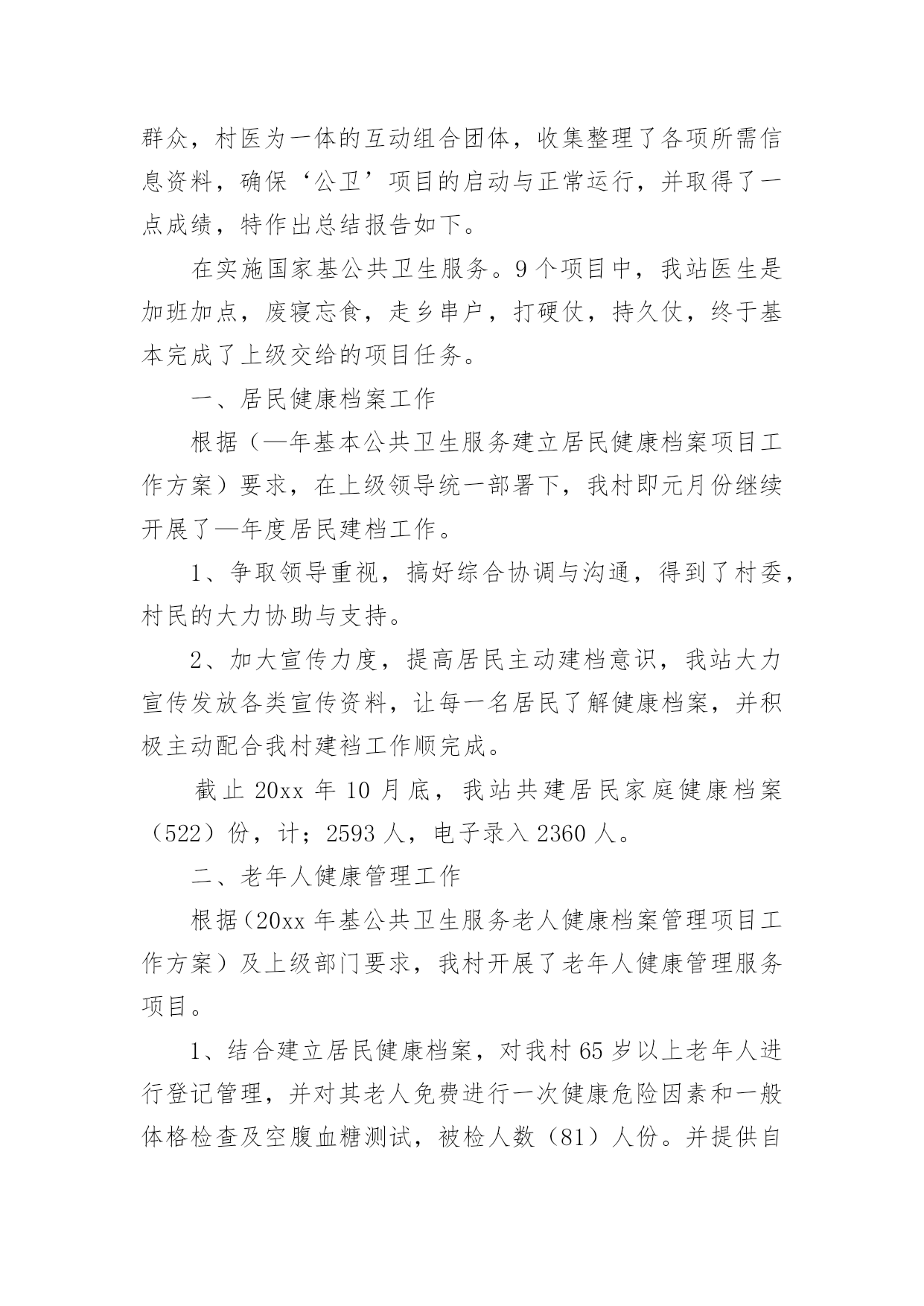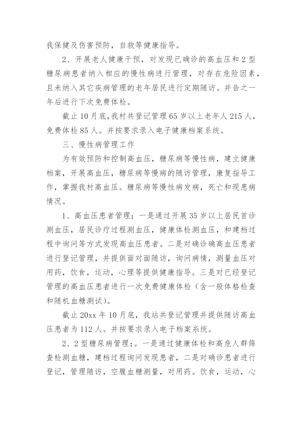 公共卫生工作总结1公共卫生工作总结总结是对过去一定时期的工作、学习或思想情况进行回顾、分析,并做出客观评价的书面材料,它可以明确下一步的工作方向,少走弯路,少犯错误,提高工作效益,因此,让我们写一份总结吧。总结怎么写才不会千篇一律呢?以下是小编收集整理的公共卫生工作总结,希望对大家有所帮助。公共卫生工作总结1时间飞逝,充实而又忙碌的一年已经过去,通过我社区全体工作人员的共同努力,今年的社区公共卫生工作已经完成,并取得了较好的成绩,但是也存在着一定的.问题需要整改。现根据年初的工作计划,对今年的社区公共卫生工作总结如下:一、落实组织,加强领导,健全制度,规范行为。领导班子能够团结合作,决策力、战斗力、凝聚力强,根据各自的分工,都已圆满完成任务,在书记、主任的领导下,均能认真贯彻好各级政府和街道办事处下达的各项工作任务和方针与政策;同时在原有的基础上,进一步完善了管理制度,并根据十二项公共卫生服务的内容和要求制定了工作考核制度、奖罚制度,提高了工作人员的工作责任心、积极性,为我社区今年取得的良好成绩打下了基础。二、五项公共卫生服务情况。1、健康教育:我社区共开健康教育课5次,刊登健康宣传栏8次,黑板报2次,发放健康宣传资料500份,,儿童学校开课2次,使广大群众的卫生知识知晓率达80%以上,通过全体工作人员的努力和不断的进行健康指导和干预,很大程度上改变了一些群众的不良卫生习惯,真正做到疾病从预防开始。2、合作医疗便民服务:全体社区工作人员对合作医疗政策的知晓率达85%以上,并在社区内设立了合作医疗宣传栏,张贴了合作医疗制度和政策,在上门访视过程中每户都发放了合作医疗宣传资料,同时做好了政策的宣传和问题的解答,并每季张贴本辖区参合人员医疗报销情况,保留好本村参合人员名册,项目齐全、准确无误,合作医疗群众的满意度都能达到80%以上。3、老人和困难群体保健:根据居民两年一次免费体检工作的要求,社区对自己辖区的60岁以上老人、特困残疾人、低保户和五保户等重点困难人群继续加强体检宣传工作,使去年没有参加体检的人员能及时进行体检,确保体检率达到80%以上,建档率达100%;同时对上述人员公共卫生工作总结2我站在卫生局及镇医院的直接正确领导下,严格执行(国家基本公共卫生服务规范[—年版])认真学习,落实实施本年度基本公共卫生服务项目工作方案。切实严抓我居委会基本公共公卫生服务项目工作,充分调动发挥以村委会,群众,村医为一体的互动组合团体,收集整理了各项所需信息资料,确保‘公卫’项目的启动与正常运行,并取得了一点成绩,特作出总结报告如下。在实施国家基公共卫生服务。9个项目中,我站医生是加班加点,废寝忘食,走乡串户,打硬仗,持久仗,终于基本完成了上级交给的项目任务。一、居民健康档案工作根据(—年基本公共卫生服务建立居民健康档案项目工作方案)要求,在上级领导统一部署下,我村即元月份继续开展了—年度居民建档工作。1、争取领导重视,搞好综合协调与沟通,得到了村委,村民的大力协助与支持。2、加大宣传力度,提高居民主动建档意识,我站大力宣传发放各类宣传资料,让每一名居民了解健康档案,并积极主动配合我村建裆工作顺完成。截止20xx年10月底,我站共建居民家庭健康档案(522)份,计;2593人,电子录入2360人。二、老年人健康管理工作根据(20xx年基公共卫生服务老人健康档案管理项目工作方案)及上级部门要求,我村开展了老年人健康管理服务项目。1、结合建立居民健康档案,对我村65岁以上老年人进行登记管理,并对其老人免费进行一次健康危险因素和一般体格检查及空腹血糖测试,被检人数(81)人份。并提供自我保健及伤害预防,自救等健康指导。2、开展老人健康干预,对发现已确诊的高血压和2型糖尿病患者纳入相应的慢性病进行管理,对存在危险因素,且未纳入其它疾病管理的老年居民进行定期随访。并告之一年后进行下次免费体检。截止10月底,我村共登记管理65岁以上老年人215人,免费体检85人。并按要求录入电子健康档案系统。三、慢性病管理工作为有效预防和控制高血压,糖尿病等慢性病,建立健康档案,开展高血压,糖尿病等慢病的随访管理,康复指导工作,掌握我村高血压。糖尿病等慢性病发病,死亡和现患病情况。1、高血压患者管理;一是通过开展35岁以上居民首诊测血压,居民诊疗过程测血压,健康体检测血压,和建档过程中询问等方式发现高血压患者。二是对确诊确高血压患者进行登记管理,并提供面对面随访,询问病情,测量血压对用药,饮食,运动,心理等提供健康指导。三是对已经登记管理的高血压患者进行一次免费健康体检(含一般体格检查和随机血糖测试)。截止20xx年10月底,我站共登记管理并提供随访高血压患者为112人。并按要求录入电子档案糸统。2、2型糖尿病管理;。一是通过健康体检和高危人群筛查检测血糖,建档过