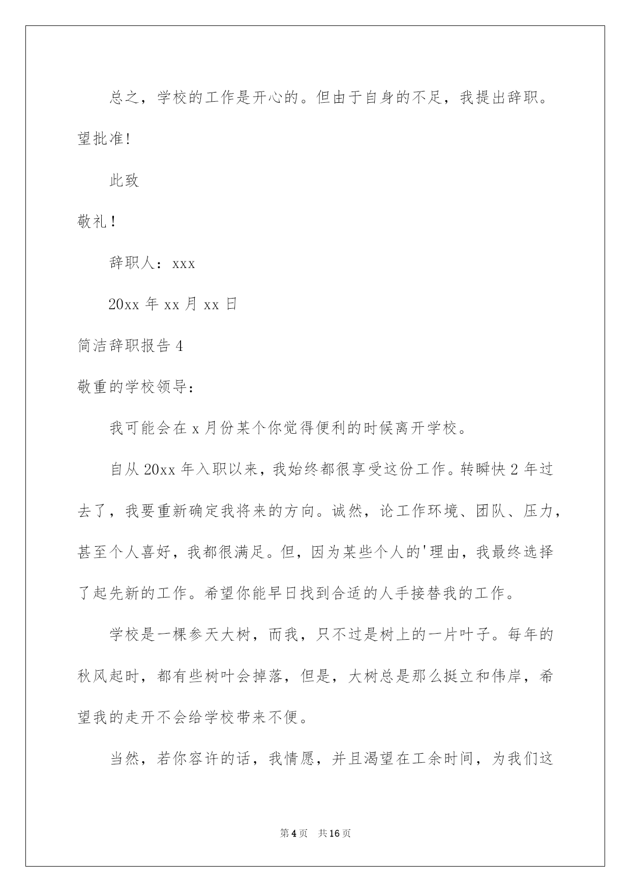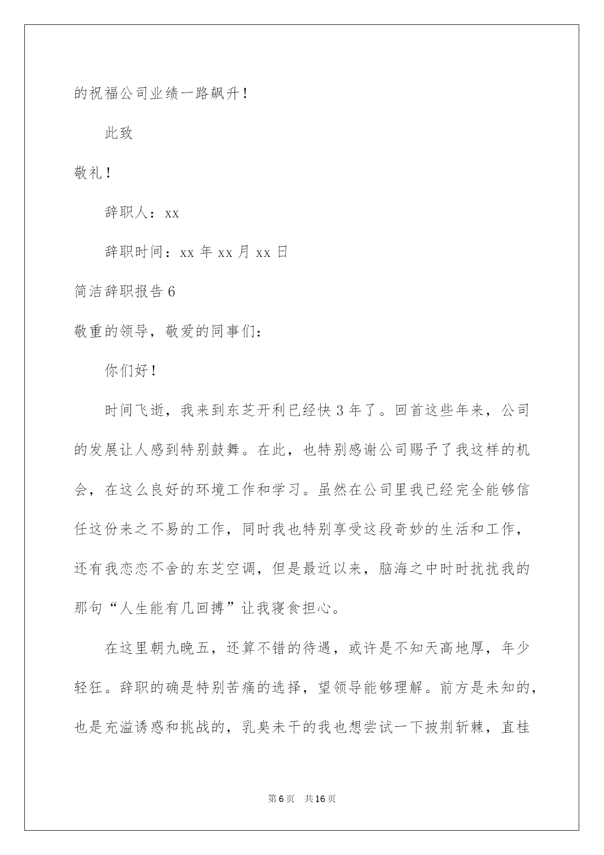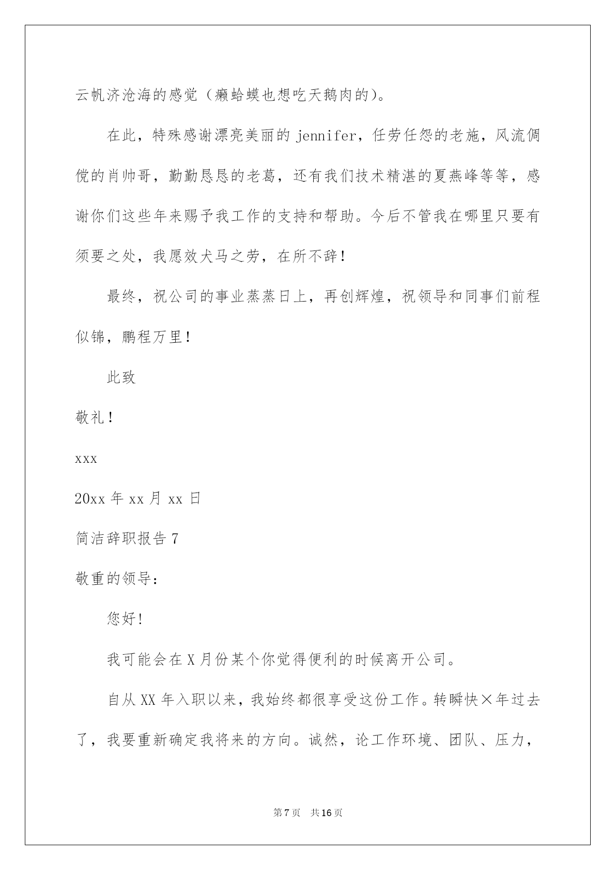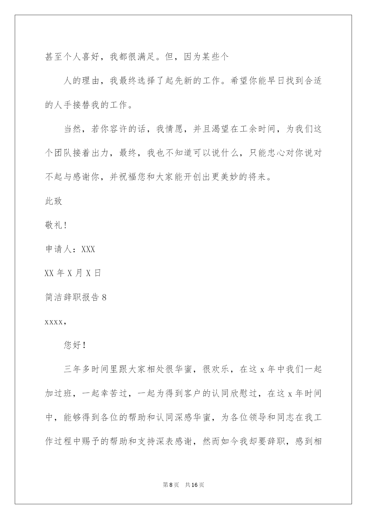 第PAGE\*Arabic\*MERGEFORMAT16页共NUMPAGES\*Arabic\*MERGEFORMAT16页第PAGE\*MERGEFORMAT16页共NUMPAGES\*MERGEFORMAT16页第PAGE\*MERGEFORMAT16页共NUMPAGES\*MERGEFORMAT16页第PAGE\*MERGEFORMAT16页共NUMPAGES\*MERGEFORMAT16页第PAGE\*MERGEFORMAT16页共NUMPAGES\*MERGEFORMAT16页第PAGE\*MERGEFORMAT16页共NUMPAGES\*MERGEFORMAT16页第PAGE\*MERGEFORMAT16页共NUMPAGES\*MERGEFORMAT16页第PAGE\*MERGEFORMAT16页共NUMPAGES\*MERGEFORMAT16页第PAGE\*MERGEFORMAT16页共NUMPAGES\*MERGEFORMAT16页第PAGE\*MERGEFORMAT16页共NUMPAGES\*MERGEFORMAT16页第PAGE\*MERGEFORMAT16页共NUMPAGES\*MERGEFORMAT16页2022简单辞职报告简洁辞职报告15篇随着个人的素养不断提高,须要运用报告的状况越来越多,报告中涉及到专业性术语要说明清晰。信任很多人会觉得报告很难写吧,下面是我为大家整理的简洁辞职报告,仅供参考,大家一起来看看吧。简洁辞职报告1敬重的xx领导:您好!我特别感谢xx公司给我的机遇和帮助!但是由于某些个人缘由,使我只能离开我酷爱的公司,所以在此提出辞职申请。在过去x年的时间里,公司教给了我许多东西,并且赐予我许多帮助和熬炼的机会,让我在这个岗位上积累了肯定的专业技能和工作阅历,同时也学学到了许多工作以外的,为人处事等道理,我很感谢公司对我的帮助,我信任这也是我一生中最难得的财宝,因为这些都为我在将来的工作和生活中带来帮助和便利。如今我将离开公司并且已受聘于另一家企业,我已考虑成熟,并且我有信念能够在新的工作岗位上充分发挥自己的专长。我希望xx公司在今后的发展旅途中步步为赢、蒸蒸日上。同时再次感谢xx公司让我曾经成为其中一员。辞职人:xxx日期:xx年xx月xx日简洁辞职报告2敬爱的××领导:我可能会在×月份某个你觉得便利的时候离开公司。自从××××年入职以来,我始终都很享受这份工作。转瞬快×年过去了,我要重新确定我将来的方向。诚然,论工作环境、团队、压力,甚至个人喜好,我都很满足。但,因为某些个人的理由,我最终选择了起先新的工作。希望你能早日找到合适的人手接替我的工作。当然,若你容许的话,我情愿,并且渴望在工余时间,为我们这个团队接着出力,最终,我也不知道可以说什么,只能忠心对你说对不起与感谢你,并祝福您和大家能开创出更美妙的将来。辞职人:xx日期:xx年9月简洁辞职报告3敬重的学校领导:我是xx,xx年学校为正式员工,现因个人缘由正式提出辞职。几年的工作使我体会到:做事先做人,正人先正己;看法确定思路,思路确定出路。可以说,学校使我完成了从社会人到公务员的角色转变,在思想、相识、技能等方面获得了提高。在这里学到的东西将使我终生受益,我要感谢这段不平凡的岁月!但是,工作中我也体会到了不足,正是这些不足使我决心要辞去职务,再学习再提高。第一,我自身身体素养不好,加上工作时间的超长和工作压力的加大以及24小时的备勤、值班,使我在身体上和精神上都感到很乏累,身体素养每况愈下,精神状态萎靡不振,所以希望能够在一个宽松的环境中使身体得到复原。这是我辞职的主要缘由。其次,工作中我发觉自己的学问还有许多欠缺,处理实际工作的技能还有许多不足,对真理和信仰的不懈追求使我希望有一个足够的时间来学习提高。这是我辞职的重要缘由。总之,学校的工作是开心的。但由于自身的不足,我提出辞职。望批准!此致敬礼!辞职人:xxx20xx年xx月xx日简洁辞职报告4敬重的学校领导:我可能会在x月份某个你觉得便利的时候离开学校。自从20xx年入职以来,我始终都很享受这份工作。转瞬快2年过去了,我要重新确定我将来的方向。诚然,论工作环境、团队、压力,甚至个人喜好,我都很满足。但,因为某些个人的'理由,我最终选择了起先新的工作。希望你能早日找到合适的人手接替我的工作。学校是一棵参天大树,而我,只不过是树上的一片叶子。每年的秋风起时,都有些树叶会掉落,但是,大树总是那么挺立和伟岸,希望我的走开不会给学校带来不便。当然,若你容许的话,我情愿,并且渴望在工余时间,为我们这个团队接着出力,最终,我也不知