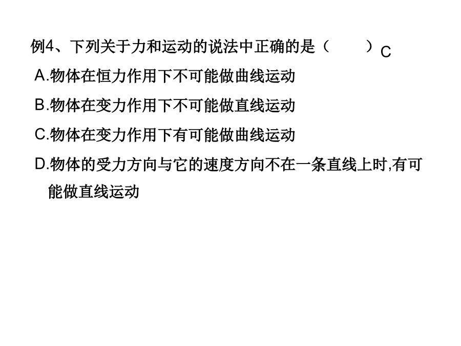 一运动的合成和分解一、曲线运动二、运动的合成与分解---研究曲线运动的方法例1:试分析以下运动的合运动的性质:(从速度、加速度、运动轨迹方面分析)①互成角度的两个匀速直线运动的合运动:;②互成角度的一个匀速直线运动和一个匀变速直线运动的合运动:;③互成角度的两个初速度为零的匀加速直线运动的合运动:;④互成角度的两个初速度不为零的匀变速直线运动的合运动:。例2、质点在一平面内沿曲线由P运动到Q,如果用v、a、F分别表示质点运动过程中的速度、加速度和受到的合外力,下图中可能正确的是()例3.关于运动的合成与分解,下列说法正确的是()①两个直线运动的合运动一定是直线运动②两个互成角度的匀速直线运动的合运动一定是直线运动③两个匀加速直线运动的合运动可能是曲线运动④两个初速度为零的匀加速直线运动互成角度,合运动一定是匀加速直线运动A.①②③B.①②④C.①③④D.②③④例4、下列关于力和运动的说法中正确的是()A.物体在恒力作用下不可能做曲线运动B.物体在变力作用下不可能做直线运动C.物体在变力作用下有可能做曲线运动D.物体的受力方向与它的速度方向不在一条直线上时,有可能做直线运动小船的两种过河方式当v船<v水时,什么情况下t最短?什么情况下s最短?在高处拉低处小船问题微元法:牵连运动问题例7:如图所示,当放在墙角的均匀直杆A端靠在竖直墙上,B端放在水平地面上,当滑到图示位置时,B点速度为v,则A点速度是.(α为已知)牛顿运动定律与运动的合成和分解结合例9:用两根跨过定滑轮的细绳对称地拉着物体使它以速度v匀速上升,则两端细绳向下拉的速度将逐渐,当细绳与水平方向成α角时绳端向下拉的速度大小为。10.如图,重物M沿竖直杆下滑,并通过绳带动小车m沿斜面升高。则:当滑轮右侧的绳与竖直方向成θ角,且重物下滑的速率为v时,小车的速度为多少?11.如图所示,将一倾角为θ=37°板状斜面体竖直固定在水平地面上,另一质量为M=4kg的“П”型物体B紧靠在斜面体上,且能在水平面上自由滑动而不会倾斜,一根质量为m=1kg的光滑细圆柱体A放在B的竖直面和斜面之间。现用水平外力F0推动B使其以加速度a=4m/s2水平向右做匀加速直线运动,同时B推动A沿斜面向斜向上运动。不计所有摩擦,g=10m/s2。(sin37°=0.6,cos37°=0.8)试求:(1)圆柱体A的加速度;(2)B物体对A的推力F的大小和水平外力F0的大小。