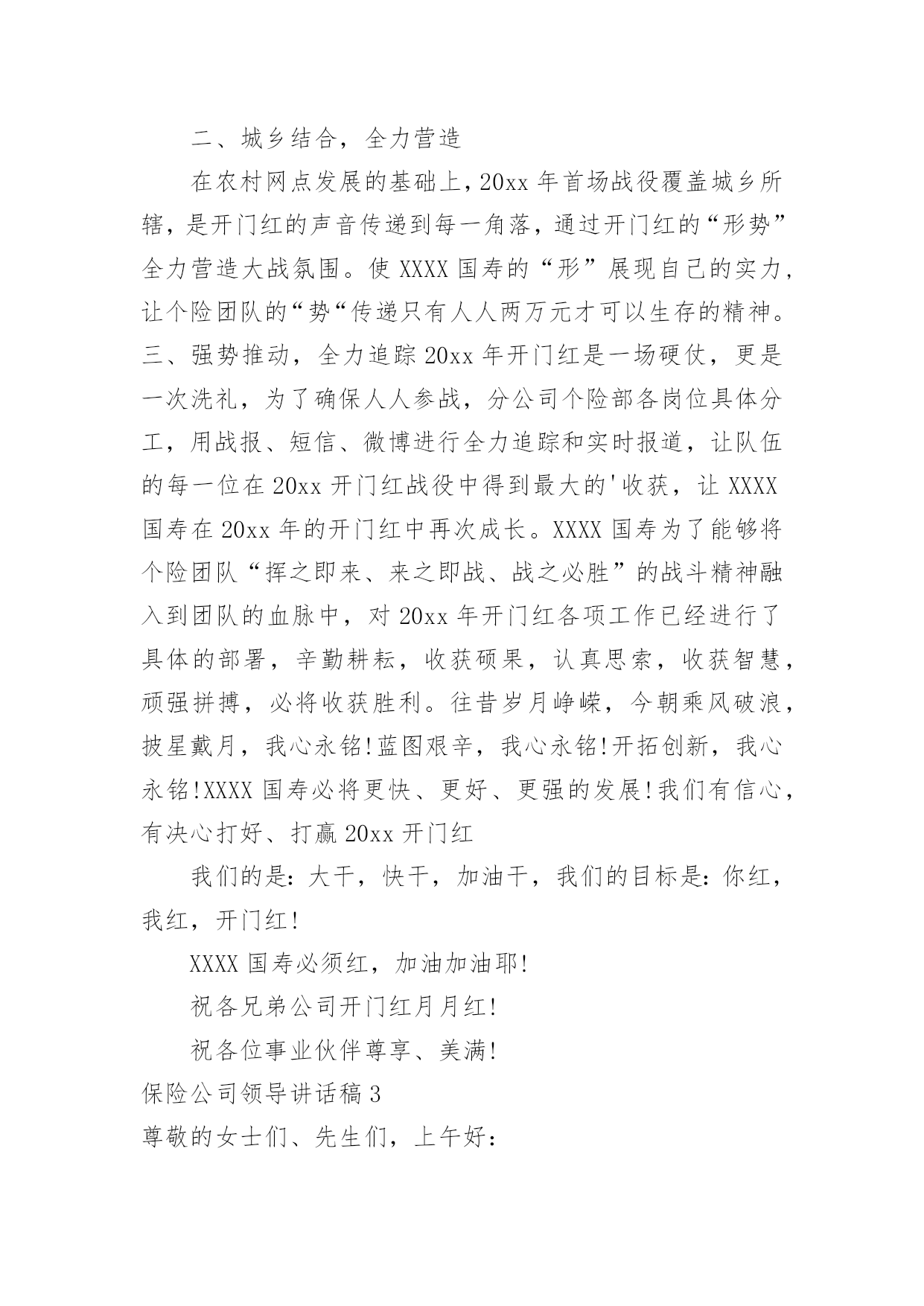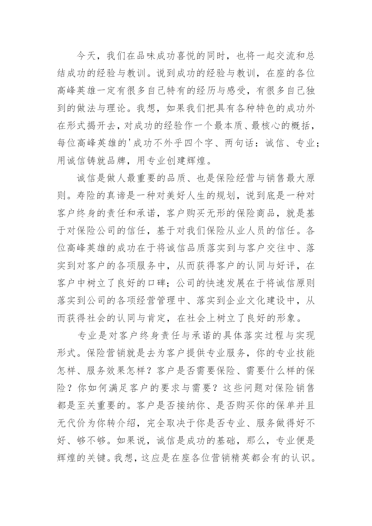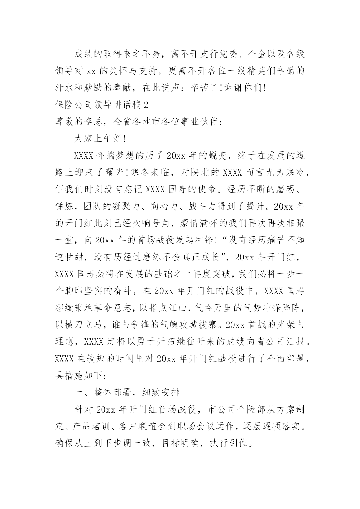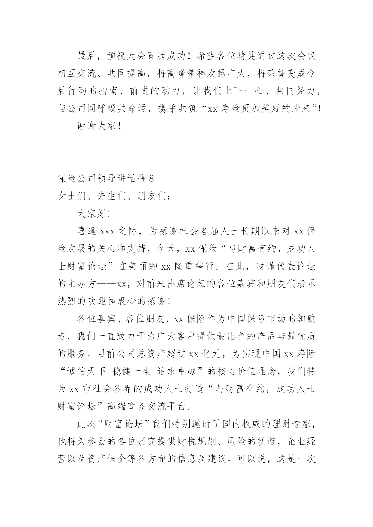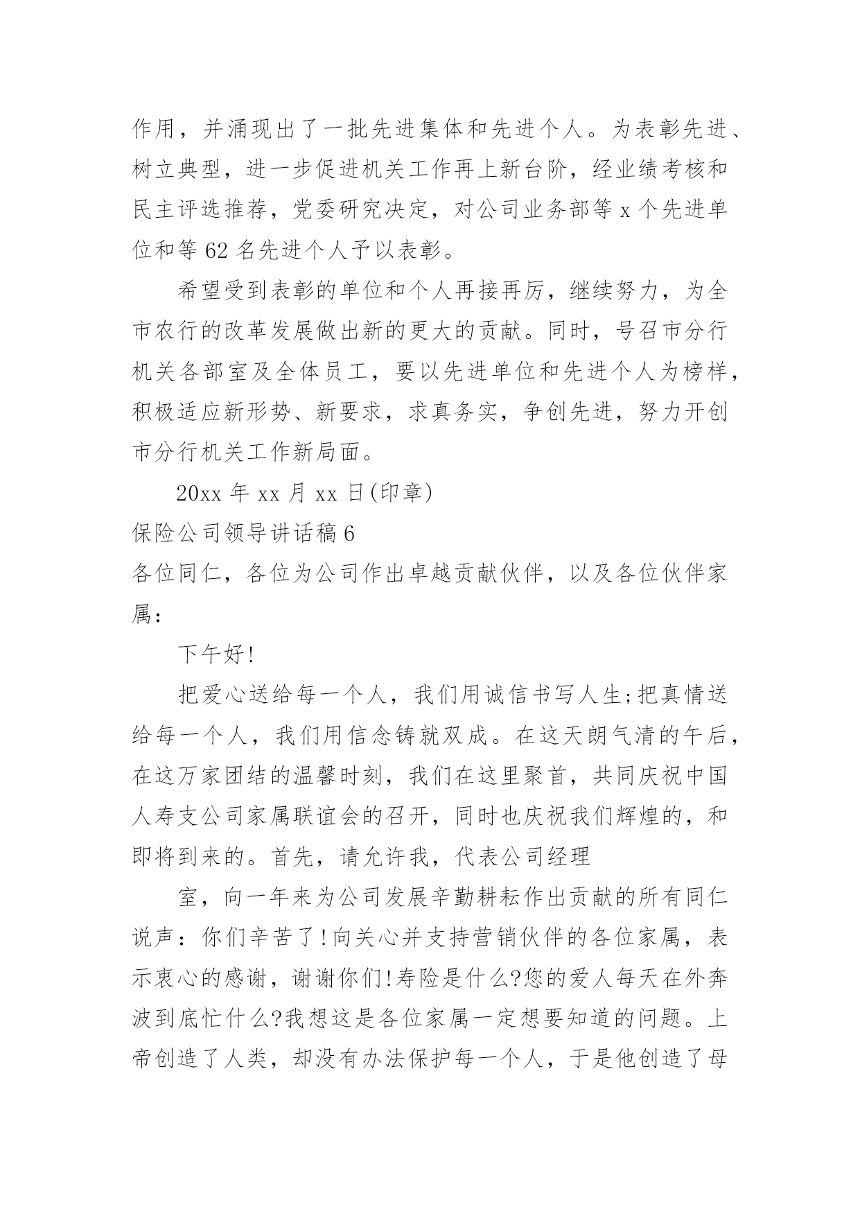 保险公司领导讲话稿(优秀)保险公司领导讲话稿15篇在充满活力,日益开放的今天,各种讲话稿频频出现,讲话稿通过讲话人口头表达后,可以起到传播真理、经验,抒发感情,发表意见的作用。你所见过的讲话稿是什么样的呢?下面是小编整理的保险公司领导讲话稿,仅供参考,欢迎大家阅读。保险公司领导讲话稿1尊敬的x行、各位领导、各位嘉宾:大家好!时光飞逝,寒来暑往,20xx年就要划上句号,xx的20xx年即将扣响春天的大门。今晚,我们隆重集会在这金碧辉煌的钻石大厅,共同庆祝x年的收获,续写x年的辉煌!过去的一年,是辛苦的一年,是战斗的一年,也是收获的一年,在此感谢百年中行,感谢xx支行,感谢在座的各位朋友多年来对xx人寿xx分公司的大力支持和厚爱;在20xx年取得大好成绩的基础上,20xx年再创佳绩,本年实际预收累计保费x亿元,xx地区排名第一。其中业绩突破千万网点有xx支行、营业部、cd、xc、sw等网点;业绩特别优秀的,全年达xx万以上的销售精英有qre、sdf、qwe、cde、taf、was、gds、sda等等。在此,请允许我借大家友爱的`双手,用雷鸣般的掌声表示热烈的祝贺和衷心的感谢!成绩的取得来之不易,离不开支行党委、个金以及各级领导对xx的关怀与支持,更离不开各位一线精英们辛勤的汗水和默默的奉献,在此说声:辛苦了!谢谢你们!保险公司领导讲话稿2尊敬的李总,全省各地市各位事业伙伴:大家上午好!XXXX怀揣梦想的历了20xx年的蜕变,终于在发展的道路上迎来了曙光!寒冬来临,对陕北的XXXX而言尤为寒冷,但我们时刻没有忘记XXXX国寿的使命。经历不断的磨砺、锤炼,团队的凝聚力、向心力、战斗力得到了提升。20xx年的开门红此刻已经吹响号角,豪情满怀的我们再次再次相聚一堂,向20xx年的首场战役发起冲锋!“没有经历痛苦不知道甘甜,没有历经过磨练不会真正成长”,20xx年开门红,XXXX国寿必将在发展的基础之上再度突破,我们必将一步一个脚印坚实的奋斗,在20xx年开门红的战役中,XXXX国寿继续秉承革命意志,以指点江山,气吞万里的气势冲锋陷阵,以横刀立马,谁与争锋的气魄攻城拔寨。20xx首战的光荣与理想,XXXX定将以勇于开拓继往开来的成绩向省公司汇报。XXXX在较短的时间里对20xx年开门红战役进行了全面部署,具措施如下:一、整体部署,细致安排针对20xx年开门红首场战役,市公司个险部从方案制定、产品培训、客户联谊会到职场会议运作,逐层逐项落实。确保从上到下步调一致,目标明确,执行到位。二、城乡结合,全力营造在农村网点发展的基础上,20xx年首场战役覆盖城乡所辖,是开门红的声音传递到每一角落,通过开门红的“形势”全力营造大战氛围。使XXXX国寿的“形”展现自己的实力,让个险团队的“势“传递只有人人两万元才可以生存的精神。三、强势推动,全力追踪20xx年开门红是一场硬仗,更是一次洗礼,为了确保人人参战,分公司个险部各岗位具体分工,用战报、短信、微博进行全力追踪和实时报道,让队伍的每一位在20xx开门红战役中得到最大的'收获,让XXXX国寿在20xx年的开门红中再次成长。XXXX国寿为了能够将个险团队“挥之即来、来之即战、战之必胜”的战斗精神融入到团队的血脉中,对20xx年开门红各项工作已经进行了具体的部署,辛勤耕耘,收获硕果,认真思索,收获智慧,顽强拼搏,必将收获胜利。往昔岁月峥嵘,今朝乘风破浪,披星戴月,我心永铭!蓝图艰辛,我心永铭!开拓创新,我心永铭!XXXX国寿必将更快、更好、更强的发展!我们有信心,有决心打好、打赢20xx开门红我们的是:大干,快干,加油干,我们的目标是:你红,我红,开门红!XXXX国寿必须红,加油加油耶!祝各兄弟公司开门红月月红!祝各位事业伙伴尊享、美满!保险公司领导讲话稿3尊敬的女士们、先生们,上午好:今天,在这里隆重举行中国人寿***支公司乔迁庆典,我谨代表**市人民政府向中国人寿保险股份有限公司**支公司表示热烈的祝贺,向各位的莅临表示衷心的感谢!希望中国人寿**支公司以乔迁新址为契机,以更新的形象、更高的起点,积极抢抓**加快发展的机遇,依法经营,强化管理,奋勇拼搏,开拓创新,努力为各企事业单位和广大市民提供最新最好的寿险产品和优质的寿险服务,与**经济建设和社会保障体系完善共同成长,为加快**经济建设、全面迈向小康社会做出更加积极的.贡献。**市政府一直以来非常重视养老保险和社会保障工作。目前,**市寿险在全省走在了前列,这与中国人寿**支公司大力支持是分不开的。**市政府将一如既往支持中国人寿**支公司在**各项业务的开展。最后,祝各位身体健康、工作顺利!祝中国人寿生意兴隆,财源广进!谢谢大家!保险公司领导讲话稿4各位同仁,各位为公司作出卓越贡献伙伴,以及各位伙伴家属:下午好!新春愈新,大地祥和呈美景。伴随