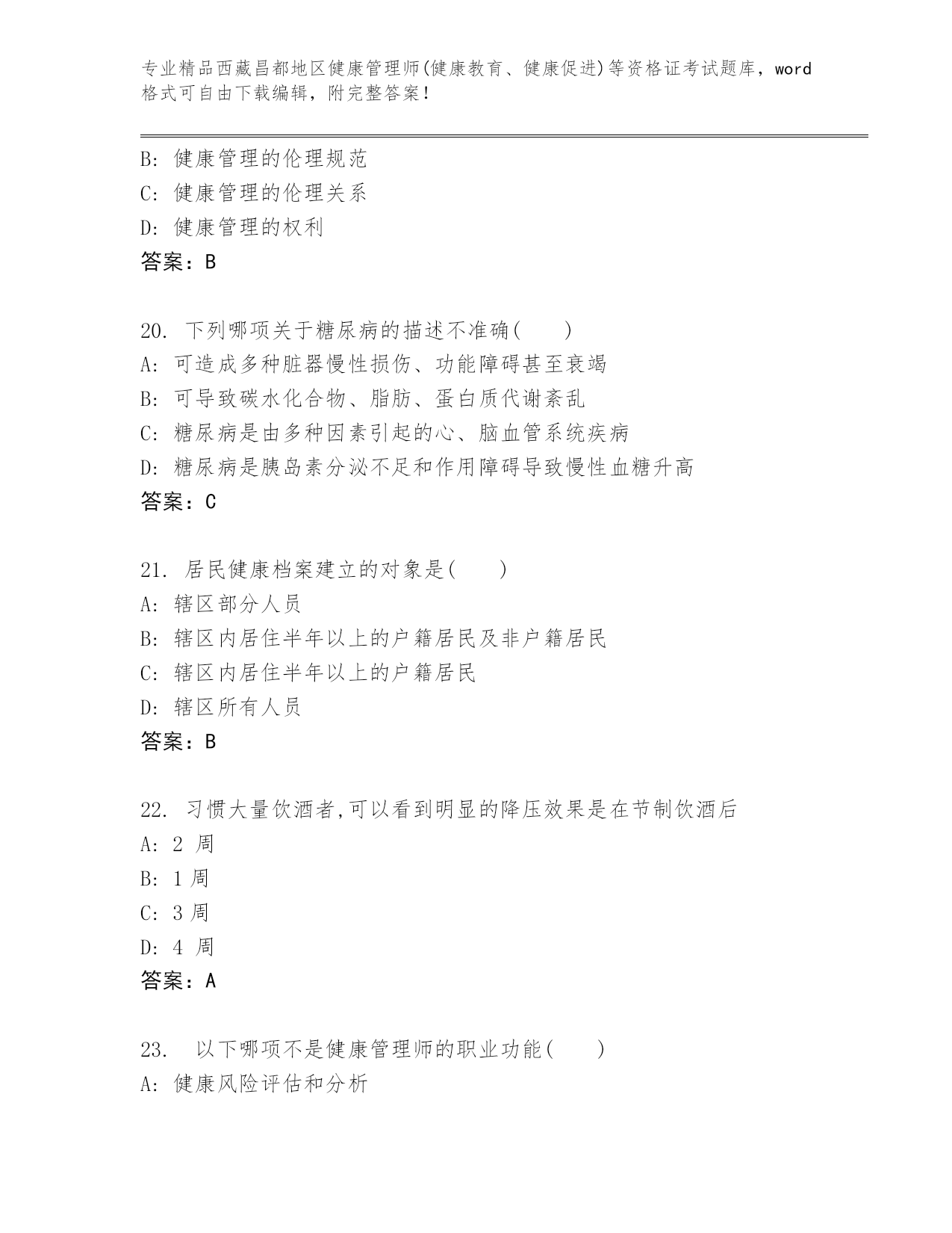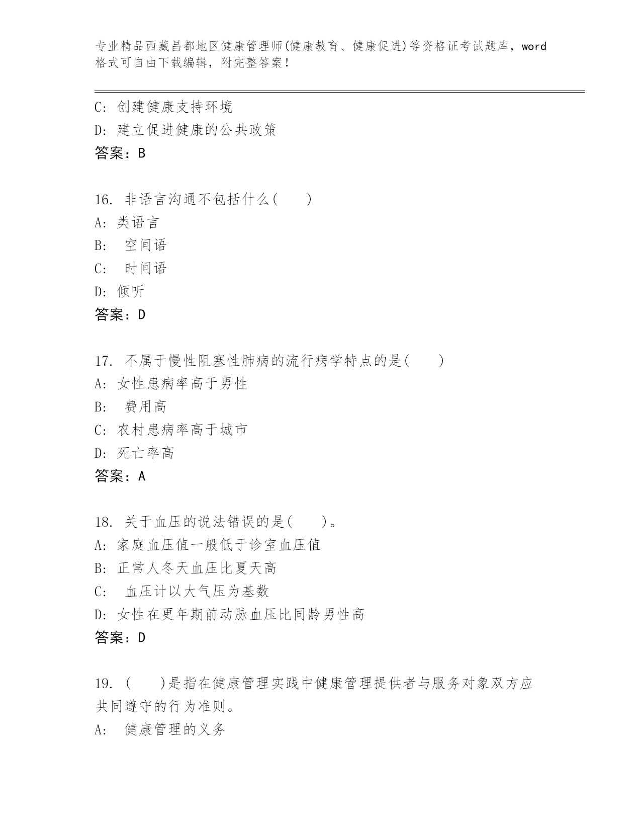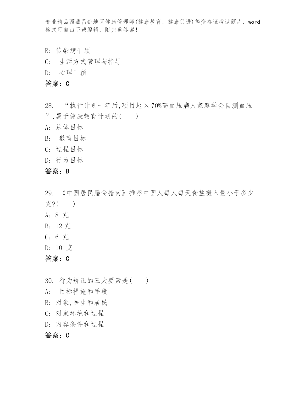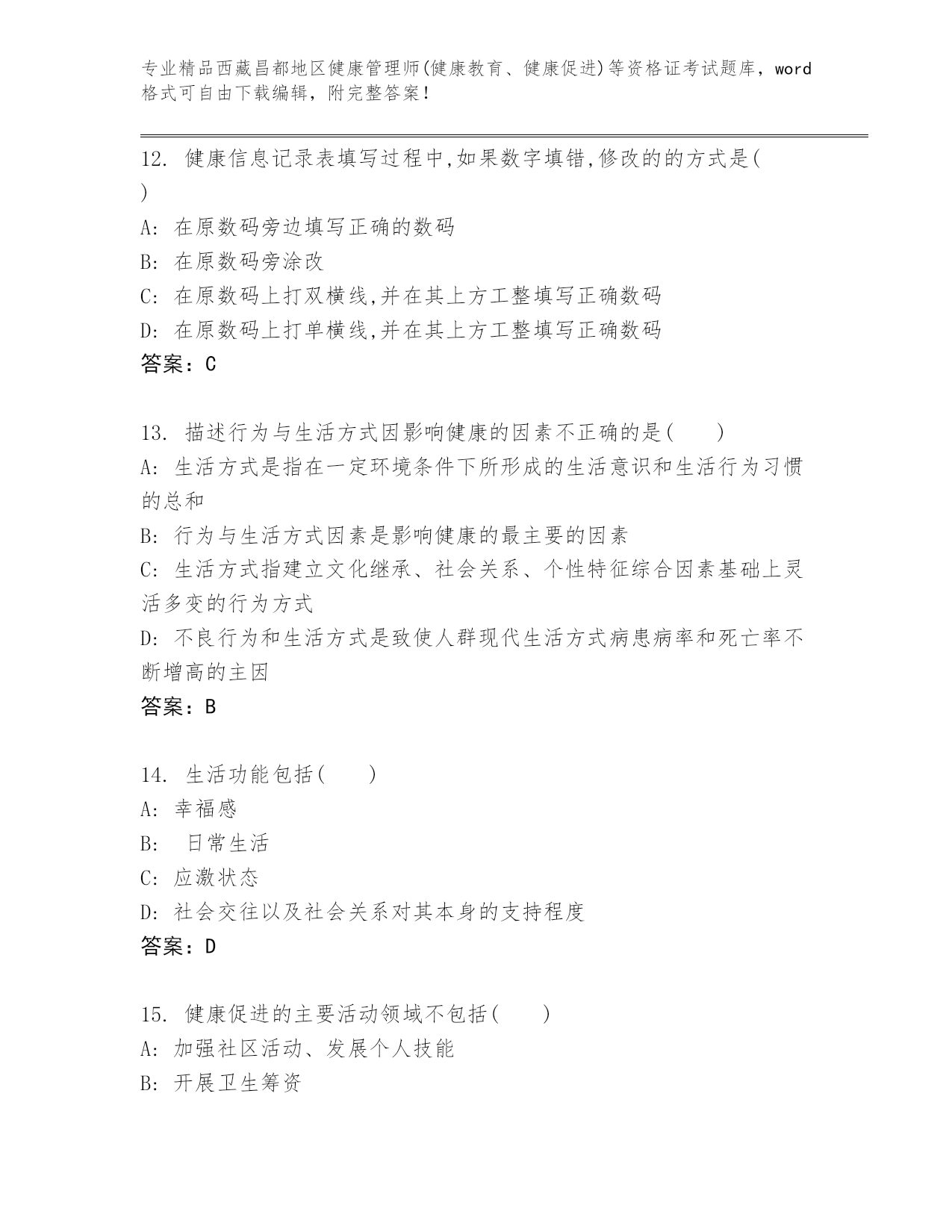 完整版西藏昌都地区健康管理师(健康教育、健康促进)等资格证考试(名校卷)