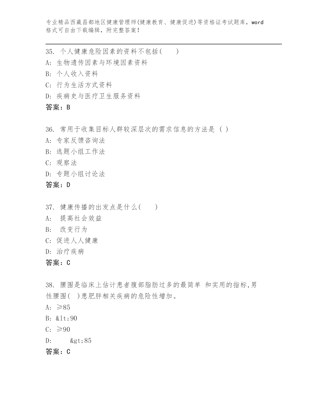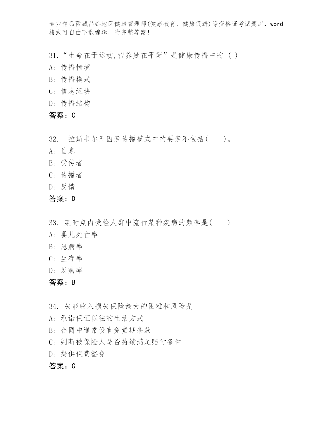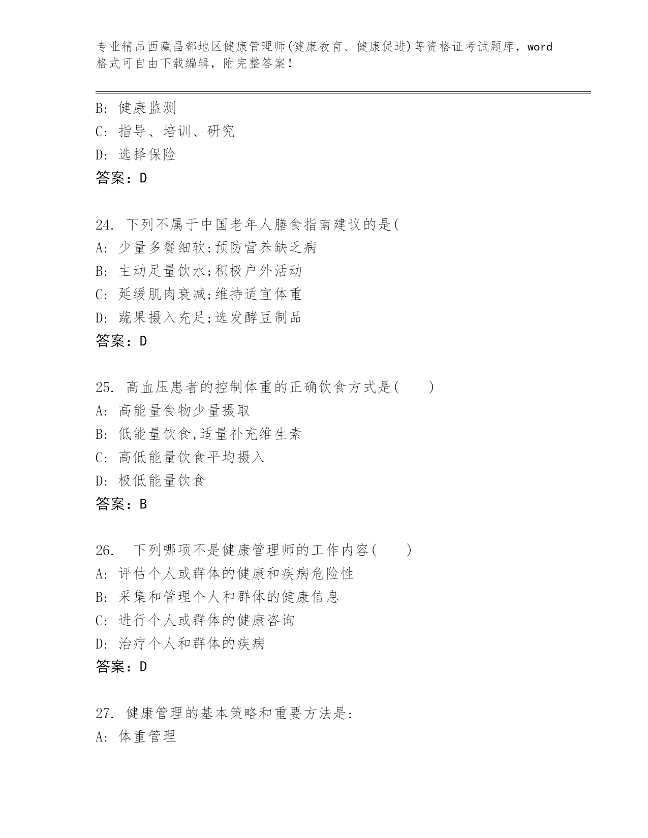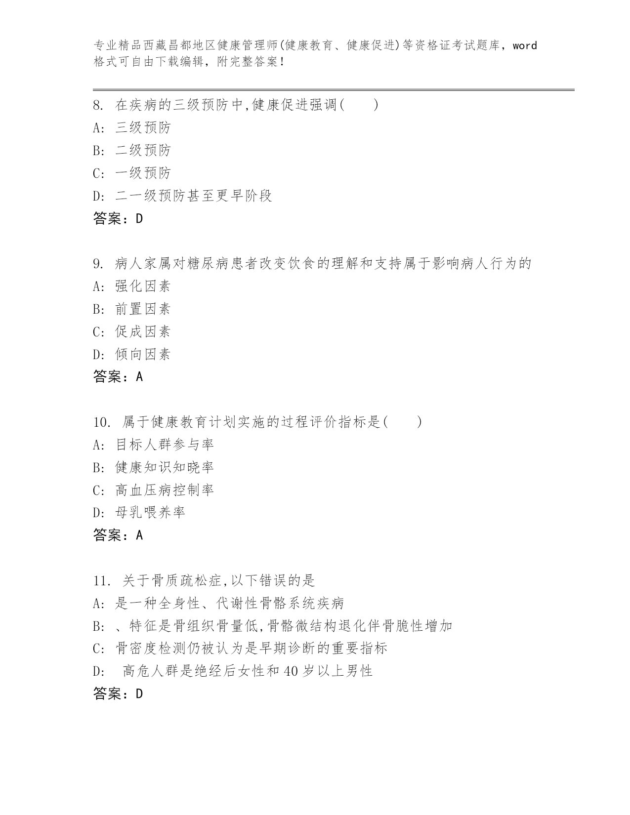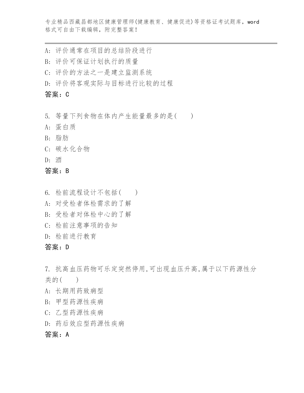 完整版西藏昌都地区健康管理师(健康教育、健康促进)等资格证考试(名校卷)