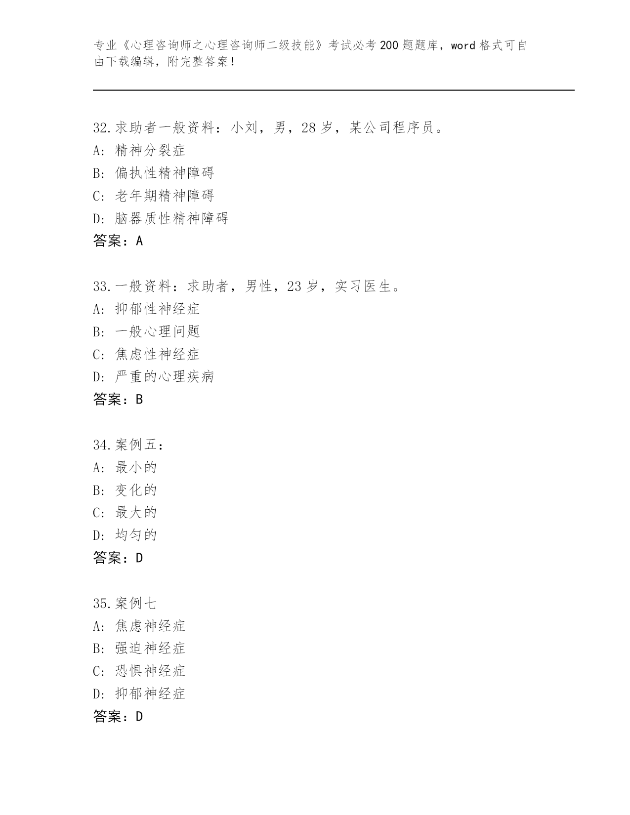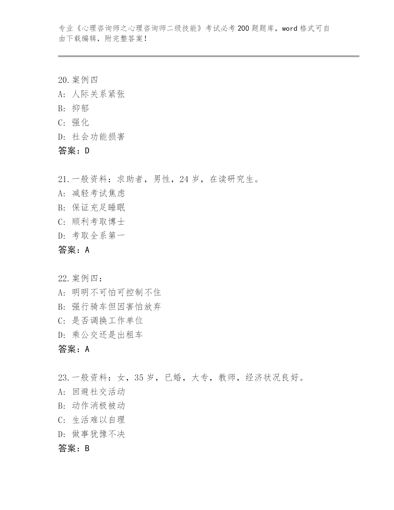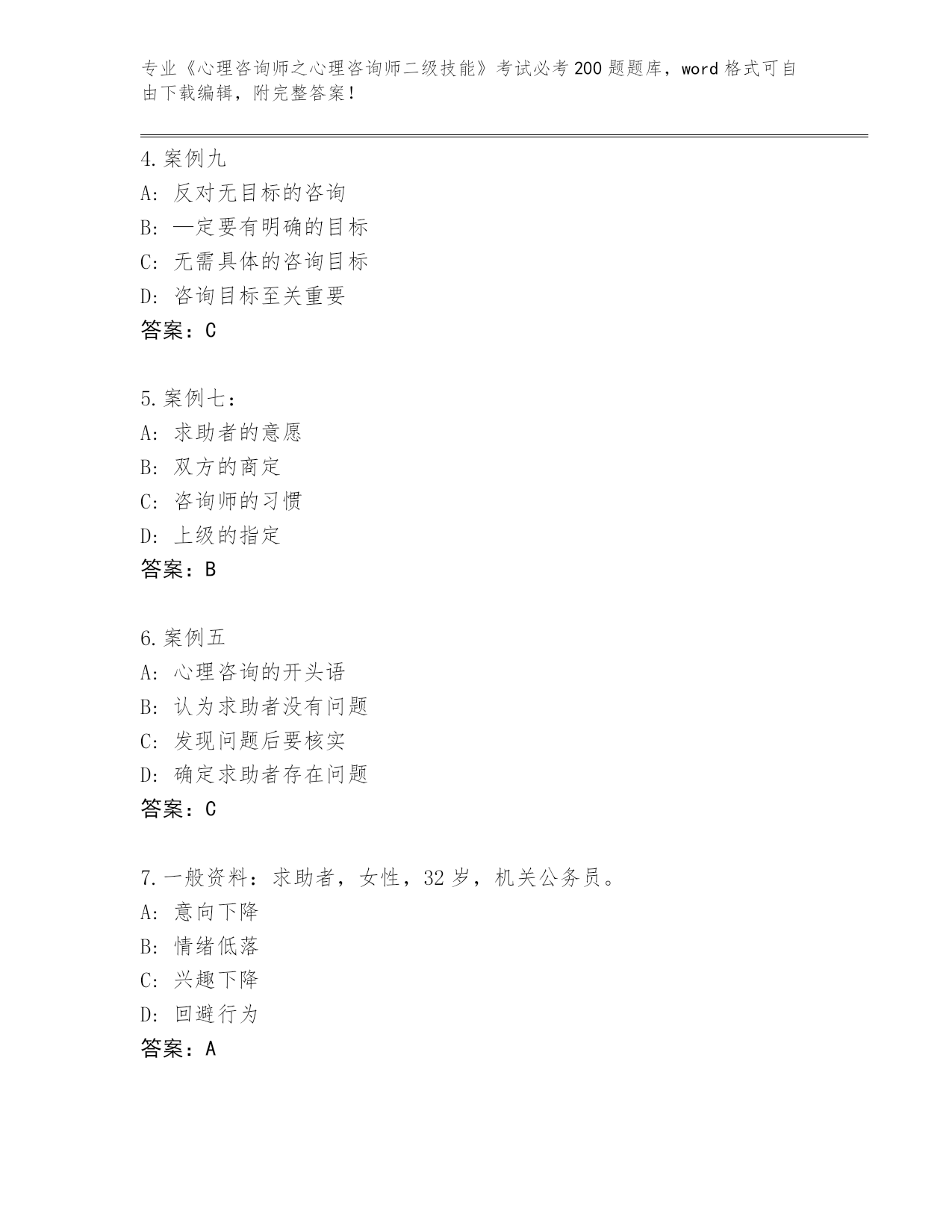 2024湖北省安陆市《心理咨询师之心理咨询师二级技能》考试必考200题题库往年题考