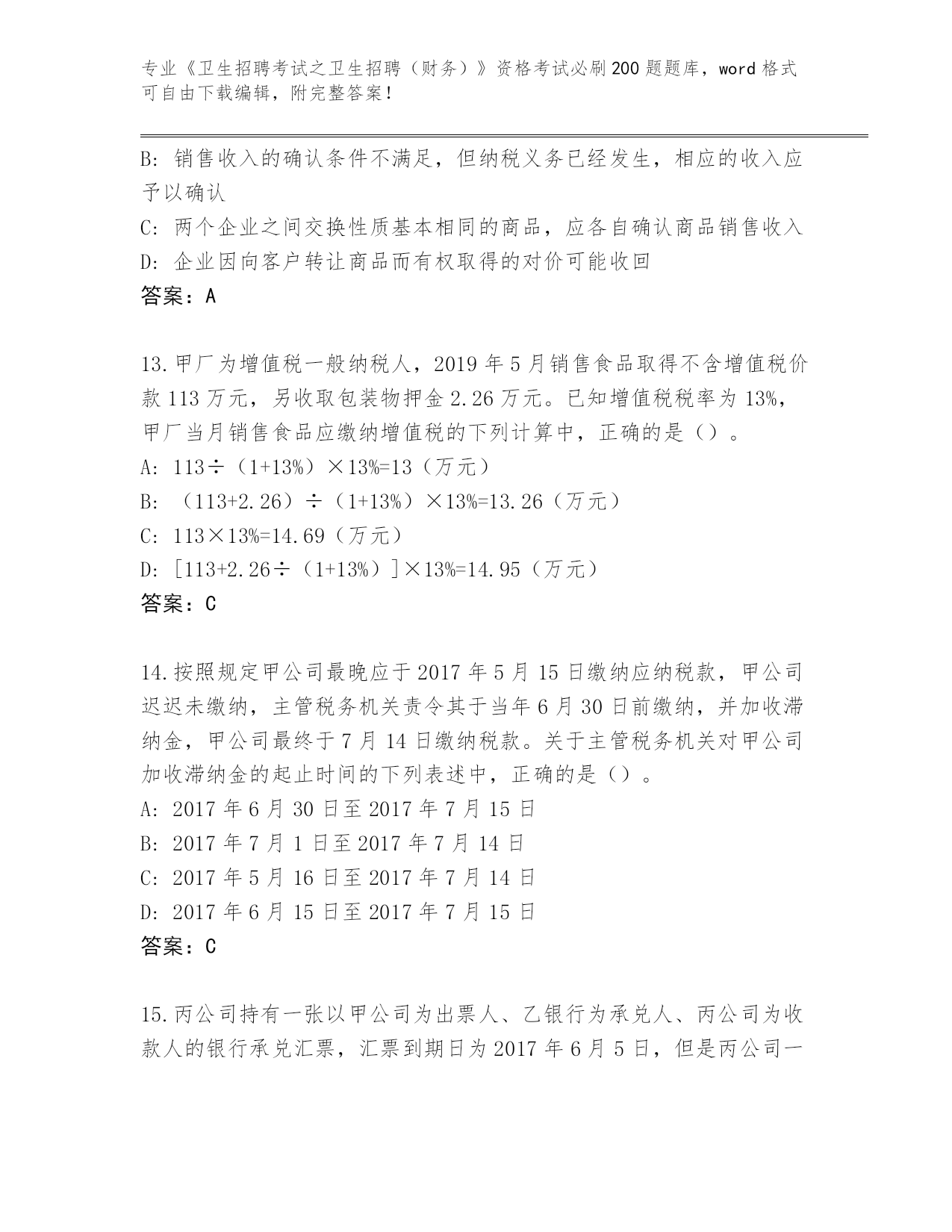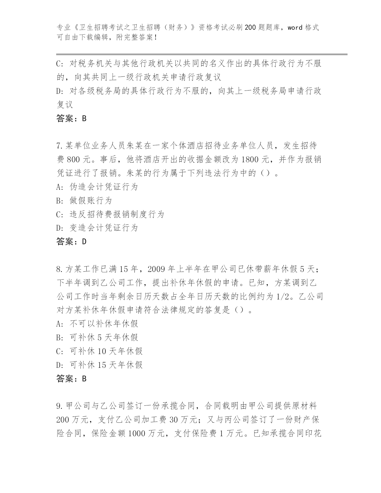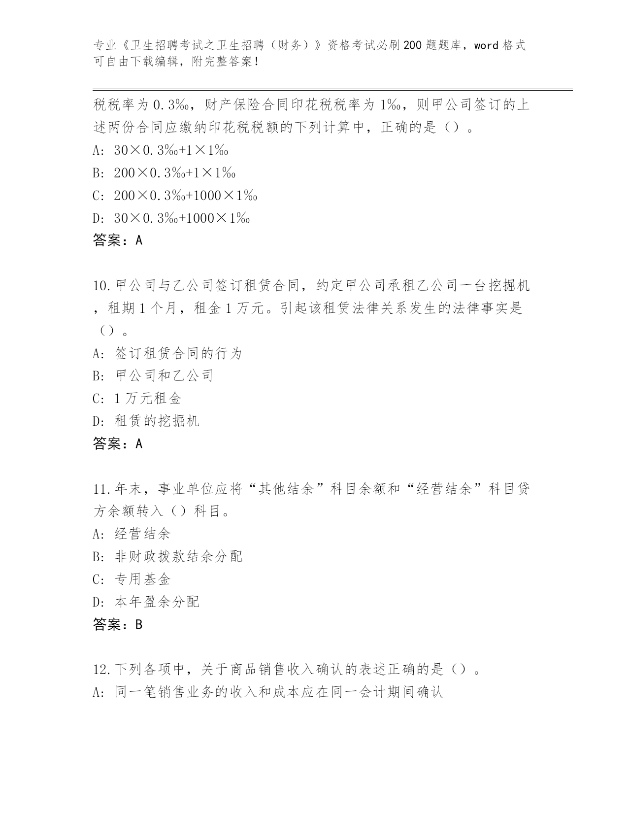 整理甘肃省《卫生招聘考试之卫生招聘(财务)》资格考试必刷200题真题题库及答案()