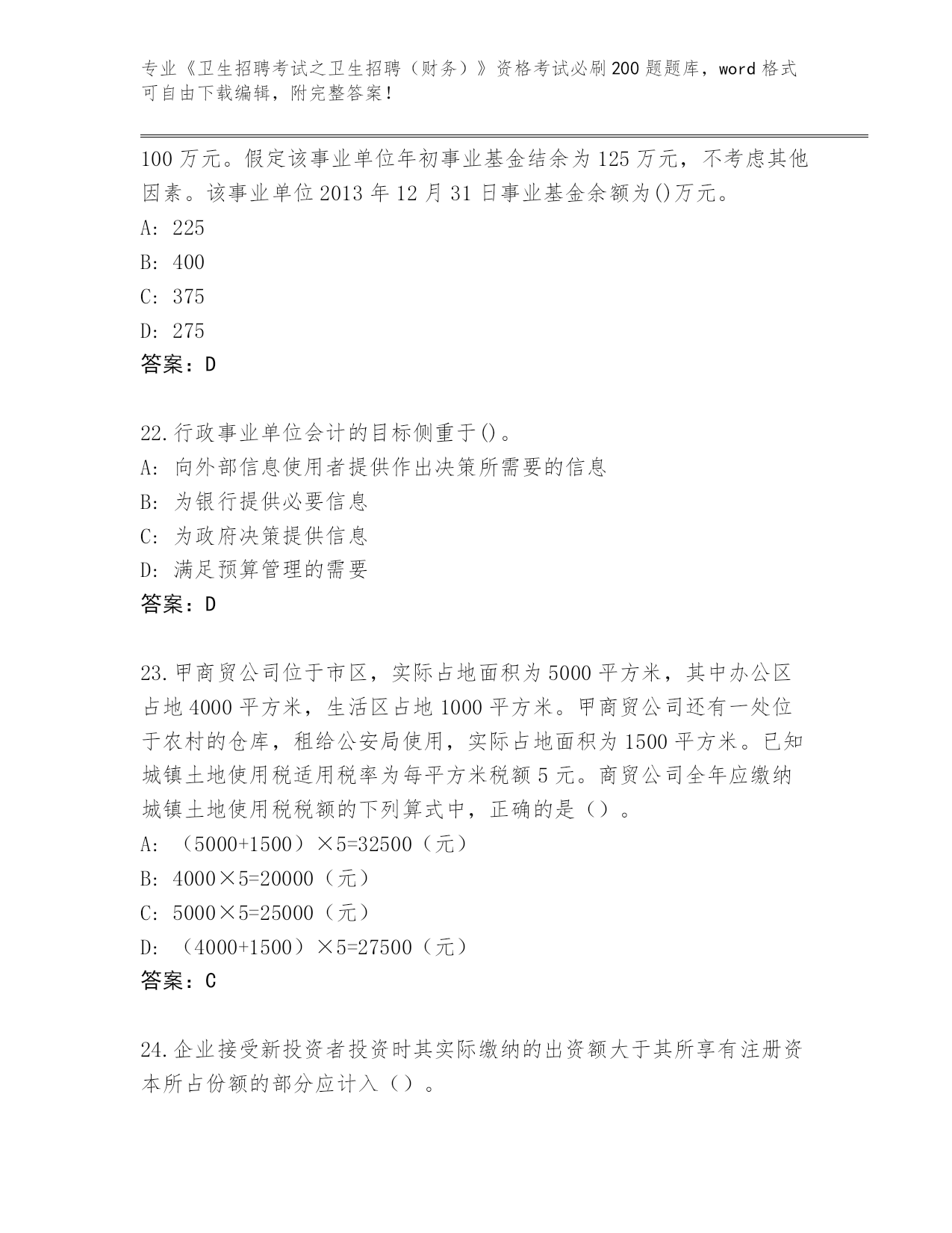 甘肃省武都区2024年《卫生招聘考试之卫生招聘(财务)》考试必刷200题大全附答案(夺分金卷)