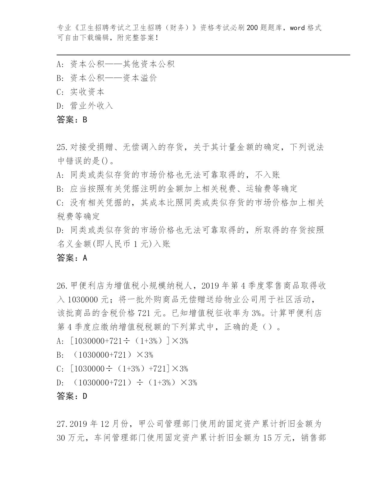 甘肃省武都区整理《卫生招聘考试之卫生招聘(财务)》考试必刷200题带答案(能力提升)