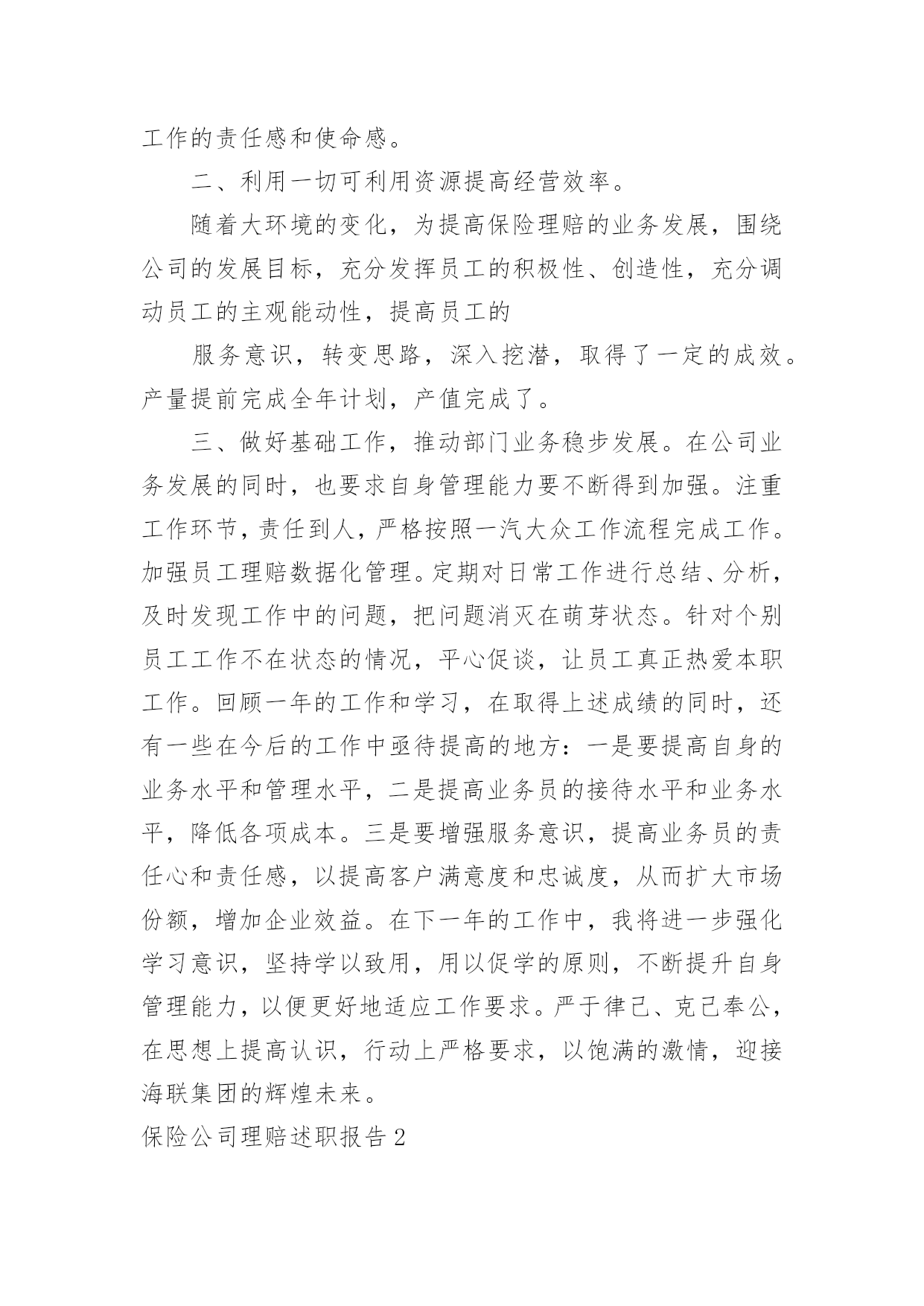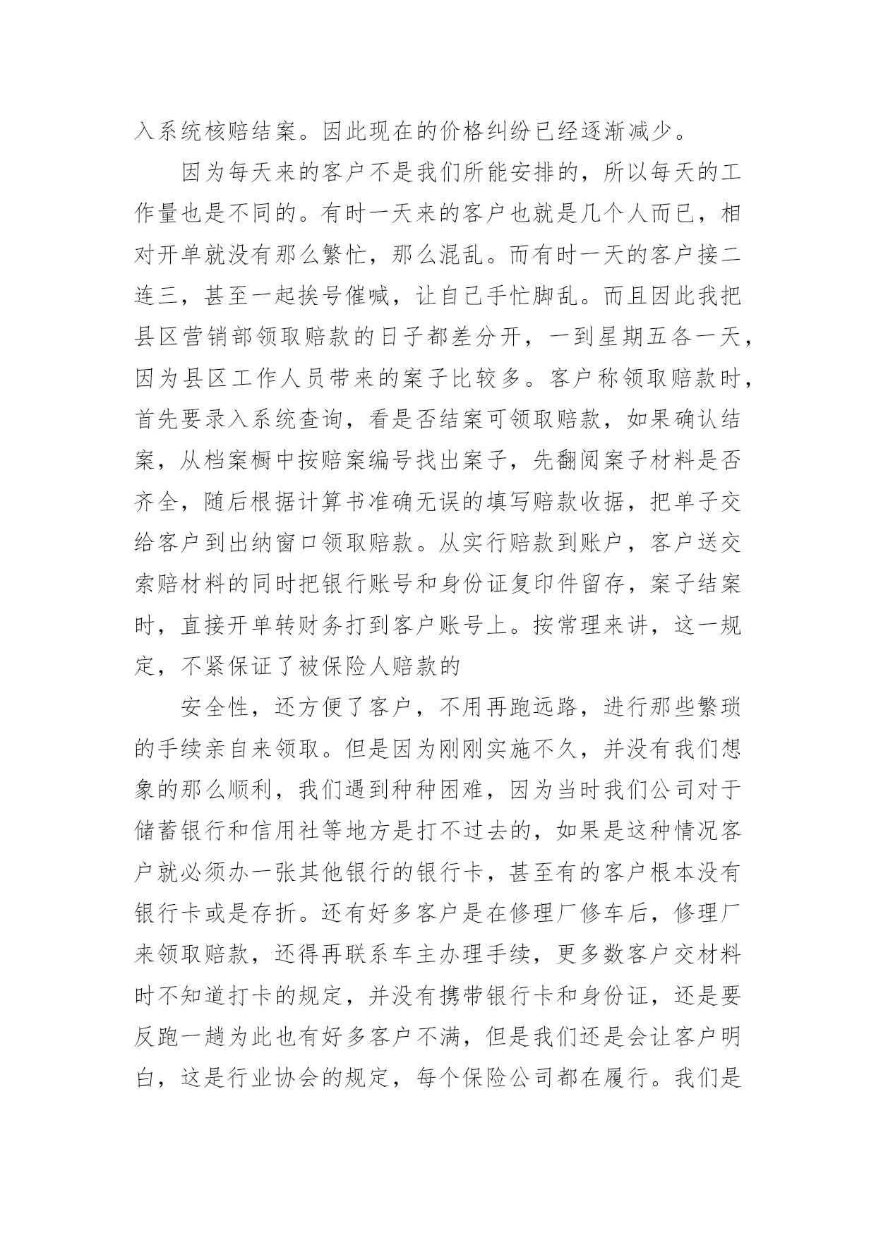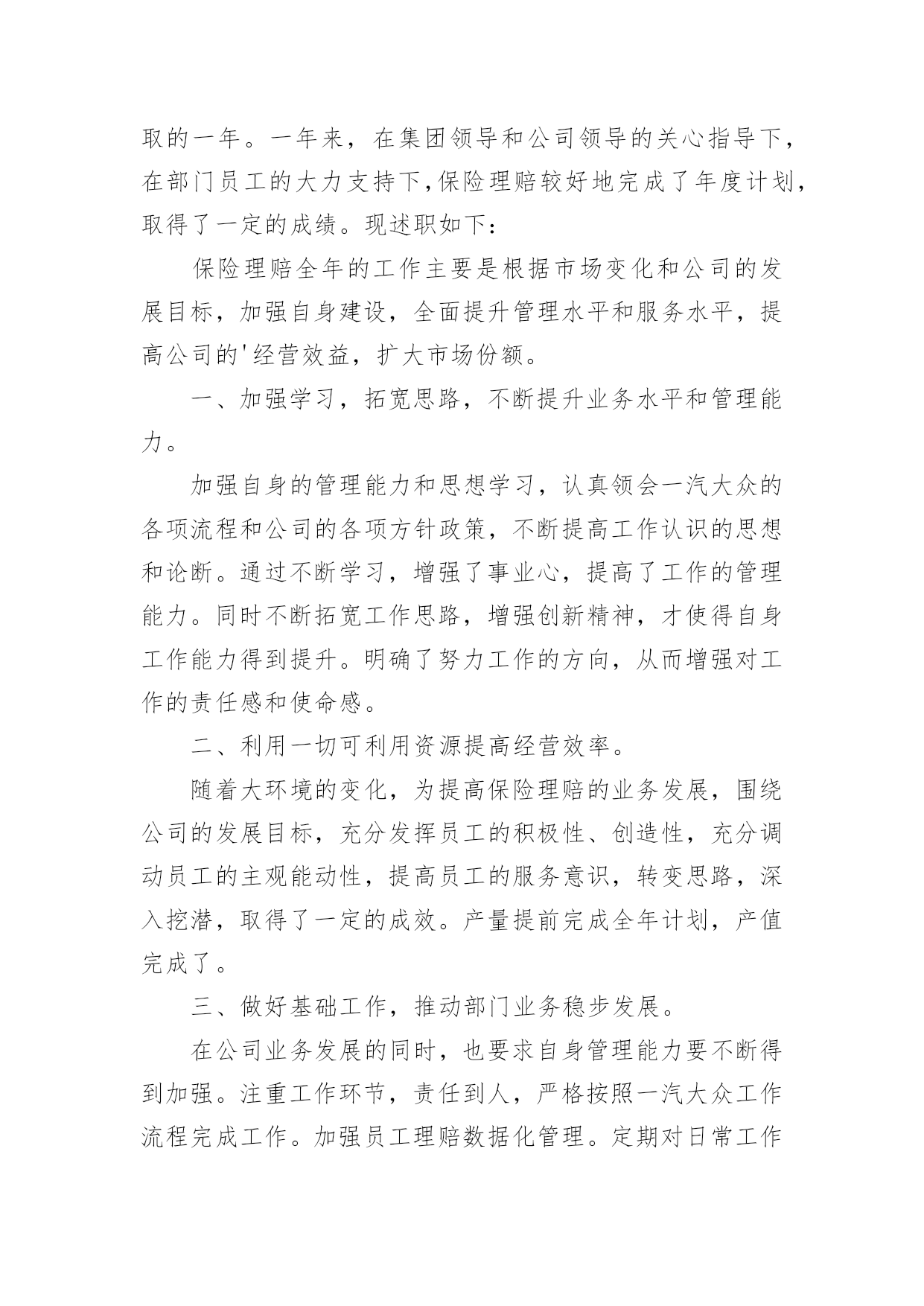 保险公司理赔述职报告保险公司理赔述职报告在人们越来越注重自身素养的今天,报告的用途越来越大,报告成为了一种新兴产业。其实写报告并没有想象中那么难,以下是小编为大家整理的保险公司理赔述职报告,仅供参考,希望能够帮助到大家。保险公司理赔述职报告1保险理赔述职报告20xx年是海联集团的元年,也是海联集团立足创新,开拓进取的一年。一年来,在集团领导和公司领导的关心指导下,在部门员工的大力支持下,保险理赔较好地完成了年度计划,取得了一定的成绩。现述职如下:保险理赔全年的工作主要是根据市场变化和公司的发展目标,加强自身建设,全面提升管理水平和服务水平,提高公司的经营效益,扩大市场份额。一、加强学习,拓宽思路,不断提升业务水平和管理能力。加强自身的管理能力和思想学习,认真领会一汽大众的各项流程和公司的各项方针政策,不断提高工作认识的.思想和论断。通过不断学习,增强了事业心,提高了工作的管理能力。同时不断拓宽工作思路,增强创新精神,才使得自身工作能力得到提升。明确了努力工作的方向,从而增强对工作的责任感和使命感。二、利用一切可利用资源提高经营效率。随着大环境的变化,为提高保险理赔的业务发展,围绕公司的发展目标,充分发挥员工的积极性、创造性,充分调动员工的主观能动性,提高员工的服务意识,转变思路,深入挖潜,取得了一定的成效。产量提前完成全年计划,产值完成了。三、做好基础工作,推动部门业务稳步发展。在公司业务发展的同时,也要求自身管理能力要不断得到加强。注重工作环节,责任到人,严格按照一汽大众工作流程完成工作。加强员工理赔数据化管理。定期对日常工作进行总结、分析,及时发现工作中的问题,把问题消灭在萌芽状态。针对个别员工工作不在状态的情况,平心促谈,让员工真正热爱本职工作。回顾一年的工作和学习,在取得上述成绩的同时,还有一些在今后的工作中亟待提高的地方:一是要提高自身的业务水平和管理水平,二是提高业务员的接待水平和业务水平,降低各项成本。三是要增强服务意识,提高业务员的责任心和责任感,以提高客户满意度和忠诚度,从而扩大市场份额,增加企业效益。在下一年的工作中,我将进一步强化学习意识,坚持学以致用,用以促学的原则,不断提升自身管理能力,以便更好地适应工作要求。严于律己、克己奉公,在思想上提高认识,行动上严格要求,以饱满的激情,迎接海联集团的辉煌未来。保险公司理赔述职报告2尊敬的领导:你们好!时间过的好快,转眼间一年的时间又要过去了,真是时不我待。一年中的点点滴滴,让我回味无穷,有喜有悲,有成功的喜悦,有失败时的泪水,让我的工作不曾乏味。又是一年的学习、工作。时间并不算太长,但我得到大家的帮助实在是太多,相比之下自己所付出的实在太少,深感汗颜。现在我将本年度的工作情况述职如下,请予评议。赔款善治岗位是一个工作非常较为繁琐的岗位。它在理赔的整个流程上算是最后一道关口。没有未决岗的紧张,也没有理算组的精算,但是这是一项非常需要耐心和细心的工作岗位。对于我的工作,我有得有失,做的并不够完善。从客户出现报案后,现场查勘完毕,客户交起索赔材料,定损后录入新系统,转到核价岗,做完理算,领导审批签字,方可打电话通知客户领取赔款。每天的结案数据都会以电子表格做成结案日报表发给总经理室。截止11月份,已结6438已决赔案。通知客户需要大量时间,在告诉客户一共赔付多少的情况下,多数都需要讲清楚具体的赔偿项目,告知需要哪些手续,还缺少什么材料。因为每一个案件不同,每一个客户也不同,不同意赔付价格的客户不在少数,客户的'庞然大怒和不理解是常有之事,只能耐心的一一向客户解释和客户做好沟通,避免不必要的麻烦,解决不了得问题也会存在,只能安抚客户情绪,等客户来后在领导同事的帮助下再做协调工作。就这样,客户同意每一个案子价格之后,在录入系统核赔结案。因此现在的价格纠纷已经逐渐减少。因为每天来的客户不是我们所能安排的,所以每天的工作量也是不同的。有时一天来的客户也就是几个人而已,相对开单就没有那么繁忙,那么混乱。而有时一天的客户接二连三,甚至一起挨号催喊,让自己手忙脚乱。而且因此我把县区营销部领取赔款的日子都差分开,一到星期五各一天,因为县区工作人员带来的案子比较多。客户称领取赔款时,首先要录入系统查询,看是否结案可领取赔款,如果确认结案,从档案橱中按赔案编号找出案子,先翻阅案子材料是否齐全,随后根据计算书准确无误的填写赔款收据,把单子交给客户到出纳窗口领取赔款。从实行赔款到账户,客户送交索赔材料的同时把银行账号和身份证复印件留存,案子结案时,直接开单转财务打到客户账号上。按常理来讲,这一规定,不紧保证了被保险人赔款的安全性,还方便了客户,不用再跑远路,进行那些繁琐的手续亲自来领取。但是因为刚刚实施不久,并没有我们想象的那么顺利,我们遇到种种困难,因为当时我们公司对于储蓄银行和信用