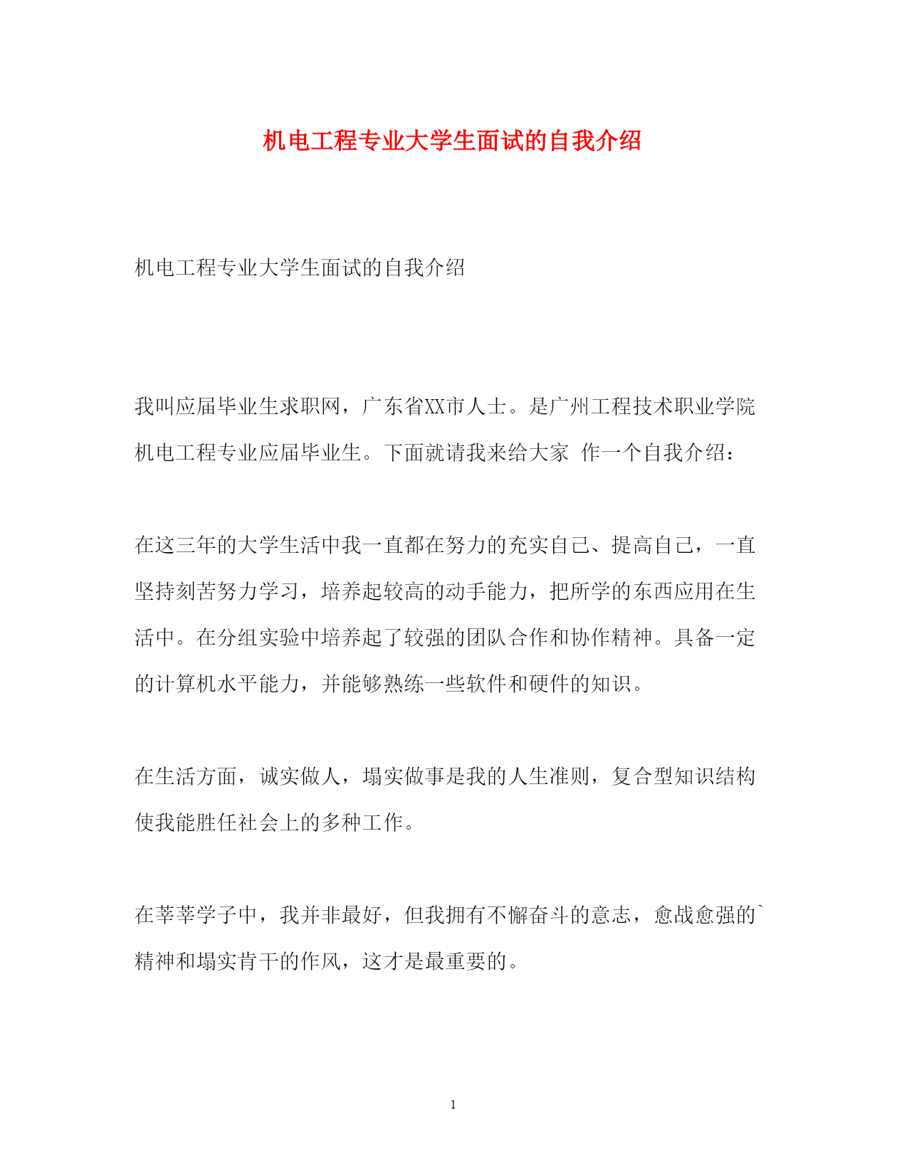 2022机电工程专业大学生面试的自我介绍
