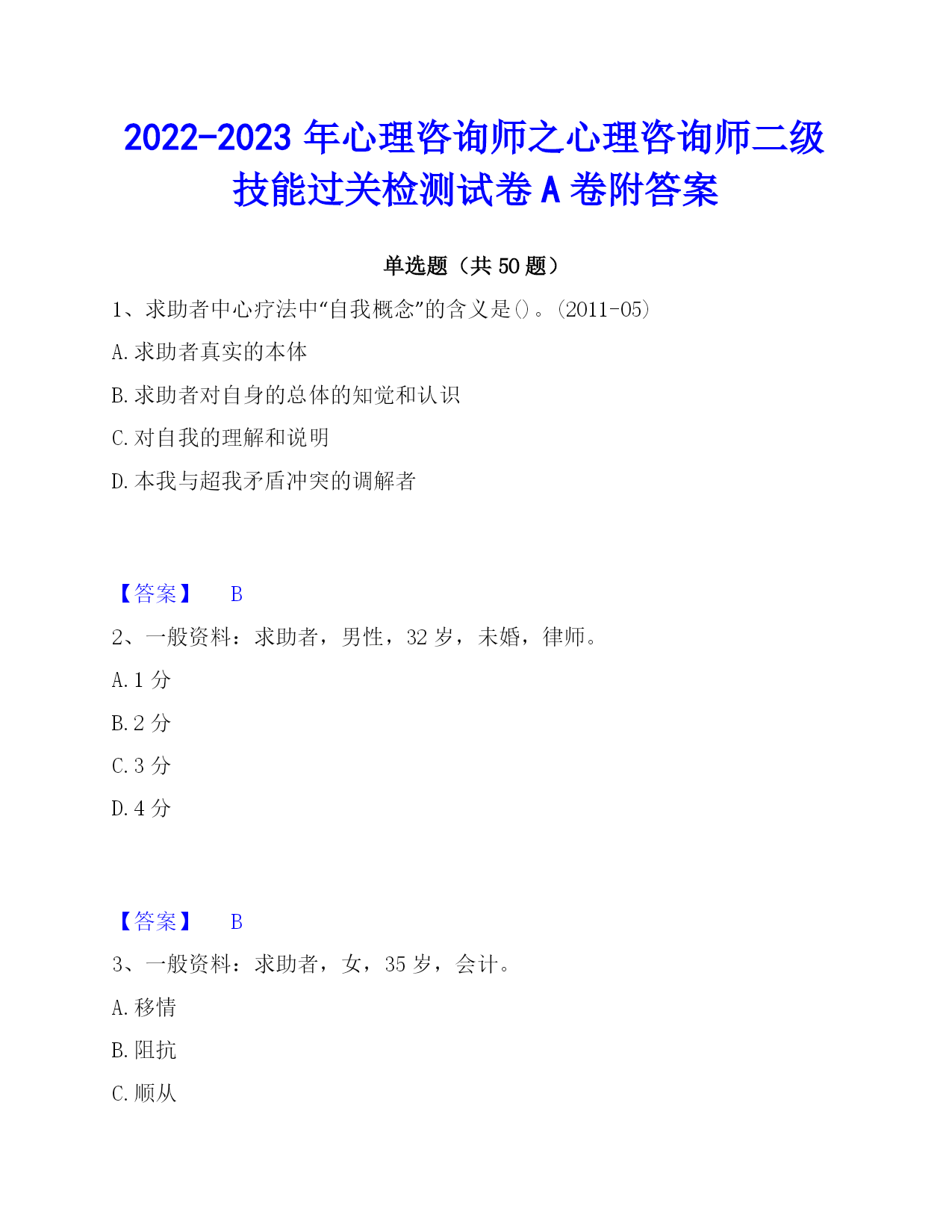 2022-2023年心理咨询师之心理咨询师二级技能过关检测试卷A卷附答案.docx