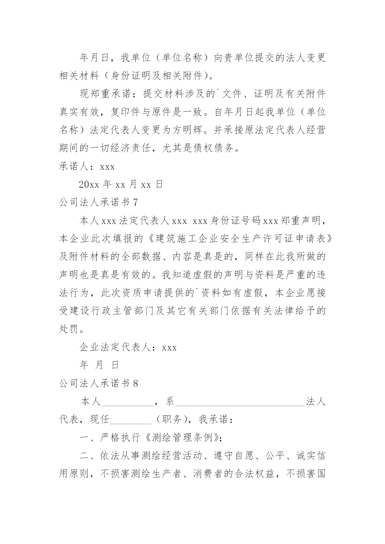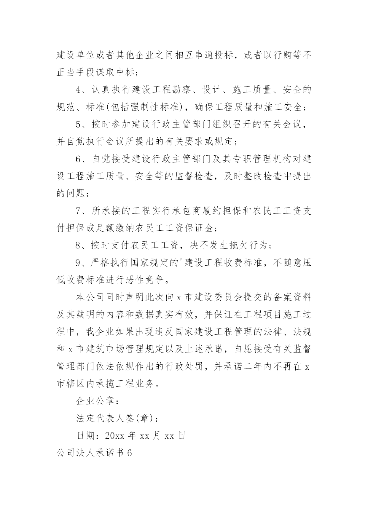 公司法人承诺书公司法人承诺书在当下社会,承诺书的使用频率越来越高,承诺书必须由受要约人作出,只有受要约人才能取得承诺的权利,受要约人以外的第三人不享有承诺的权利。怎么写承诺书才能避免踩雷呢?下面是小编帮大家整理的公司法人承诺书,欢迎大家分享。公司法人承诺书1税务局:本企业因等内容发生变化,需向贵局申请办理变更税务登记。为自觉遵守国家税收法律、法规和规定,依法履行纳税义务,保障国家税收收入,自愿作如下承诺,并承担因违反本承诺所产生的法律后果:1、保证向贵所提交的.办理变更税务登记的全部文件、证件等材料真实、合法、有效。2、本人对企业变更前、后的应缴未缴税金、欠缴税金等相关涉税事项,承诺由变更后的法人代表承担相应的法律责任。承诺人:xxx20xx年xx月xx日公司法人承诺书2我单位保证严格按照国务院《易制毒化学品管理条例》和公安部《易制毒化学品购销和运输管理办法》以及相关法律法规,保证本单位的所有材料的真实性和合法性,保证将易制毒化学品全部按合法用途使用,在任何情况下不用于非法生产,不挪为它用,不私自转让其他单位和个人,并加强对易制毒化学品的.管理,完善企业内部管理制度,落实专人管理,防止我单位的易制毒化学品流入非法渠道,自觉接受监督管理,如违反上述承诺,致使易制毒化学品流入非法渠道,我单位(及本人)自愿接受相应处罚。法人(代表人)签字:单位(公章)公司法人承诺书3我单位郑重承诺。严格遵守国务院《易制毒化学品管理条例》和公安部《易制毒化学品购销和运输办法》以及相关法规、法律之规定,保证本单位提供的所有材料真实性,合法性,保证将易制毒化学品全部按合法用途使用,在任何情况下不用于非法生产非法产品,不挪做他用,不私自转让其他单位或个人。加强对易制毒化学品的`严格管理,不让我单位的易制毒化学品流入非法渠道,自觉接受监督管理,如有违反上述承诺,我单位(及本人)自愿接受处罚。承诺人:xxx20xx年xx月xx日公司法人承诺书4本人作为公司法人代表,为保障公司员工的身体健康、生命和财产安全,防止和减少生产安全事故发生,本人郑重向玛纳斯县煤炭工业管理局承诺,在工作中严格履行以下职责和义务:1、切实树立“安全第一”的思想,对公司安全生产负全面责任,建立健全安全生产管理机构,落实全员安全生产责任制。2、确保国家安全生产方针、政策、国家(行业)安全标准在公司内得到认真贯彻执行和落实。3、不断建立健全公司安全生产规章制度,并认真组织落实。4、督促公司安全生产大检查,落实重大事故隐患的整改措施。5、坚持“管理、装备、培训”三并重原则,领导组织本公司的职工安全教育培训工作。6、保证公司安全生产必要投入的有效实施,不断采用新技术对生产装置进行维护改造,提高生产装置的`安全性,改善劳动生产条件,按照国家有关规定,保障劳动保障用品发放到位。7、组织审定本公司安全生产管理方面的规章制度,并督促各部门和有关人员付诸落实。8、根据需要不定期主持召开安全生产会议,领导安委会组织,每月的15日的安全大检查,除此以外,要定时对安全工作进行检查,处理隐患。9、对全矿所存在的重大安全隐患,要及时召开有关会议研究解决。10、公司发生重大事故时,必须立即赶往现场组织抢救,并立即报告上级主管部门处,同时按规定组织领导本公司的事故调查分析,处理工作,主持制定防范措施。11、按照《煤矿安全规程》要求组织全公司的生产工作,做到科学管理,安全生产、证件齐全。承诺人(法人代表):承诺时间:年月日公司法人承诺书5我企业进入x市辖区拟承接x市金开源房地产开发有限责任公司地下车库及南区沿街商业工程的施工业务,将严格遵守《建筑法》、《招投标法》《建设工程质量管理条例》、《建设工程安全生产管理条例》、《河南省建建筑市场管理条例》、《x市外地进宛施工企业管理办法》和有关的法律、法规、规章制度、规范性文件的规定,并郑重作出以下承诺:1、本公司全权委托驻宛分支机构或项目部处理在宛施工事宜,所做出的一切行为我公司全部认可,由此造成的一切后果我公司愿承担全部责任;2、公司及负责人、分支机构或项目部必须服从建设行政主管部门及其专职管理机构的管理,认真执行建设行政主管部门的管理规定和决定。3、自觉履行建设工程合同条款,维护x市的建筑市场秩序,不超资质承揽工程业务,不违法转让工程业务;不与建设单位或者其他企业之间相互串通投标,或者以行贿等不正当手段谋取中标;4、认真执行建设工程勘察、设计、施工质量、安全的规范、标准(包括强制性标准),确保工程质量和施工安全;5、按时参加建设行政主管部门组织召开的有关会议,并自觉执行会议所提出的有关要求或规定;6、自觉接受建设行政主管部门及其专职管理机构对建设工程施工质量、安全等的监督检查,及时整改检查中提出的问题;7、所承接的工程实行承包商履约担保和农民工工资支付担保或足额缴纳农民工
