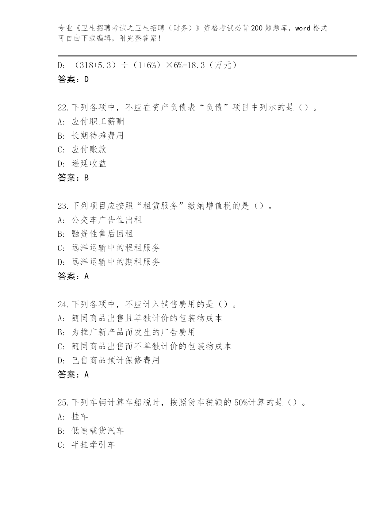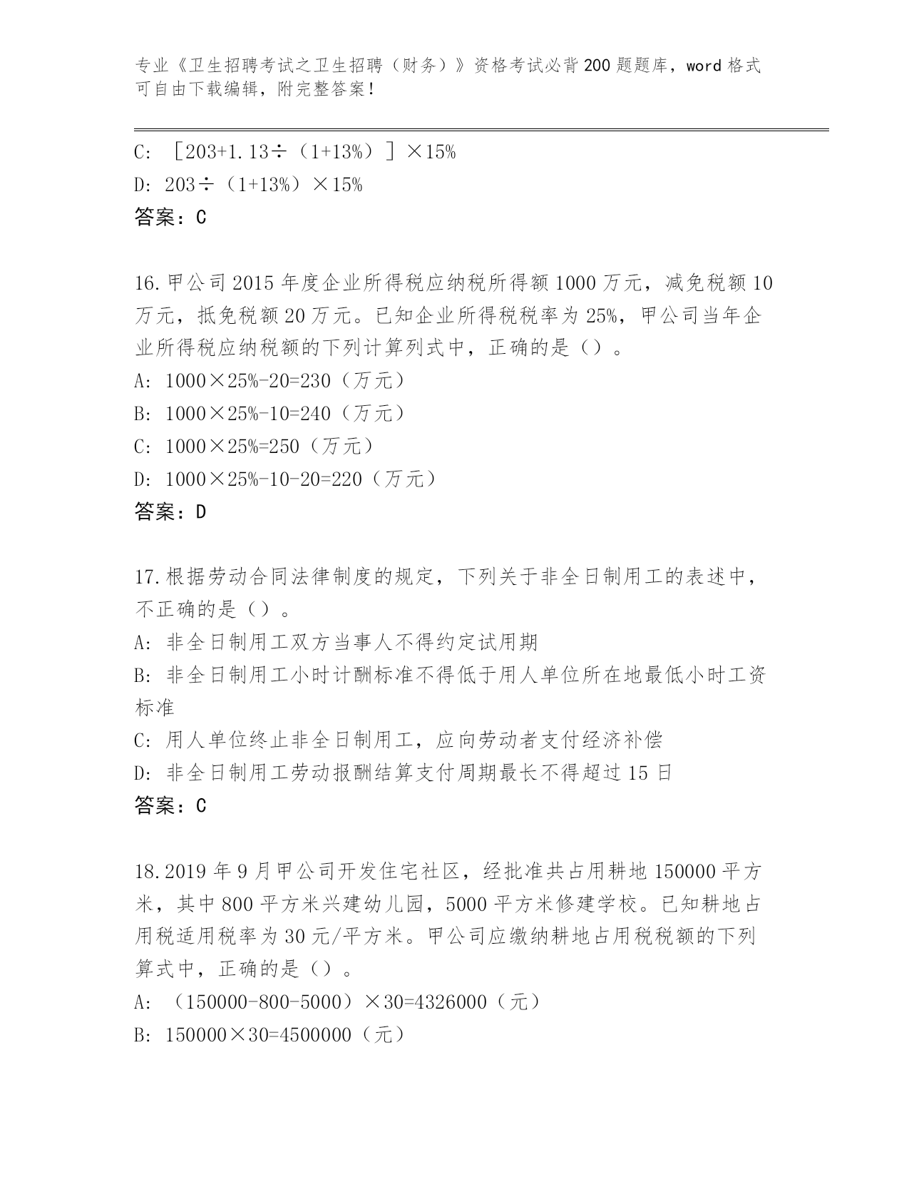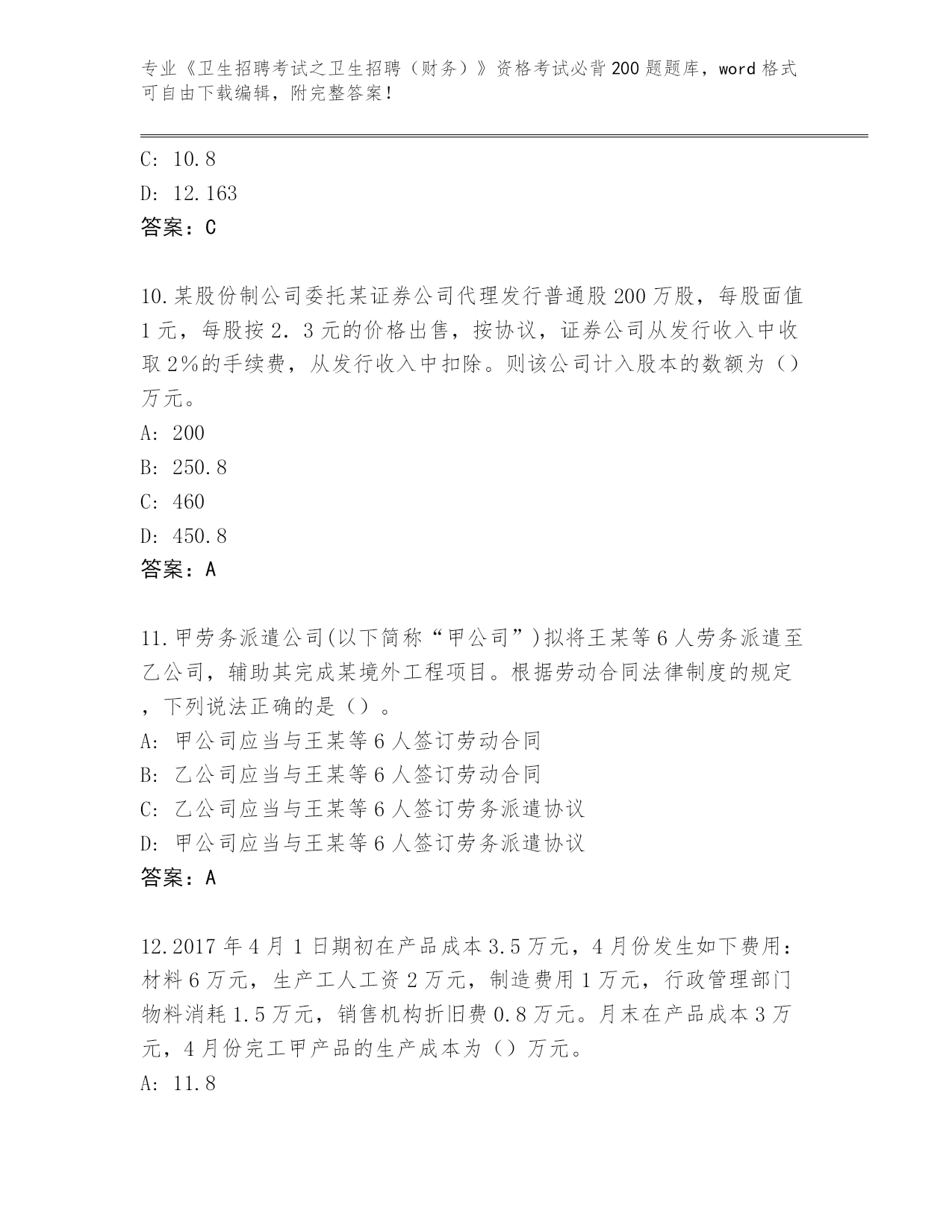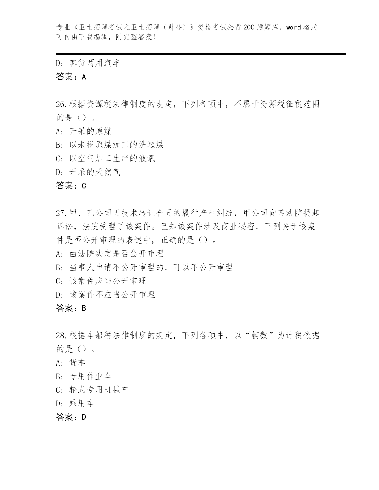 2024江苏省滨湖区《卫生招聘考试之卫生招聘(财务)》资格考试必背200题内部题库附答案(考试直接用)