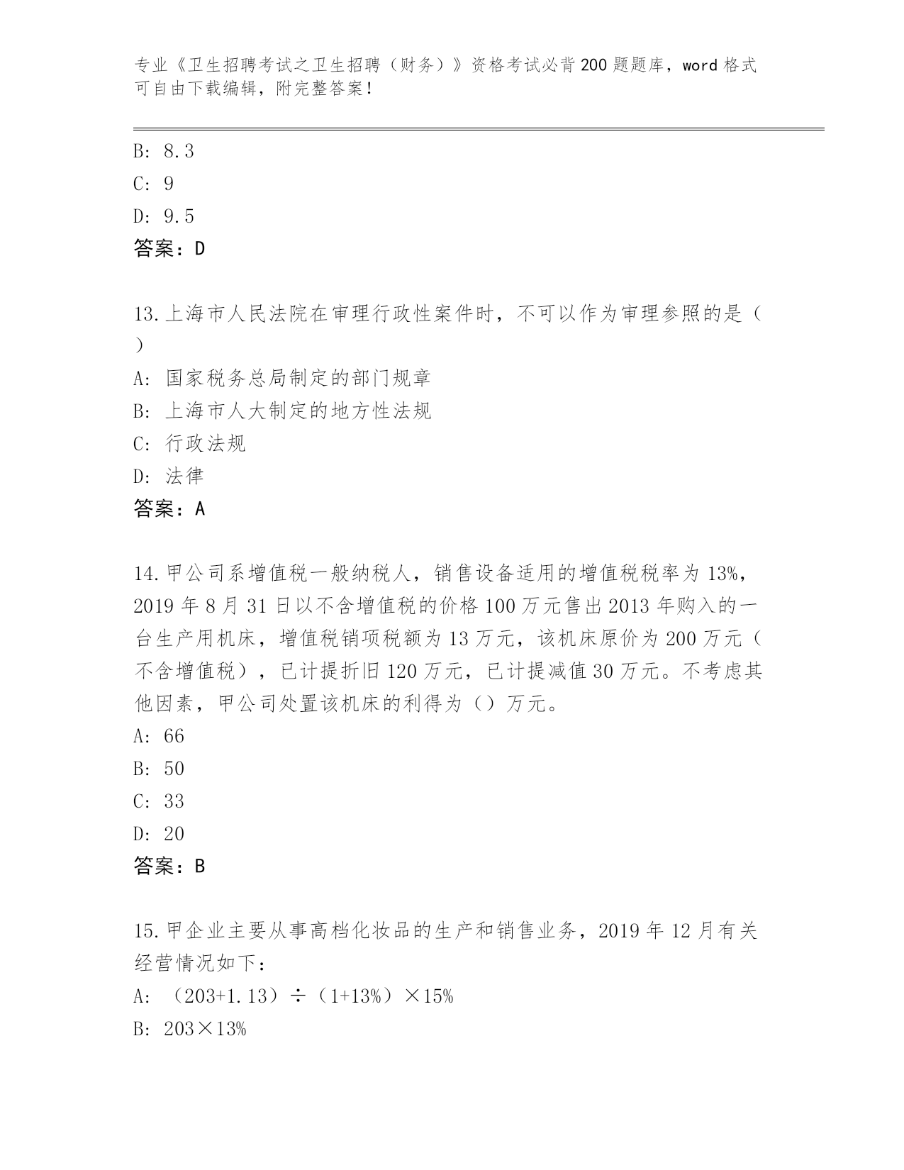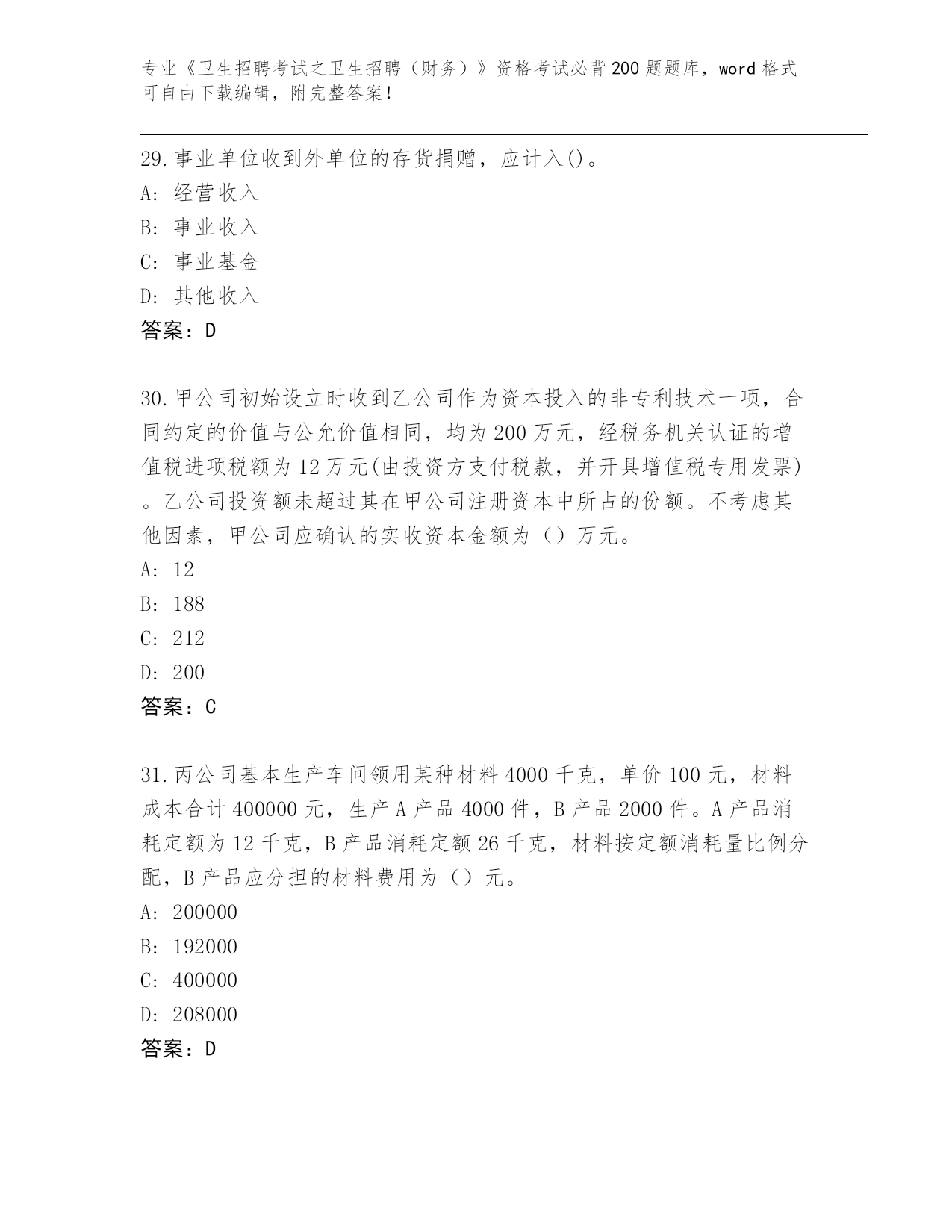 整理江苏省滨湖区《卫生招聘考试之卫生招聘(财务)》资格考试必背200题完整题库附参考答案(B卷)