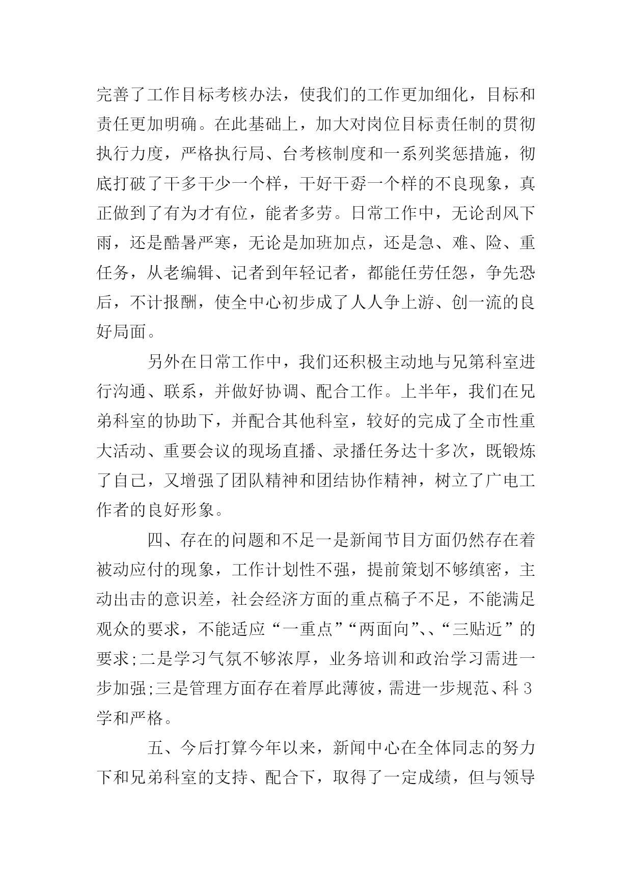 新闻编辑个人工作总结范文【三篇】新闻编辑个人工作总结范文篇一一、新闻编辑工作编辑是企业内部新闻信息综合发布工作岗位,工作服务对象既对领导又对基层,每天都通过网络与全体员工“亲密接触”,新闻发布的质量和水平都直接影响到舆情导向和企业形象。为此,我坚持少讲话多做事的原则,认认真真对待每一天的工作。定向服务与突出重点相结合,创新栏目办好报。年初,围绕部门领导提出的对《××电力报》版面进行重新策划创新的办报思路,积极和对口服务的党政工团各责任部门沟通,对体现精神文明建设的综合板块版面进行调整,重新设置了《科学发展观》、《党员风采》、《基层党建》、《廉政征文》、《员工之声》、《芙蓉花开》、《企业青年》等专栏。在下半年对版面分工进行调整后负责《××》文学版块,接手后有意识的加强了与各单位文学、摄影爱好者联系,配合企业中心工作以及各类大型活动约稿,力争文章和图片主题贴近群众、贴近实际、贴近生活,真实反映出一线员工的思想、工作和学习情况。二、新闻采写工作配合中心工作,认真采写新闻稿件。4月份,作为局新闻工作人员,很荣幸的得到了跟随张书记到××,到我局援川电网重建一线开展学习实践科学发展观活动的机会。在一线的路途和工地上,总被同事们在平凡的工作及言谈中表现出来对对企业的忠诚和热爱、对工作的认真和奉献精神所打动,在完成现场新闻稿之后完成了人物通讯稿件《立在××援建工地上的杆子》,此稿件先后在国家电网报、湖南电力报、××晚报等媒体发表。此外还配合春检、营销服务反违章、学习实践科学发展观活动等工作完成了一些宣传稿件。同时在平时还留心多看报多学习,广泛借鉴其他报纸的板式风格,争取版面灵活、美观,尽可能扩大报纸的影响面,得到职工更多的关注。编辑部的工作者们每天都要争分夺秒地修改、编辑,还要经常加班,有时每天只能睡四、五个小时。但我从来没从他们的脸上看到疲惫和厌烦,他们总是精神饱满地投身于自己的工作中。我想,正是这份对工作的激情支持着他们。如果没有激情,他们不可能为此付出如此巨大的精力。编辑部的工作既繁琐又枯燥无味,无论严寒酷暑,他们都得静下心来慢慢地阅读稿件。如果没有耐心,他们不可能坐在办公室不厌其烦地工作着。细心同样很重要,因为这关系到新闻播出效果的好坏。哪怕一个字,一个小小的标点符号,都会影响到新闻播出的质量。所以,即便他们再累也得提起精神,仔细检查,宁可多看几遍,也不愿意放过一个错误。如果不细心,他们不可能做出如此高质量的新闻节目。激情让我们对工作充满热情,愿意为共同的目标而奋斗;耐心又让我们细致地对待工作,力求做好每个细节;细心让我们严把每一份稿件,做到精益求精。在编辑部工作也有很闲的时候。没稿件的时候,编辑们都会看看杂志和报纸打发时间,或是聊聊天,说说笑。而此时,我总会很自觉的地抓紧时间多看看些新闻编辑的书记或是拿出之前改好的稿件,学习和总结一些常见的稿件错误。总之,编辑部是一个既充满欢乐气氛又可以学习和拓展知识面的地方。实习让我收获了很多,无论是理论上的知识,还是实际生活中的知识,这些知识都让我受益非浅。我认识到在学校学好本专业知识的同时,还应该多参加些社会实践,拓展自己知识面,提高自己的综合素质,不断学习,多思考,多练习,多听多看。同时要学会与人相处和沟通,处理好人际关系。做任何事情都要对自己有信心。相信在我们的努力下“有志者事竟成”。新闻编辑个人工作总结范文篇二在繁忙的工作中,20XX年不知不觉已接近尾声。回顾这一年是过得有意义的、有价值的、有收获的。一年来,在书记、部室领导和同事们的悉心关怀和指导下,通过自身的不懈努力,在工作上取得了一定的成绩,但也存在了诸多不足。现将工作总结如下:一、新闻编辑工作新闻编辑是企业内部新闻信息综合发布工作岗位,工作服务对象既对领导又对基层,每天都通过网络与全体员工“亲密接触”,新闻发布的质量和水平都直接影响到舆情导向和企业形象。为此,我坚持少讲话多做事的原则,认认真真对待每一天的工作。1、围绕企业中心积极组稿编稿,发挥网络宣传优势。今年的网络新闻一块,按领导的指示,重点结合局安全生产、营销服务反违章、学习实践科学发展观、援川电网重建等中心工作,快捷、图文并茂的开展宣传报道,先后在**信息港开辟了【春季安检】、【科学发展观】、【大家谈】(营销服务反违章大家谈)、【**援建系列】、【严抓严管强势推进】、【抓好秋检夯实基础】、【庆国庆保稳定】、【诚信;感恩】、【芙蓉风采】、【营销服务反违章】、【学安规保安全】等十个专栏进行重点宣传。在稿件编发过程中,从严把住编辑关,避免了新闻随意发和滥发现象的发生,保证了网络新闻发稿的严肃性,提高了网站质量。据统计,到11月20日止,**信息港共刊发网络新闻2229条,其中局内新闻1111条。2、定向服务