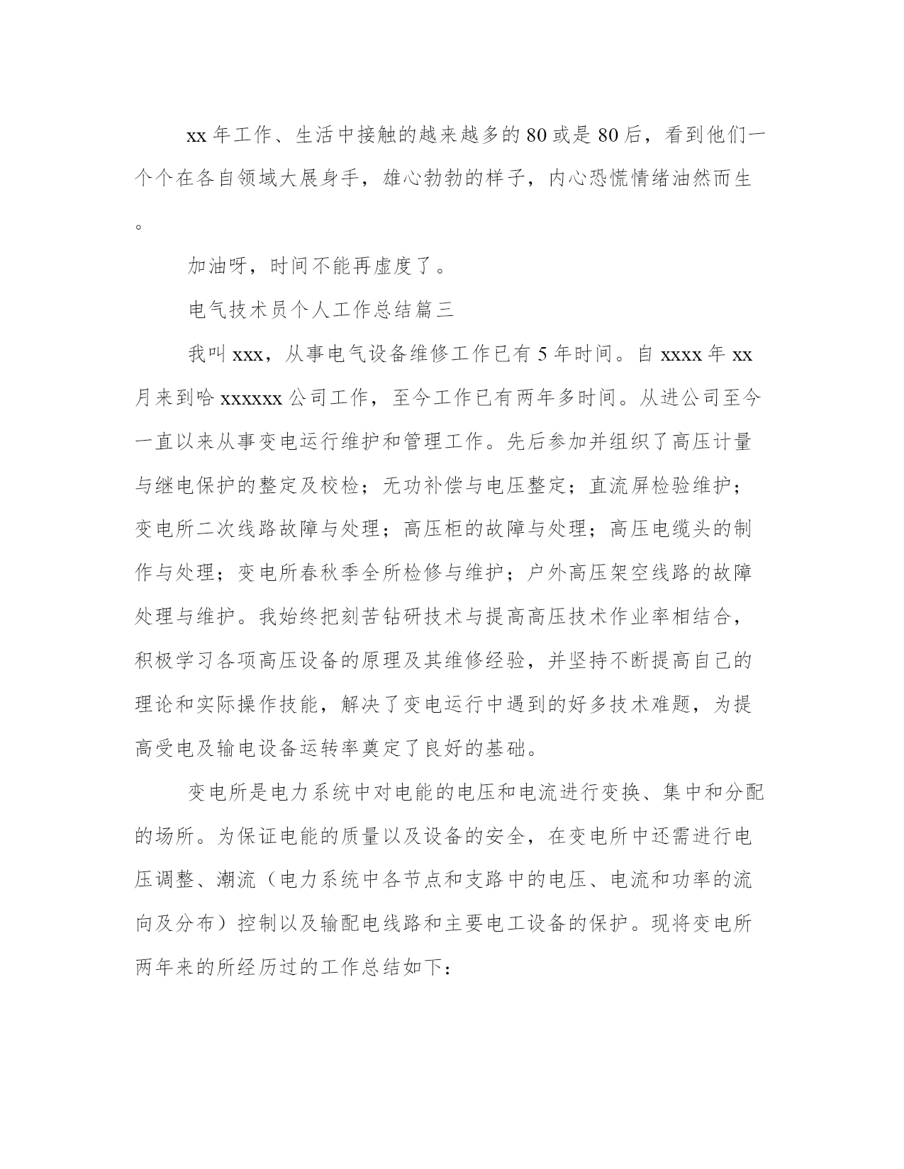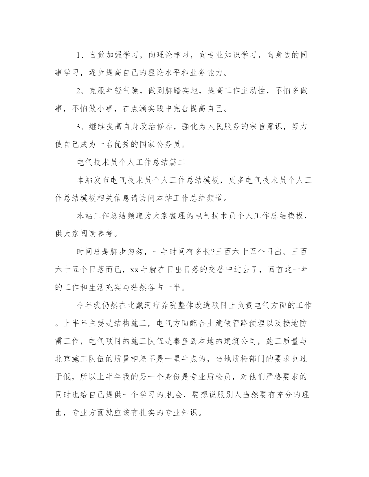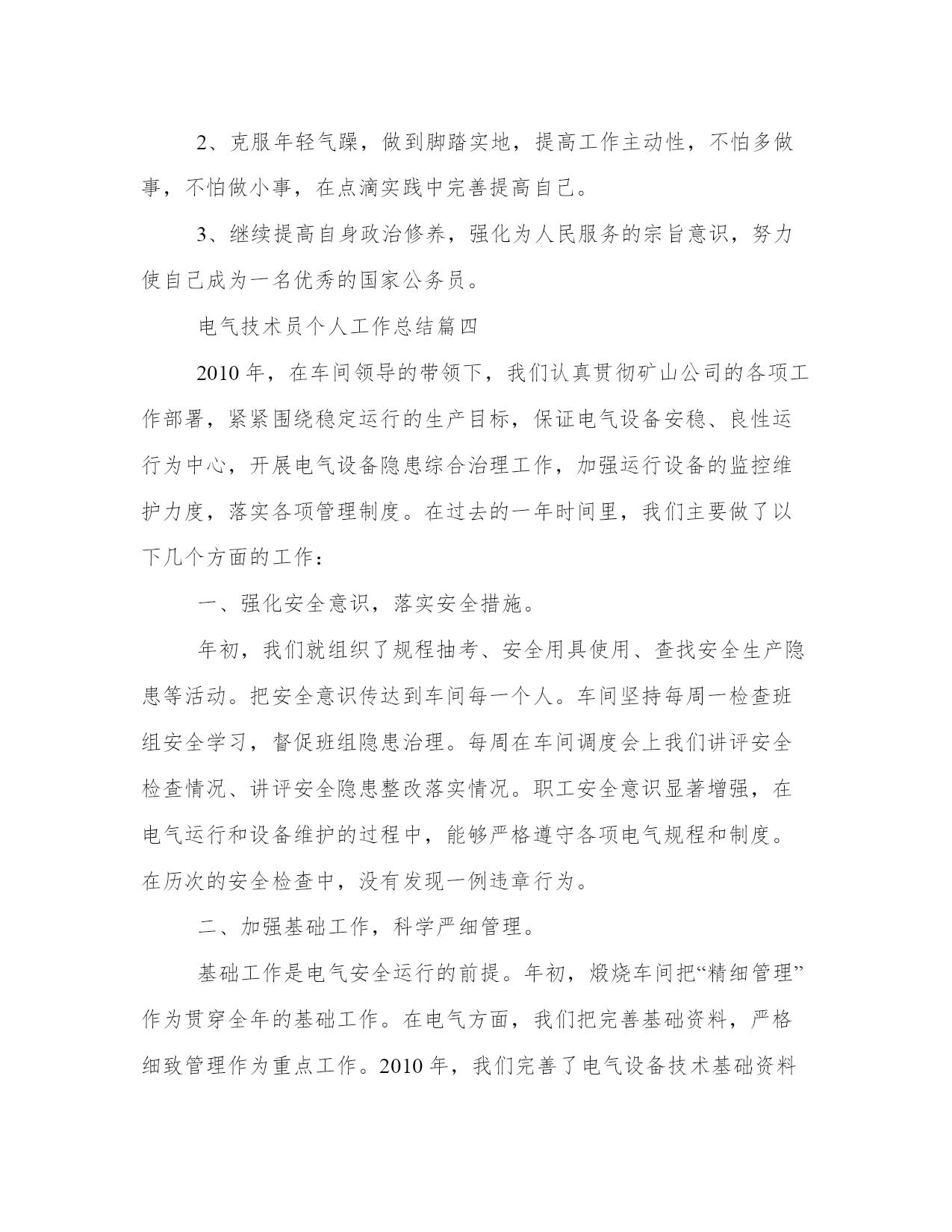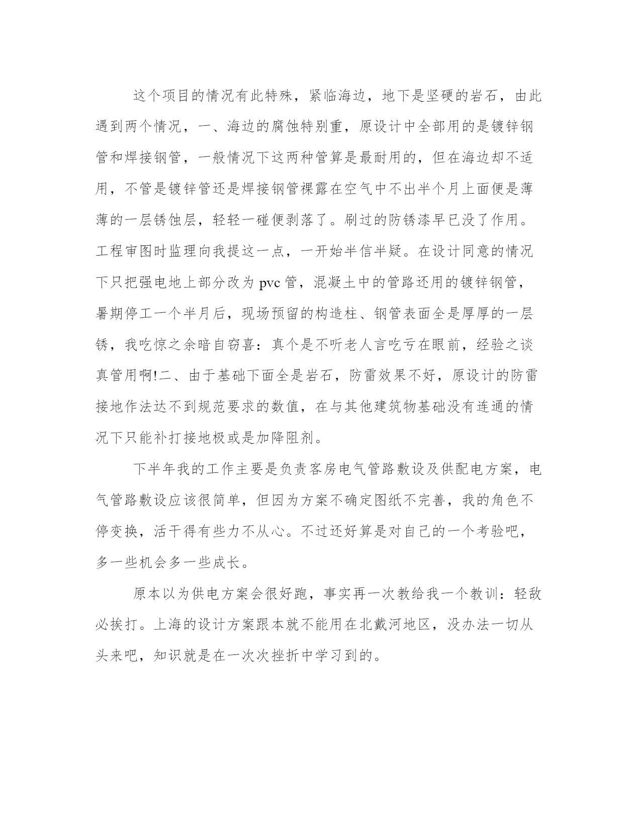 最新电气技术员个人工作总结(大全8篇)围绕工作中的某一方面或某一问题进行的专门性总结,总结某一方面的成绩、经验。那关于总结格式是怎样的呢?而个人总结又该怎么写呢?以下是小编为大家收集的总结范文,仅供参考,大家一起来看看吧。电气技术员个人工作总结篇一我叫xxx,从事电气设备维修工作已有5年时间。自xx年x月来到哈xx公司工作,至今工作已有两年多时间。从进公司至今一直以来从事变电运行维护和管理工作。先后参加并组织了高压计量与继电保护的整定及校检;无功补偿与电压整定;直流屏检验维护;变电所二次线路故障与处理;高压柜的故障与处理;高压电缆头的制作与处理;变电所春秋季全所检修与维护;户外高压架空线路的故障处理与维护。我始终把刻苦钻研技术与提高高压技术作业率相结合,积极学习各项高压设备的原理及其维修经验,并坚持不断提高自己的理论和实际操作技能,解决了变电运行中遇到的好多技术难题,为提高受电及输电设备运转率奠定了良好的基础。变电所是电力系统中对电能的电压和电流进行变换、集中和分配的场所。为保证电能的质量以及设备的安全,在变电所中还需进行电压调整、潮流(电力系统中各节点和支路中的电压、电流和功率的流向及分布)控制以及输配电线路和主要电工设备的保护。现将变电所两年来的所经历过的工作总结如下:20xx年11月8日由于电力公司线路故障对我公司大网电进行停电3小时。接到通知后,我们对各用电线路按变电所正规停电步骤进行停电。当电力公司处理故障送电以后,按送电步骤进行送电。这时发现35kv一号主变真空断路器拒绝合闸,这也是我公司刚投产两个月变电所第一次所出现的问题,我公司变电所35kv高压柜所应用的真空断路器是正泰zn85-40、5断路器。在实验状态下发现断路器得到合闸命令后,合闸电磁铁动作,铁心顶杆将合闸掣子顶开,合闸弹簧释放能量,带动断路器合闸,但断路器灭弧室不能合闸。经过分析,说明机械故障已排除在外,说明就是二次线路故障,在检查中发现二次辅助插头有一根针头与控制线脱焊,处理以后对真空断路器进行合闸,故障问题解决。在日常工作中对真空断路器最易出现的故障得以总结:1、正空断路器拒绝分(合)闸2、真空断路器机构储能后,储能电机不停3、真空断路器灭弧室不能断开xx年x月份底,电力公司传来了二月份的电费明细,跟我公司变电所所计量的电量相差20182kw。h。我带领技术人员对高压计量进行全面检查,由于条件有限,没能找到故障问题。公司邀请了电力公司计量检定中心进行变电所二次线路检定测试。对35kv及10kv各开关柜电流互感器,电压互感器,二次压降及二次负荷,电能表进行测试。在电力公司仪器的测试中发现35kv高后备保护接线端子有间接性开路现象。经过处理,在规定的时间里与电力公司计量中心相对照,问题已解决。电流互感器即ct一次绕组匝数少,使用时一次绕组串联在被测线路里,二次绕组匝数多,与测量仪表和继电器等电流线圈串联使用,测量仪表和继电器等电流线圈阻抗很小,所以正常运行时ct是接近短路状态的。ct二次电流的大小由一次电流决定,二次电流产生的磁势,是平衡一次电流的磁势的。若二次开路,其阻抗无限大,二次电流等于零,其磁势也等于零,就不能去平衡一次电流产生的磁势,那么一次电流将全部作用于激磁,使铁芯严重饱和。磁饱和使铁损增大,ct发热,ct线圈的绝缘也会因过热而被烧坏。还会在铁芯上产生剩磁,增大互感器误差。最严重的是由于磁饱和,交变磁通的正弦波变为梯形波,在磁通迅速变化的瞬间,二次线圈上将感应出很高的电压,其峰值可达几千伏,如此高的电压作用在二次线圈和二次回路上,对人身和设备都存在着严重的威胁。一年来,我在学习和工作中逐步成长、成熟,但我清楚自身还有很多不足,比如工作能力和创新意识不足、政治理论水平有待提高等。今后我将努力做到以下几点,希望领导和同志们对我进行监督指导:1、自觉加强学习,向理论学习,向专业知识学习,向身边的同事学习,逐步提高自己的理论水平和业务能力。2、克服年轻气躁,做到脚踏实地,提高工作主动性,不怕多做事,不怕做小事,在点滴实践中完善提高自己。3、继续提高自身政治修养,强化为人民服务的宗旨意识,努力使自己成为一名优秀的国家公务员。电气技术员个人工作总结篇二本站发布电气技术员个人工作总结模板,更多电气技术员个人工作总结模板相关信息请访问本站工作总结频道。本站工作总结频道为大家整理的电气技术员个人工作总结模板,供大家阅读参考。时间总是脚步匆匆,一年时间有多长?三百六十五个日出、三百六十五个日落而已,xx年就在日出日落的交替中过去了,回首这一年的工作和生活充实与茫然各占一半。今年我仍然在北戴河疗养院整体改造项目上负责电气方面的工作。上半年主要是结构施工,电气方面配合土建做管路预埋以及接地防雷工作,电气项目的施工队伍是秦皇