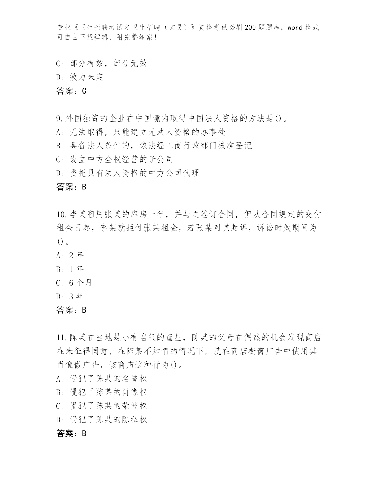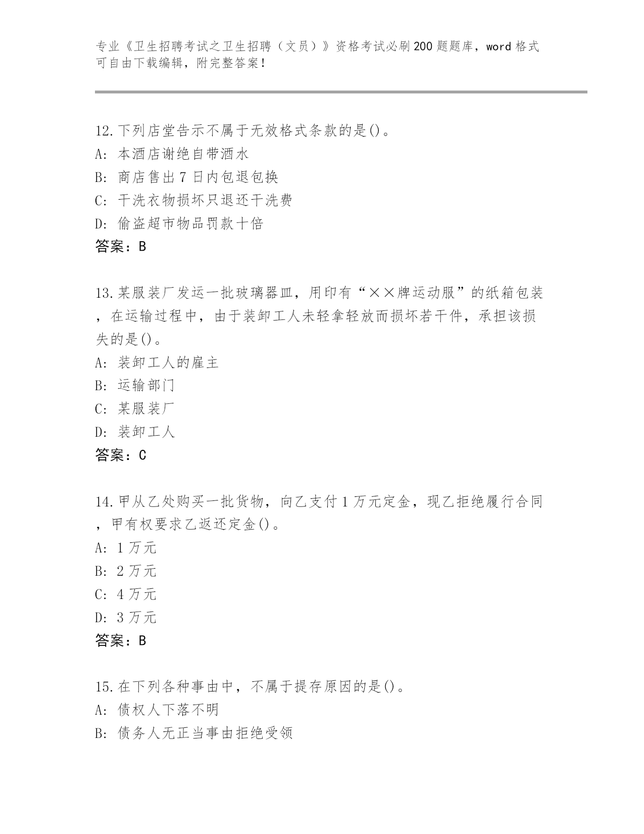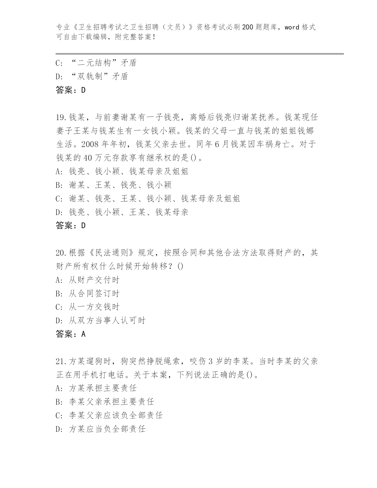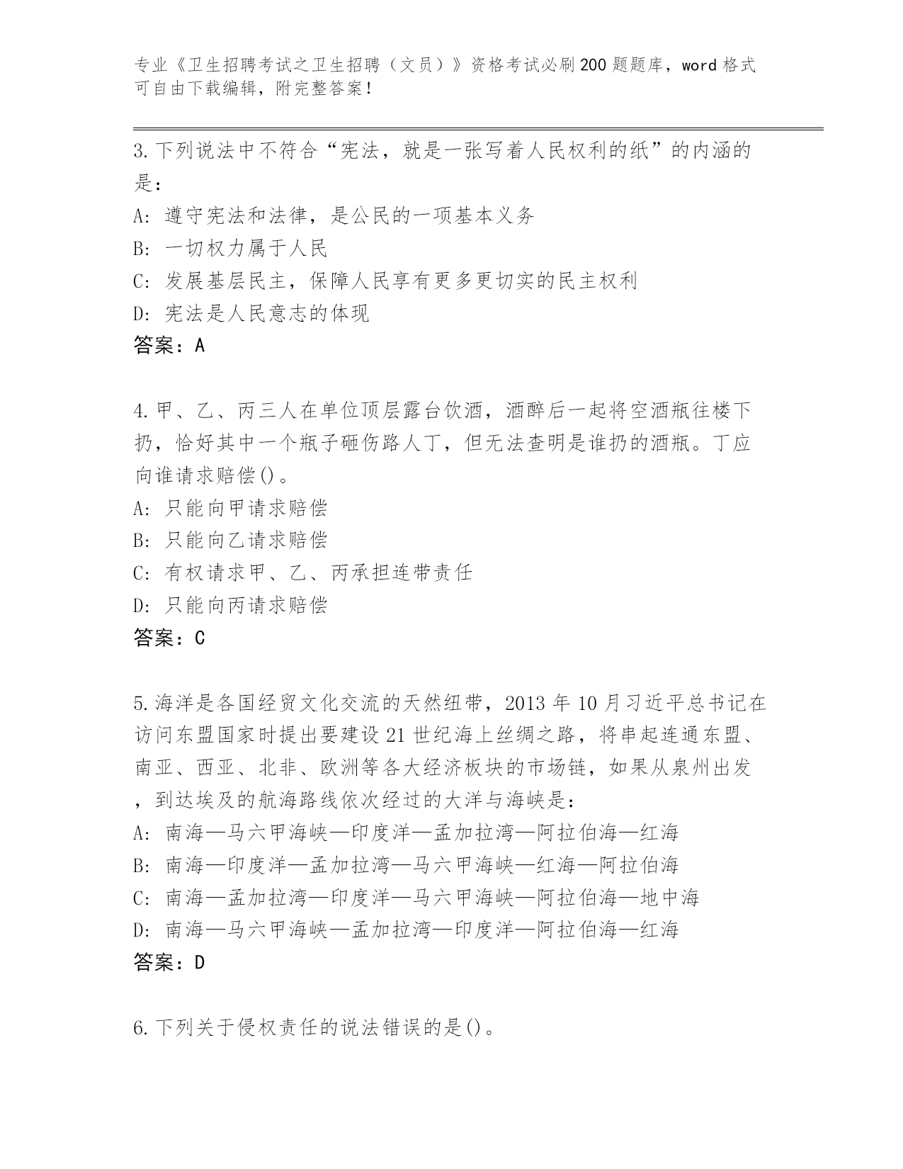广东省完整版《卫生招聘考试之卫生招聘(文员)》资格考试必刷200题题库带答案(预热题)