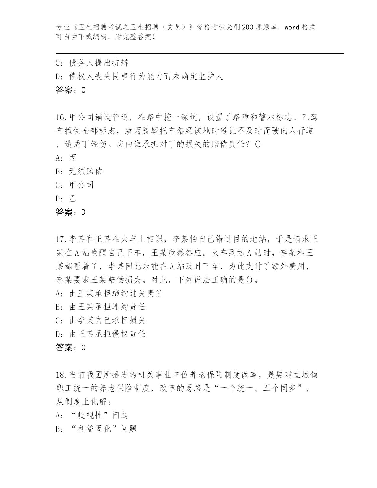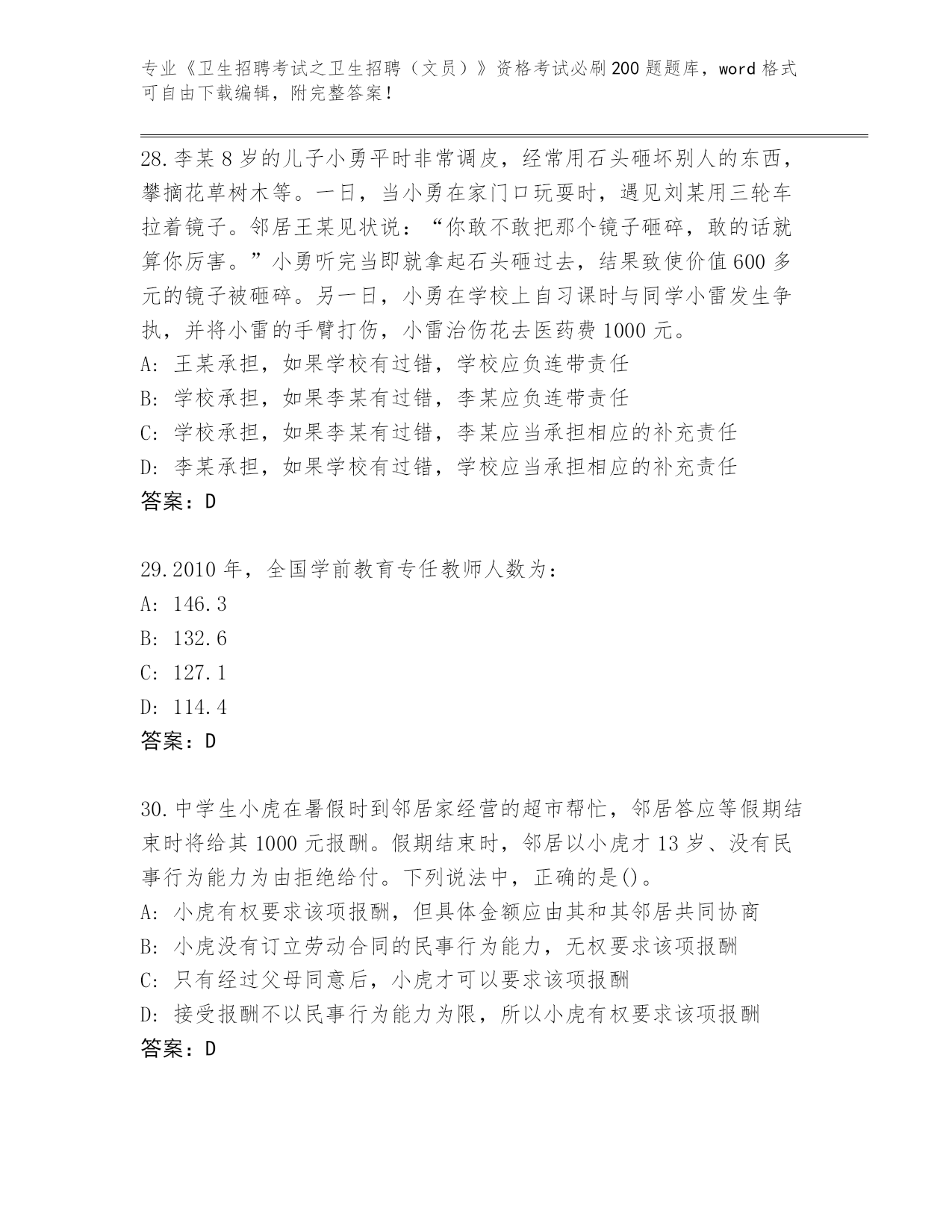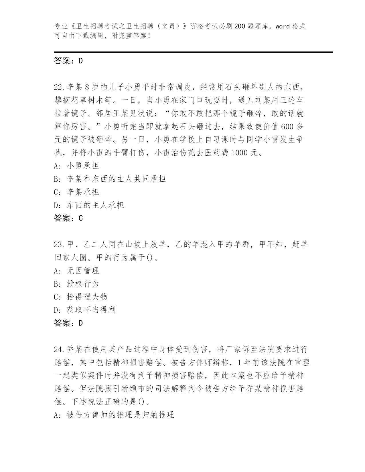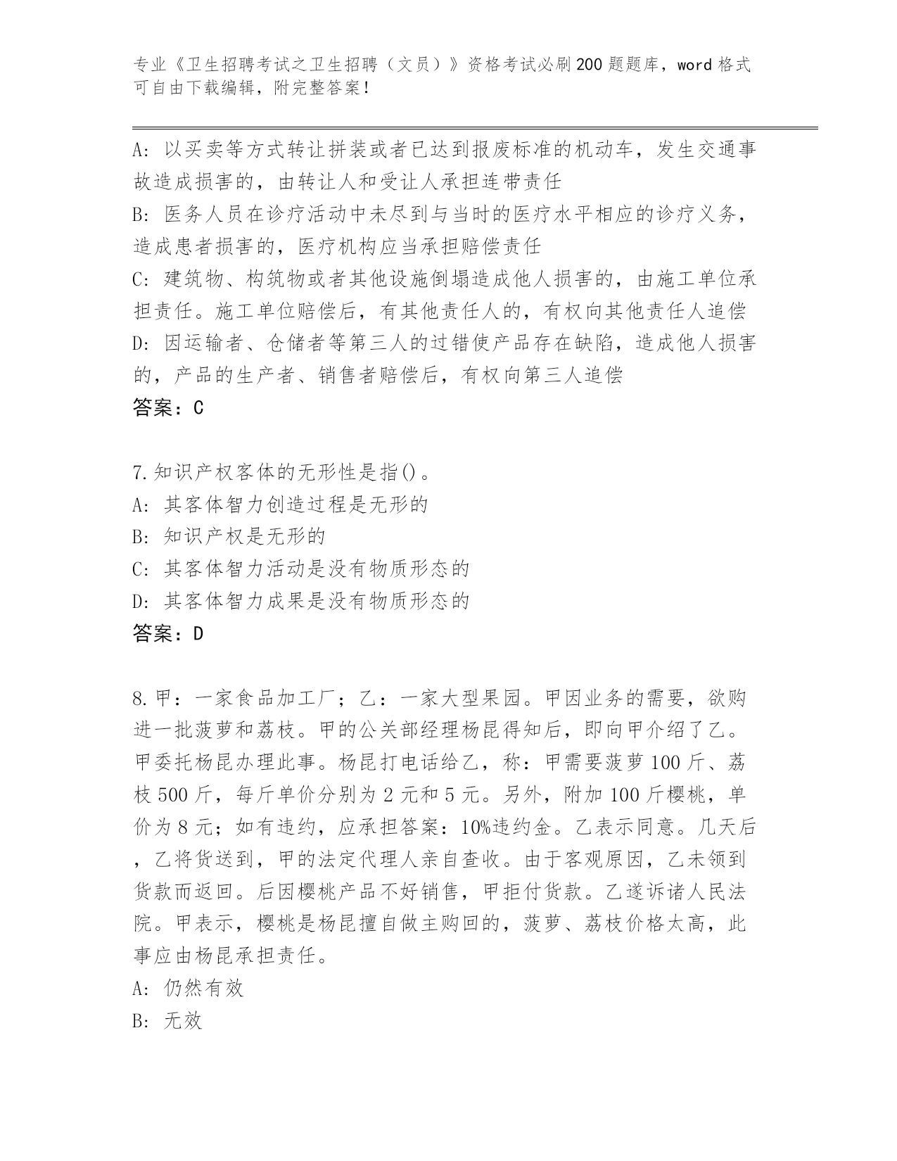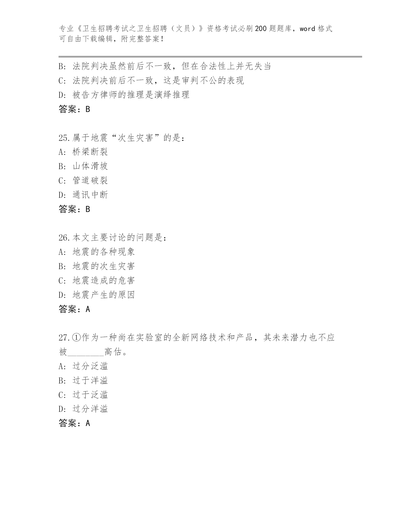 广东省完整版《卫生招聘考试之卫生招聘(文员)》资格考试必刷200题题库带答案(预热题)