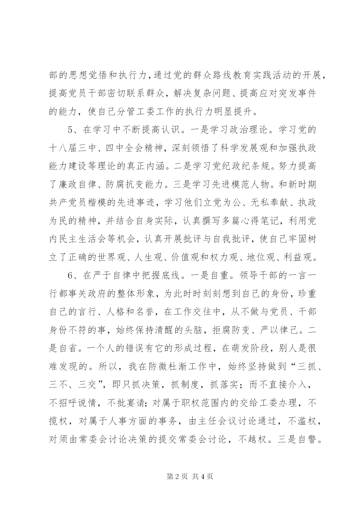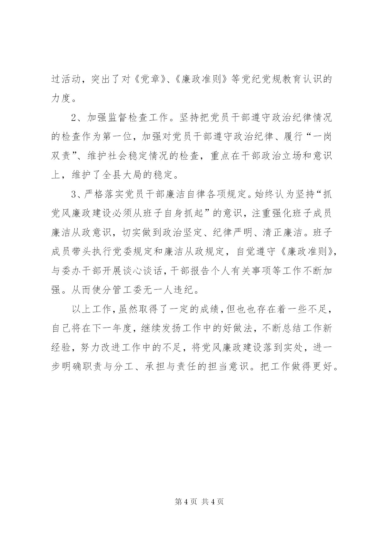 第PAGE\*Arabic\*MERGEFORMAT4页共NUMPAGES\*MERGEFORMAT4页公务员个人年终述职报告公务员个人年终述职报告下面是我们文秘114的小编给大家推荐的公务员个人年终述职报告供大家参阅。xxxx年自己坚持以党风廉政建设责任目标为工作己任,认真贯彻落实党风廉政建设各项工作,做到党风廉政建设与人大人事代表工作同安排、同检查。并结合开展党的群众路线教育实践活动抓好自身作风建设,严守政治纪律。认真践行了“三严三实”、“一岗双责”,做到了廉洁勤政。现述职述廉如下:一、述职方面1、高度重视党风廉政建设工作,xxxx年按照《党风廉政建设工作实施方案》的要求,明确工作职责,按照干部业务职责分工,制定廉政风险防控分解图,与工委干部签订目标管理责任书、家庭助廉责任书。自觉接受工作监督。2、认真制定廉政建设工作计划、目标要求和具体措施,每月一次对工委干部“一岗双责”履职尽责情况进行监督检查,督促干部整改完善,将党风廉政建设责任落到实处。3、以《党章》为纲,认真落实党委安排的各项工作任务,并通过党的群众路线教育实践活动的开展,提高干部执行力和政治觉悟,保证政令畅通。4、加强党员干部管理、教育与监督,不断提高党员领导干部的思想觉悟和执行力,通过党的群众路线教育实践活动的开展,提高党员干部密切联系群众,解决复杂问题、提高应对突发事件的能力,使自己分管工委工作的执行力明显提升。5、在学习中不断提高认识。一是学习政治理论。学习党的十八届三中、四中全会精神,深刻领悟了科学发展观和加强执政能力建设等理论的真正内涵。二是学习党纪政纪条规。努力提高了廉政自律、防腐抗变能力。三是学习先进模范人物。和新时期共产党员楷模的先进事迹,学习他们立党为公、无私奉献、执政为民的精神,并结合自身实际,认真撰写多篇心得笔记,利用党内民主生活会等机会,认真开展批评与自我批评,使自己牢固树立了正确的世界观、人生观、价值观和权力观、地位观、利益观。6、在严于自律中把握底线。一是自重。领导干部的一言一行都事关政府的整体形象,为此时时刻刻想到自己的身份,珍重自己的言行、人格和名誉,在工作交往中,从不做与党员、干部身份不符的事,始终保持清醒的头脑,拒腐防变、严以律己。二是自省。一个人的错误有它的形成过程,在萌发阶段,别人是很难发现的。所以,我在防微杜渐工作中,始终坚持做到“三抓、三不、三交”,即只抓决策,抓制度,抓落实;而不直接介入,不招呼说情,不批宴请;对属于职权范围内的交给工委办理,不揽权,对属于人事方面的事务,由主任会议讨论通过,不滥权,对须由常委会讨论决策的提交常委会讨论,不越权。三是自警。就是用党纪、国法、条规和反面典型告诫自己不要有任何越轨的行为,大是大非问题保持头脑清醒,细节问题也注意防范。根据组织安排,本人自xxxx1年以来,担任XX县区人大常委会副主任职务。作为一名县级领导,一名人代表,始终能够严格要求自己,能够坚持严以律己,不搞以权谋私。要求别人做到的自己首先做到,要求别人不做的自己首先不做。在招待来客等方面,始终坚持能省即省的原则,不搞形式主义,不搞铺张浪费,尽量把有限的财力用于乡经济建设和公益事业的发展上。四是自励。自己认为,一个人无论是一帆风顺,还是坎坷不平,都要有良好的精神状态。自己始终做到成绩面前不满足,失败面前不气馁;工作上高标准,生活上低要求,始终保持了一股旺盛的斗志。7、在监督工作中保持本色。作为领导干部,自己始终保持着一种平衡的心态,时刻牢记全心全意为人民服务的宗旨,以勤为本,以苦砺志,以廉修身。尤其能正确对待、勇于接受组织和群众的监督,无论什么情况下,都能把握住自己,洁身自好,清廉自守。二、述廉工作1、结合群教活动,深入开展廉洁勤政教育。坚持不懈地对干部党员进行党章党纪、理论理想专题教育。坚持逢会必讲党风廉政建设,党委关于党风廉政建设的文件和规定,积极组织学习、对照学习、检查。结合开展党风廉政教育月活动,围绕主题,通过活动,突出了对《党章》、《廉政准则》等党纪党规教育认识的力度。2、加强监督检查工作。坚持把党员干部遵守政治纪律情况的检查作为第一位,加强对党员干部遵守政治纪律、履行“一岗双责”、维护社会稳定情况的检查,重点在干部政治立场和意识上,维护了全县大局的稳定。3、严格落实党员干部廉洁自律各项规定。始终认为坚持“抓党风廉政建设必须从班子自身抓起”的意识,注重强化班子成员廉洁从政意识,切实做到政治坚定、纪律严明、清正廉洁。班子成员带头执行党委规定和廉洁从政规定,自觉遵守《廉政准则》,与委办干部开展谈心谈话,干部报告个人有关事项等工作不断加强。从而使分管工委无一人违纪。以上工作,虽然取得了一定的成绩,但也也存在着一些不足,自己将在下一年度,继续发扬工作中的好做法,不断总结工作新经验,努力改进工作中
