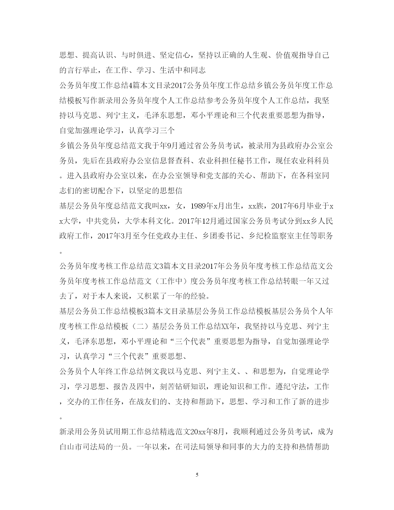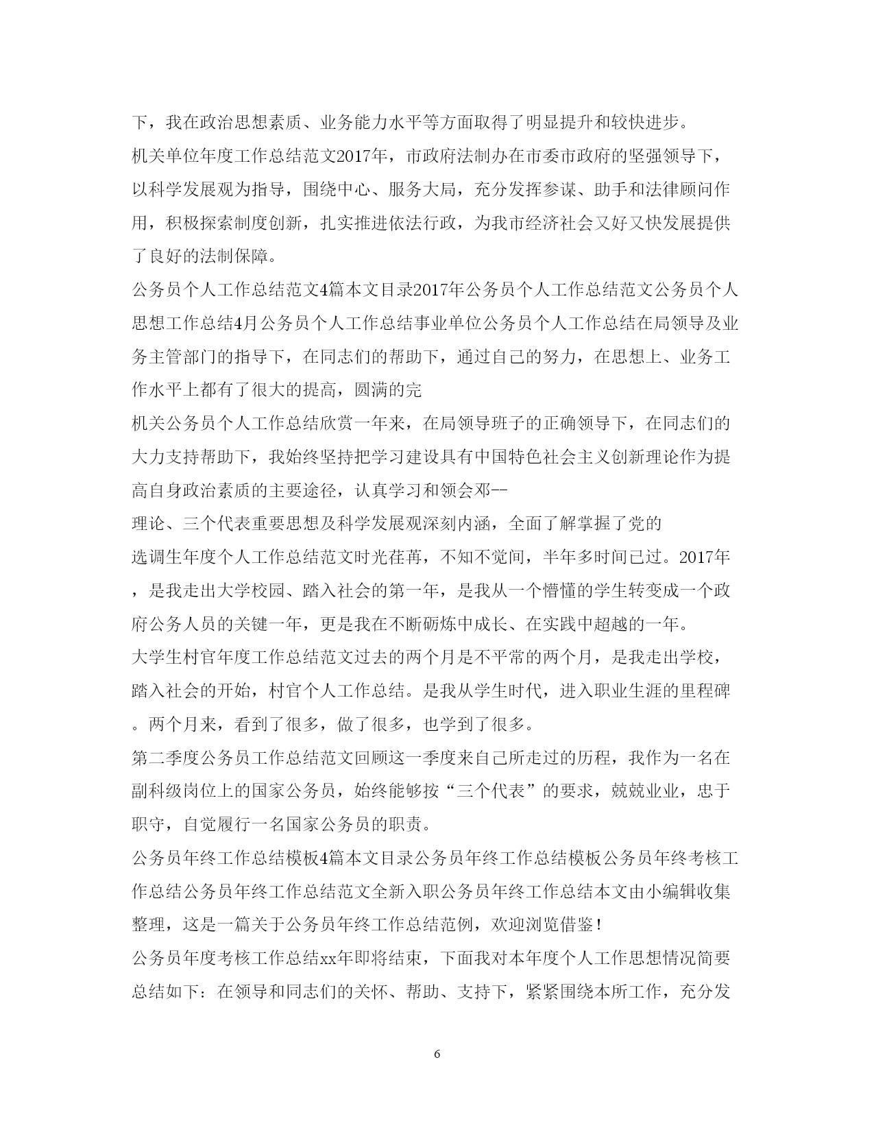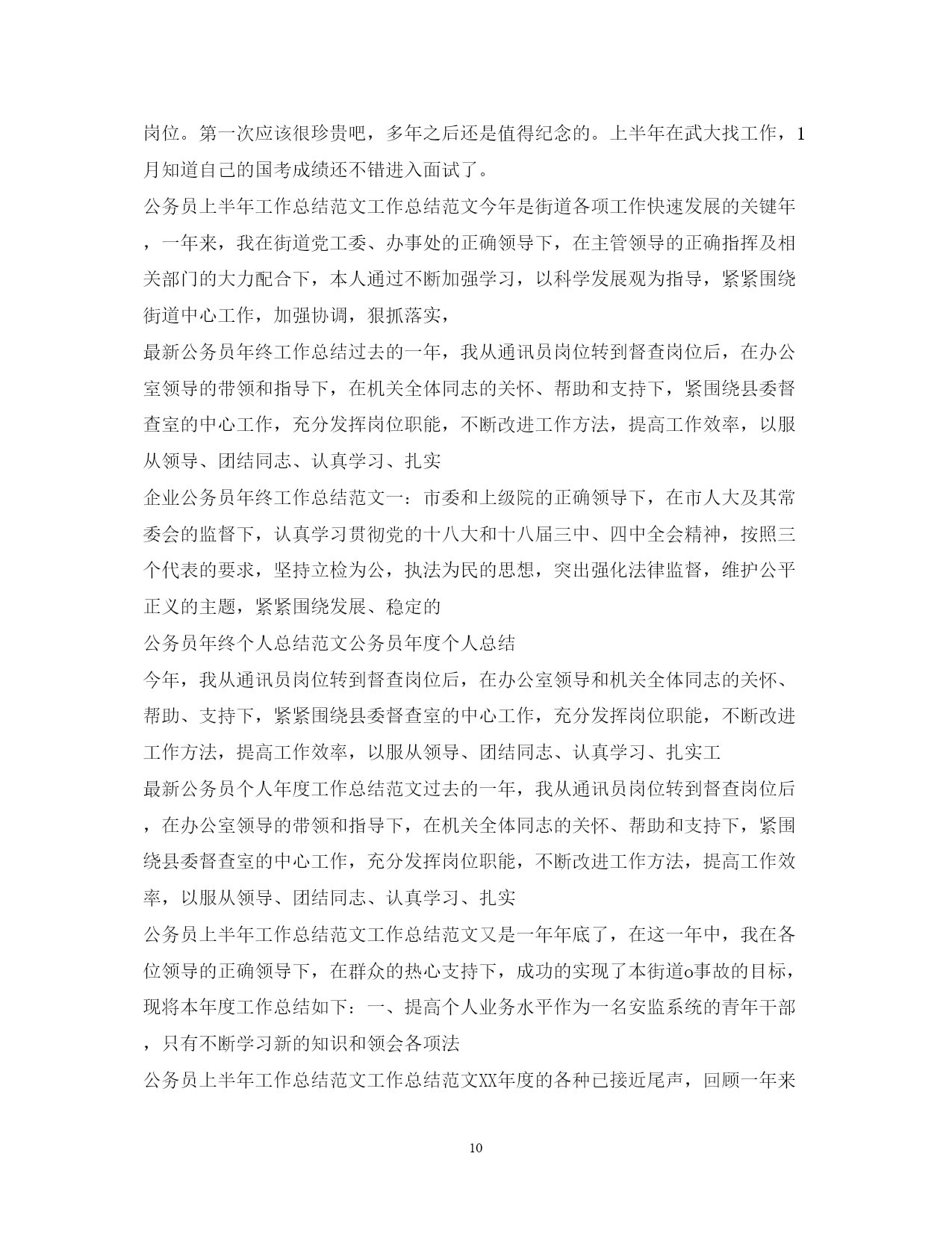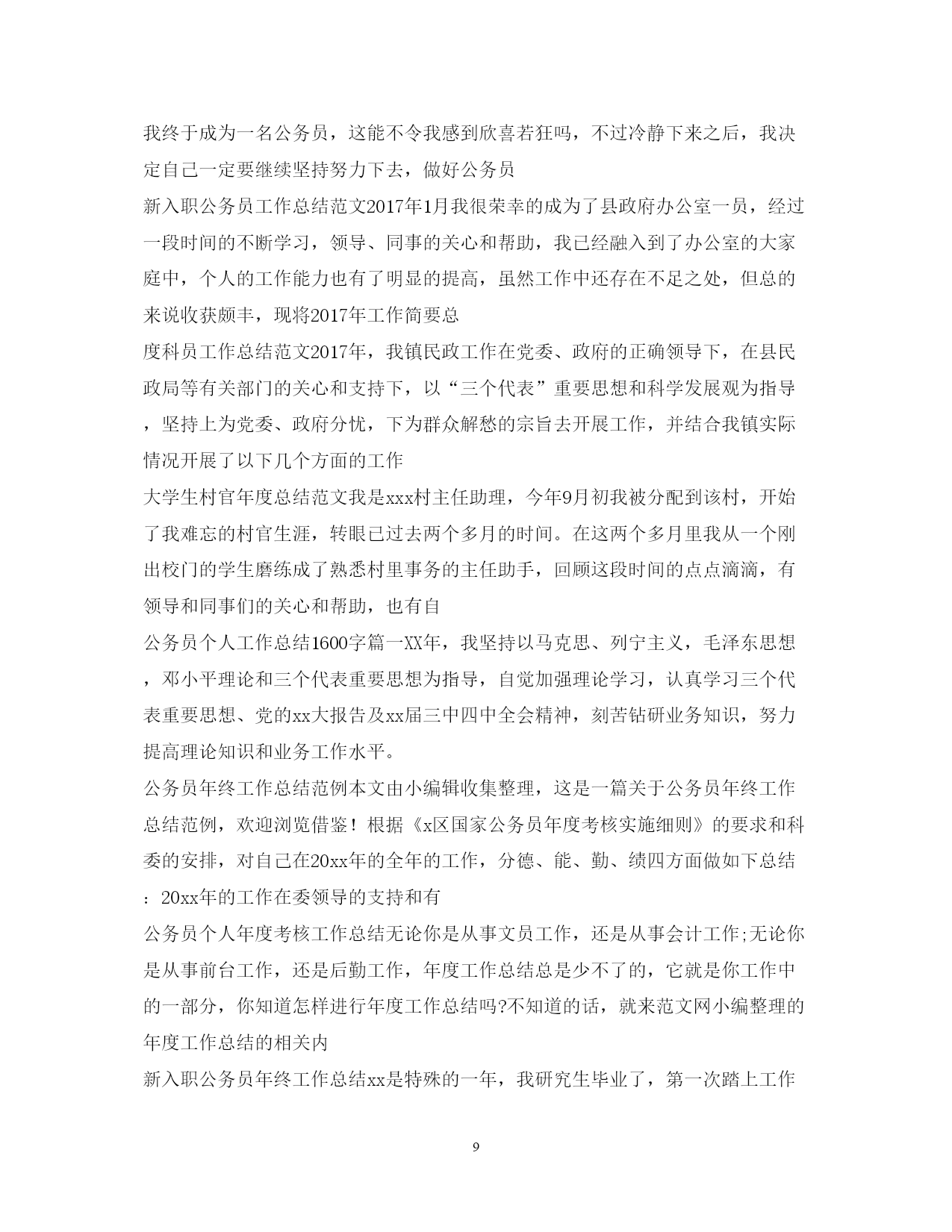 此资料由网络收集而来,如有侵权请告知上传者立即删除。资料共分享,我们负责传递知识。PAGEPAGE15公务员工作总结100篇度机关单位工作总结范文2017年,在单位领导的全面支持、关心下,在全体同事的共同努力下,我在政治思想和工作方面都取得了一些成绩,主要表现如下:在思想政治上,能够坚持原则,政治坚定,认真贯彻执行党的路线、方针、政策。新录用公务员半年个人总结从今年6月参加工作以来,不知不觉已有半年多了。半年来,我从一个刚刚迈出大学门口的学生逐渐成长为一名机关工作人员,这与上级领导和同事们的关心与帮助是分不开的。公务员工作总结范文4篇本文目录2017年公务员工作总结范文写关于公务员年度工作总结(税务)公务员个人半年工作总结乡镇公务员年度工作总结范文从今年月参加工作以来,不知不觉已有半年多了。公务员个人年终工作总结4篇本文目录公务员个人年终工作总结基层公务员个人年终考核工作总结(乡镇)国家公务员个人年终工作总结范文公务员个人年终工作总结××××年,在办公室领导的领导下,在同事们的支持和帮助下,较好地履行了工作职责,事业单位年度工作总结例文一年来,在常委会党组的正确领导下,在机关全体同志的帮助、支持下,我以服从领导、团结同志、认真学习、扎实工作为准则,始终坚持高标准、严要求,认真完成了领导安排的各项工作任务,自身的政治素养、业务水平和综合能力等都有了很大提乡镇公务员工作总结范文4篇本文目录2017年乡镇公务员工作总结范文乡镇公务员工作总结范文乡镇公务员年度个人工作总结范文优秀乡镇公务员工作总结范文xxxx年下半年,我有幸迈入xx县公务员行列,10月份被分配到xx镇政府,转眼已经工作半年多了,现将我半年来在镇政府公务员年度工作总结报告范文2017年,我坚持以马克思、列宁主义,毛泽东思想,邓小平理论和三个代表重要思想为指导,自觉加强理论学习,认真学习三个代表重要思想、党的xx大报告及xx届x中x中全会精神,刻苦钻研业务知识,努力提高理论知识和业务工作水平,公务员个人乡镇公务员年终总结范文我于年9月通过省公务员考试,被录用为县政府办公室公务员,先后在县政府办公室信息督查科、农业科担任秘书工作,现任农业科科员。进入县政府办公室以来,在办公室领导和党支部的关心、帮助下,在各科室同志们的密切配合下,以坚定的思想信乡镇公务员年终个人总结范文我叫xx,女,1989年x月出生,xx族,2017年6月毕业于xx大学,中共党员,大学本科文化。2017年12月通过国家公务员考试分到xx乡人民政府工作,2017年3月至今任党政办主任、乡团委书记、乡纪检监察室主任等职务。公务员年度工作总结范文200字xx年,我坚持以xx重要思想和科学发展观为指导,认真学习xx大、xx届x中全会精神,在各级领导的带领下,认真完成了各项工作任务。现总结如下:一、自觉加强党性锻炼,党性修养和政治思想觉悟进一步提高。公务员个人工作总结4篇本文目录2017公务员个人工作总结新入职公务员个人工作总结参考公务员个人年底工作总结范文(三)公务员个人年终工作总结例文我在街道主要负责民政和残联工作。乡镇公务员年度工作总结范文转眼之间,半年以过,半年来,在镇党委、政府的正确领导下,按照“三个代表”的要求,不断加强自身修养,努力提高个人素质,尽最大能力完成镇党委、政府交给的各项工作任务,现将半年来的工作总结汇报如下:一、以学习为重点,使个人素质基层公务员工作总结范文3篇本文目录2017年基层公务员工作总结范文基层公务员个人工作总结范文基层公务员年终工作总结范文工作总结范文本人自XX年到乡镇部门工作以来,一直担任着xx乡人大主席职位。机关单位年度总结范文一年来,本人自觉加强政治理论学习,始终以邓小平理论和“三个代表”重要思想为指导,深入贯彻落实与积极实践科学发展观,紧密跟随党中央走有中国特色的社会主义道路,认真贯彻执行教育方针,不断提高自身的综合素质。乡镇公务员工作总结4篇本文目录2017乡镇公务员工作总结乡镇公务员工作总结最新乡镇公务员工作总结范文乡镇公务员度工作总结范文转眼之间,三个月以过,在镇党委、政府的正确领导下,按照“三个代表”的要求,不断加强自身修养,努力提高个人素质,尽最大能力完公务员年度工作总结4篇本文目录公务员年度工作总结工商局公务员年度考核个人工作总结范文公务员年度工作总结范文大全国家公务员年度个人工作总结范文xx年即将结束,在局领导及业务主管部门的指导下,在同志们的帮助下,通过自己的努力,在思想上、业务工作水平上都科员年度工作总结范文2017年,市政府法制办在市委市政府的坚强领导下,以科学发展观为指导,围绕中心、服务大局,充分发挥参谋、助手和法律顾问作用,积极探索制度创新,扎实推进依法行政,为我市经济社会又好又快发展提供