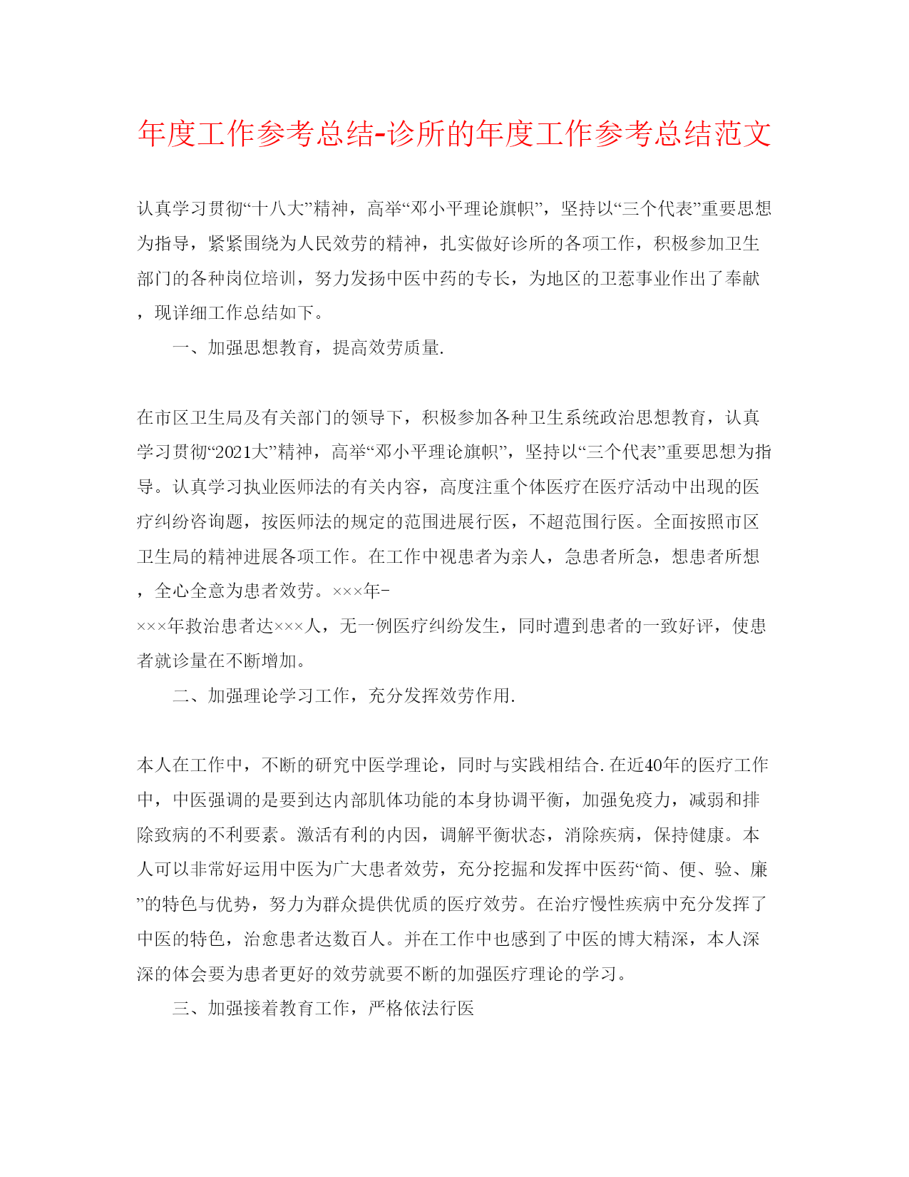 2022年度工作参考总结诊所的年度工作参考总结范文.docx