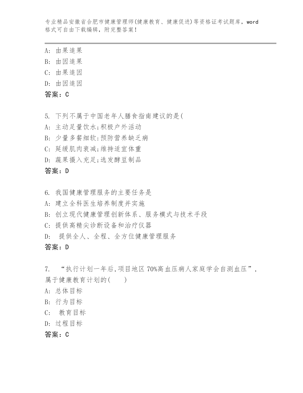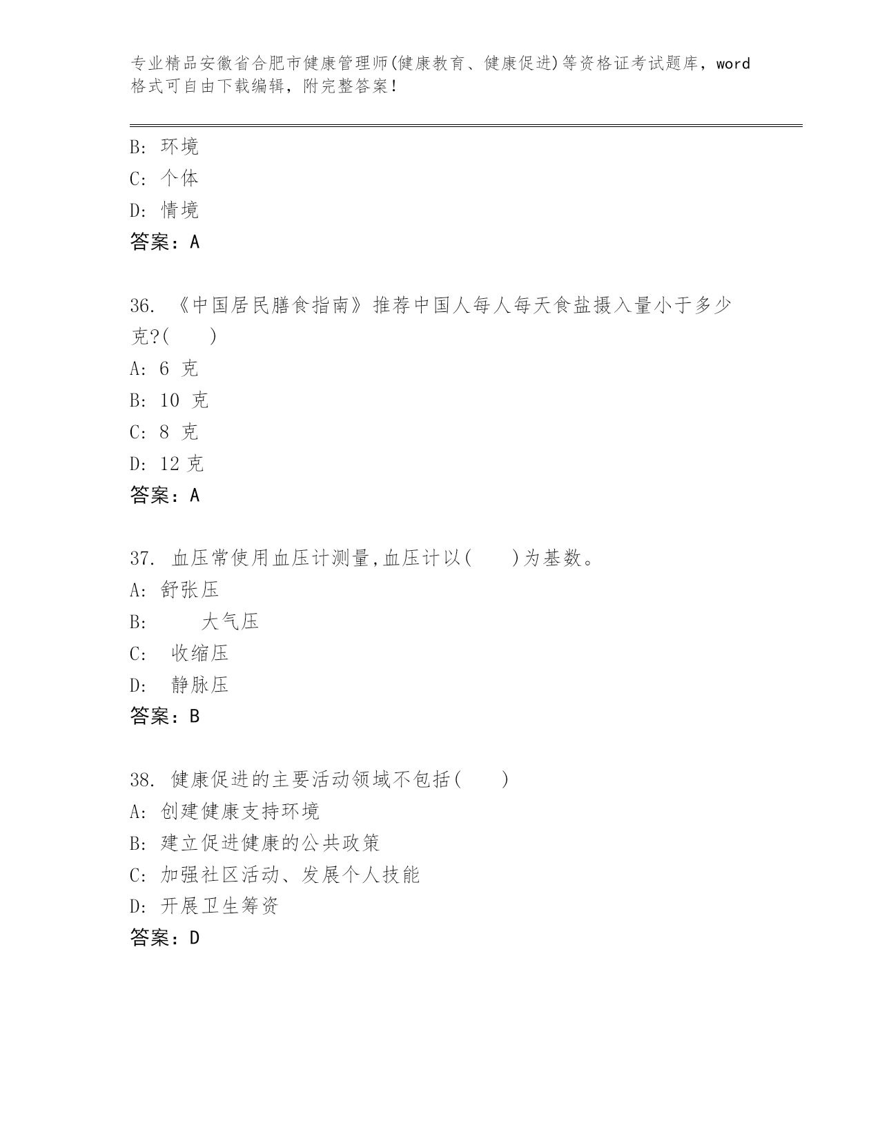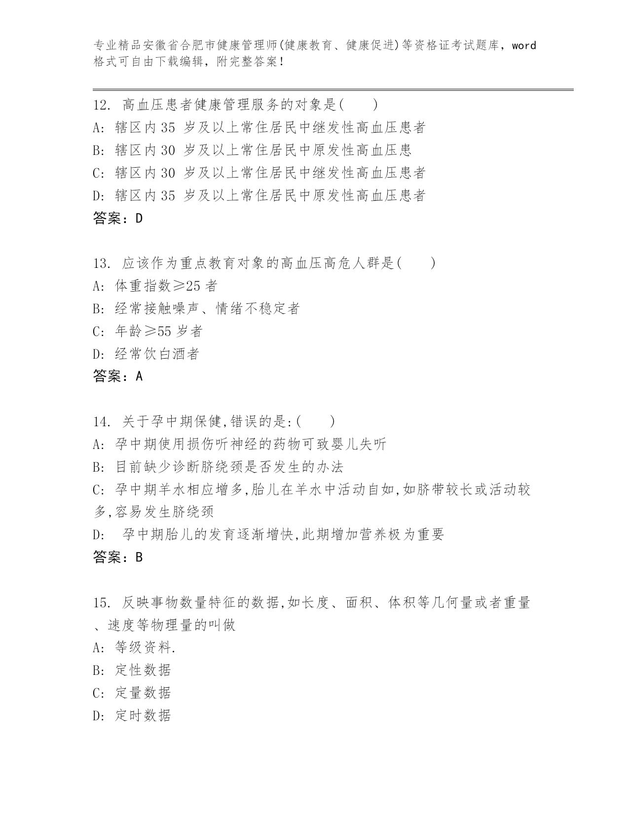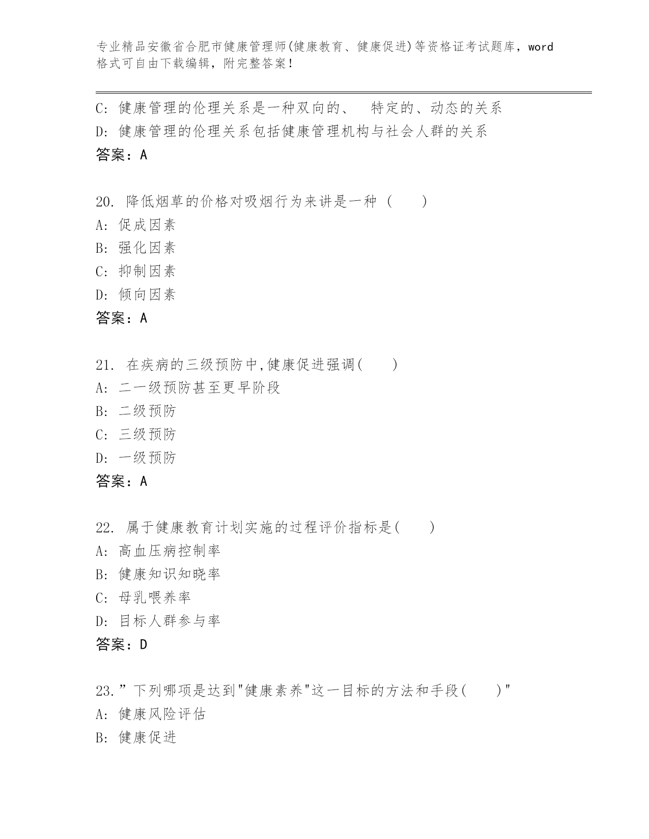 内部培训安徽省合肥市健康管理师(健康教育、健康促进)等资格证考试(实用).docx