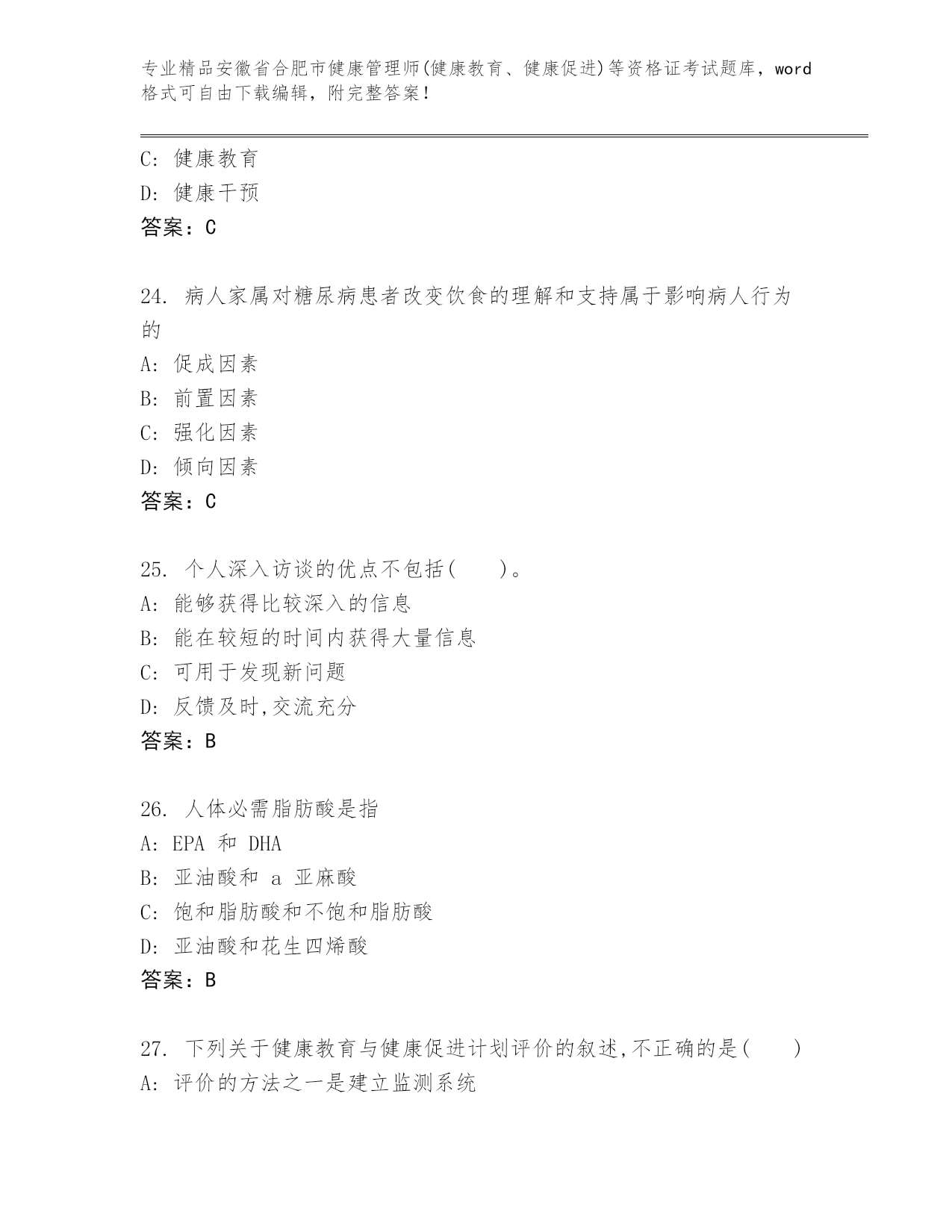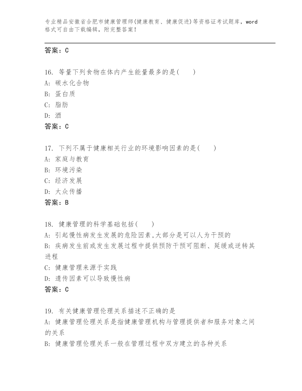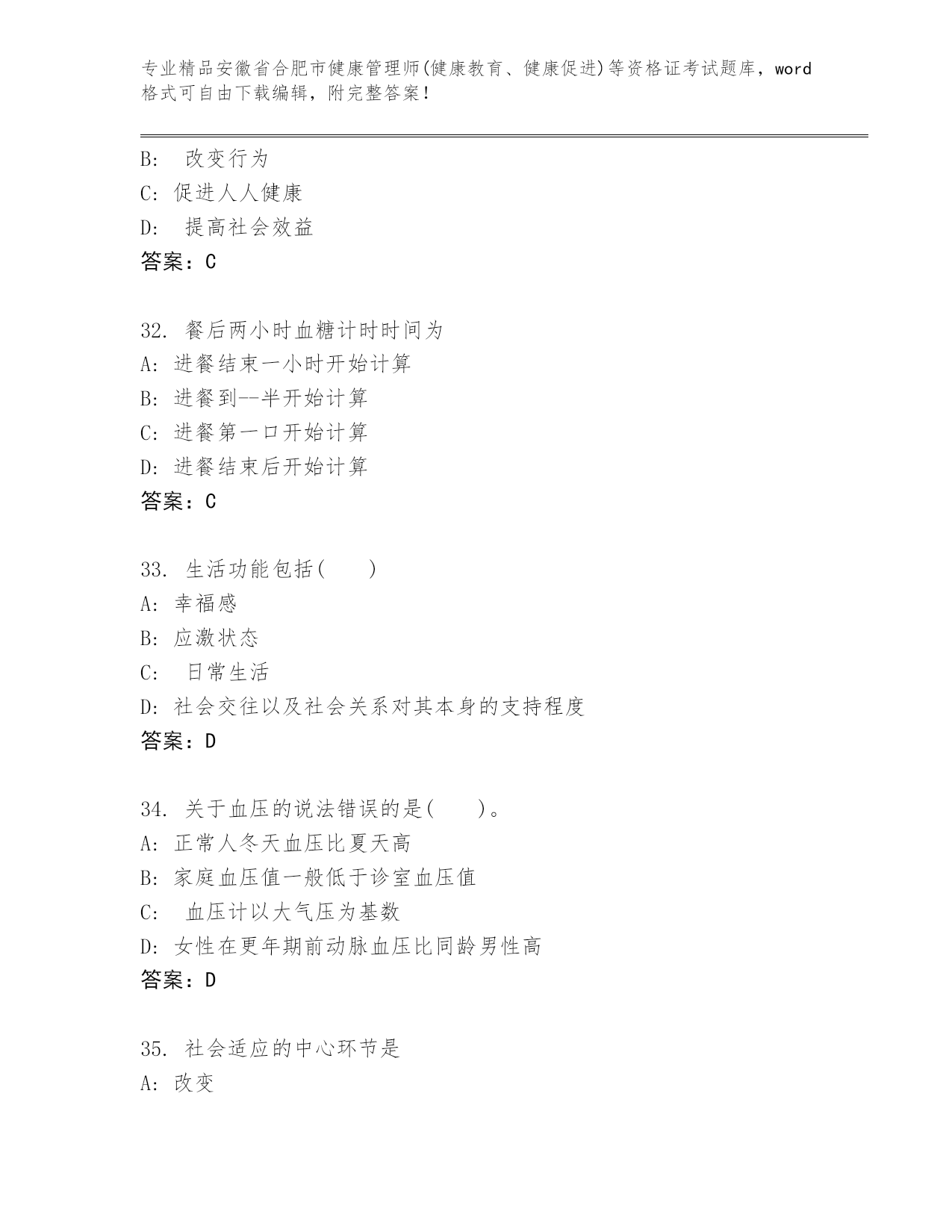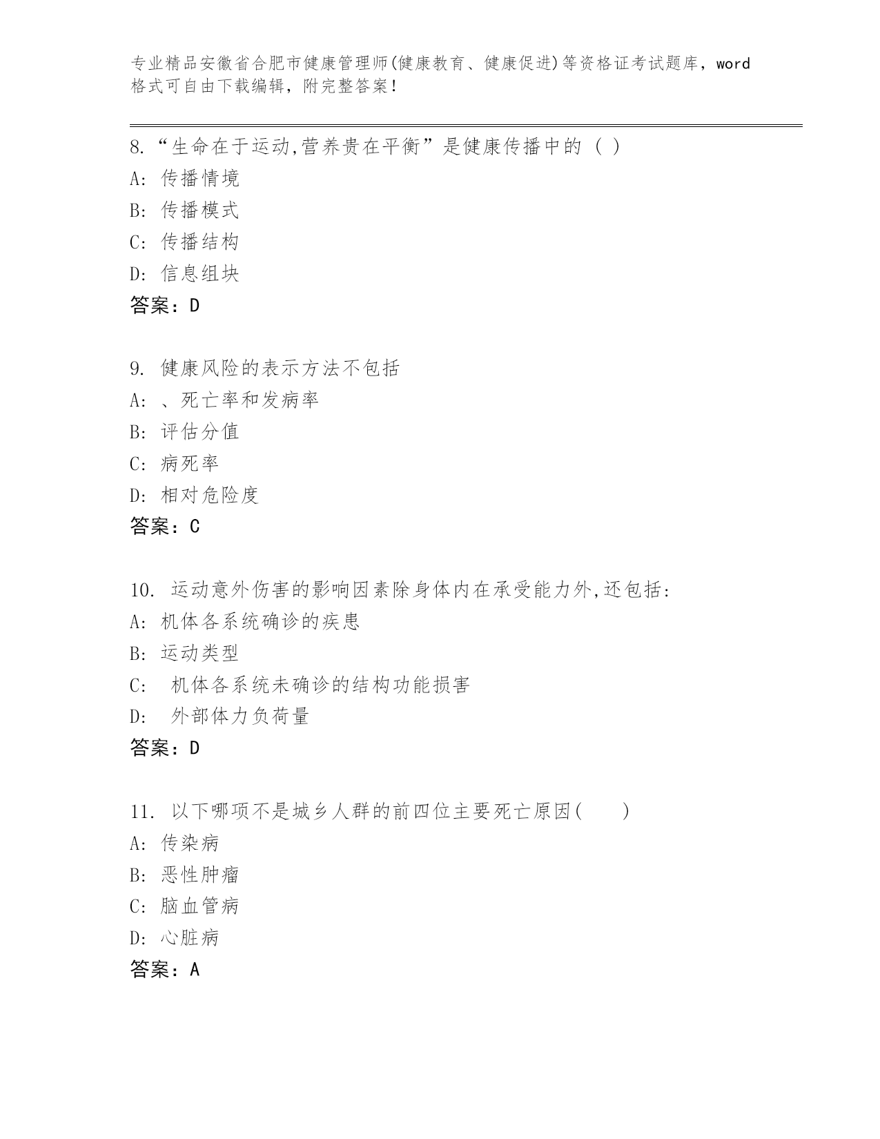 内部培训安徽省合肥市健康管理师(健康教育、健康促进)等资格证考试(实用).docx